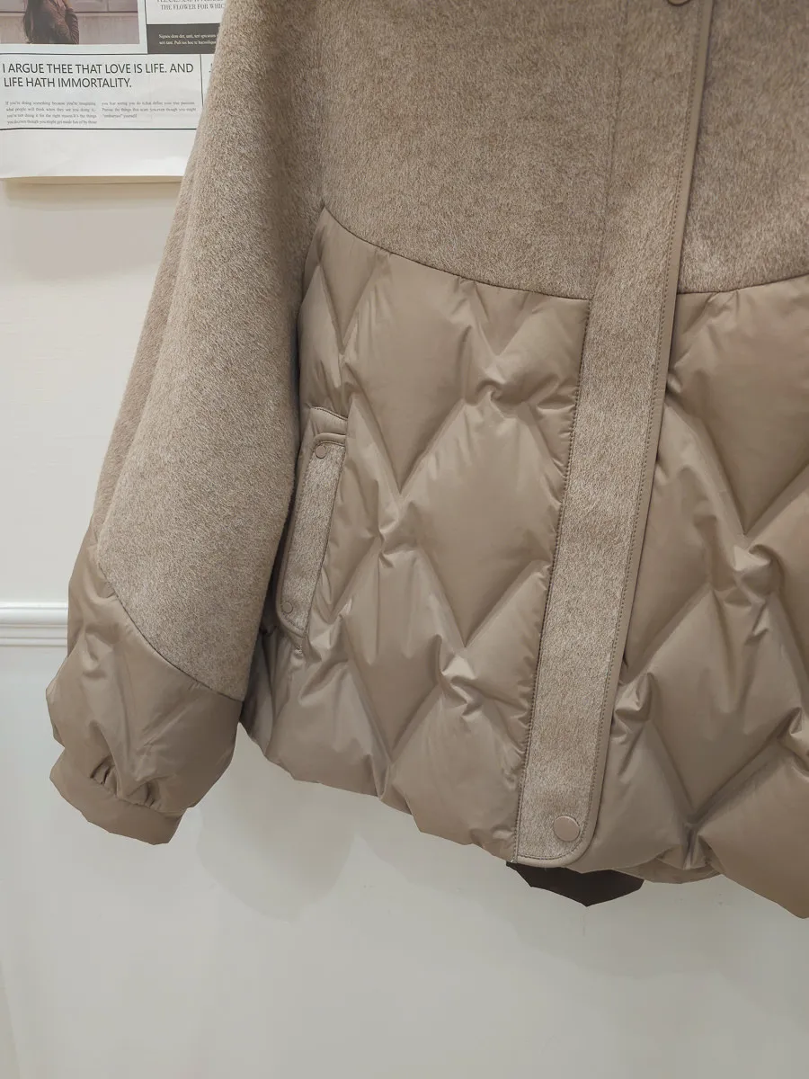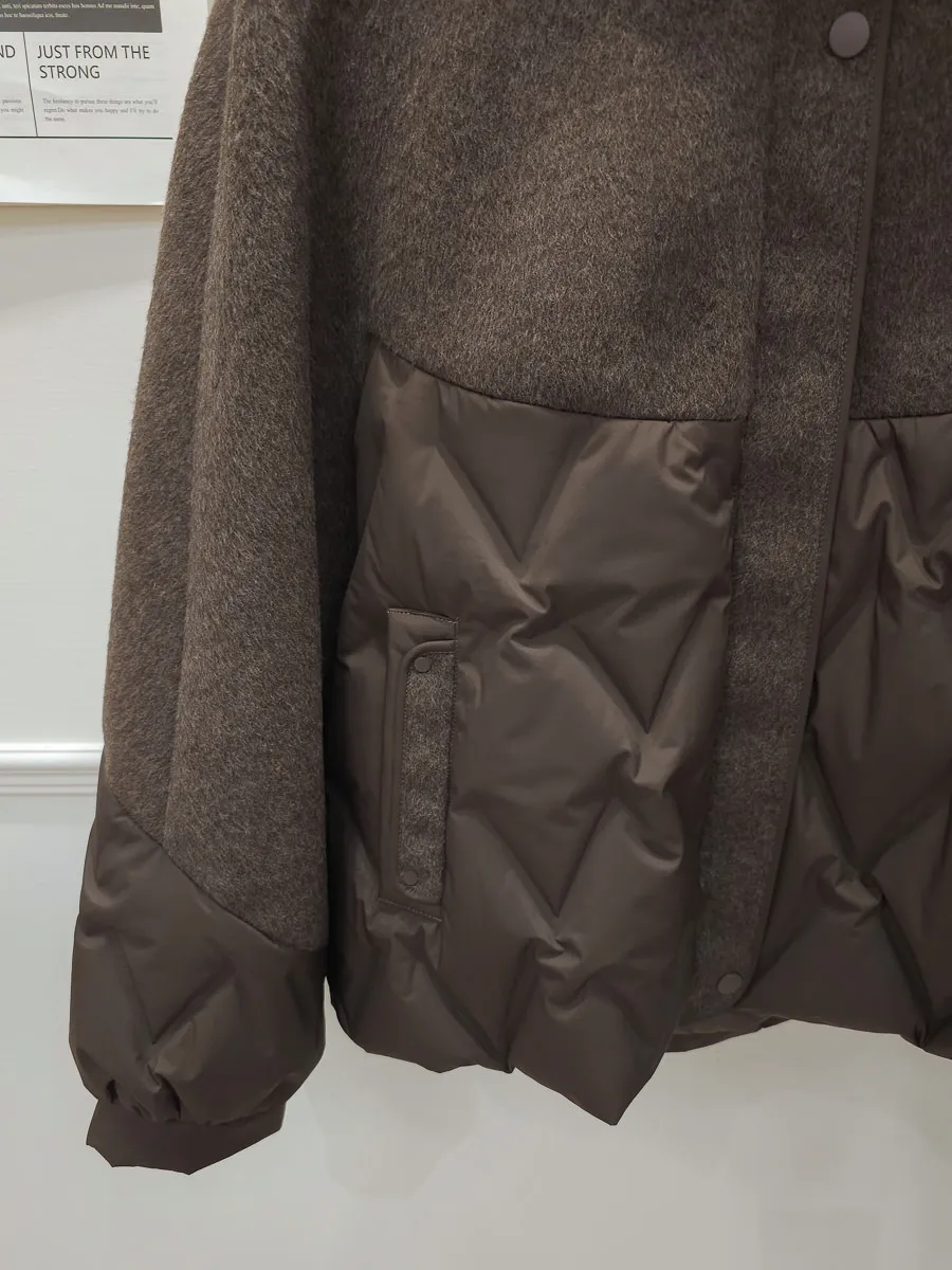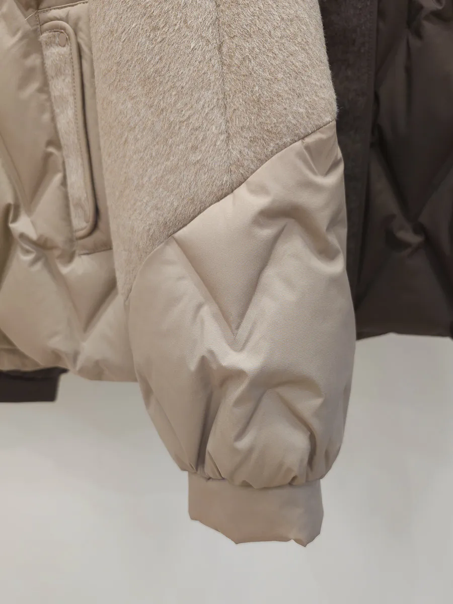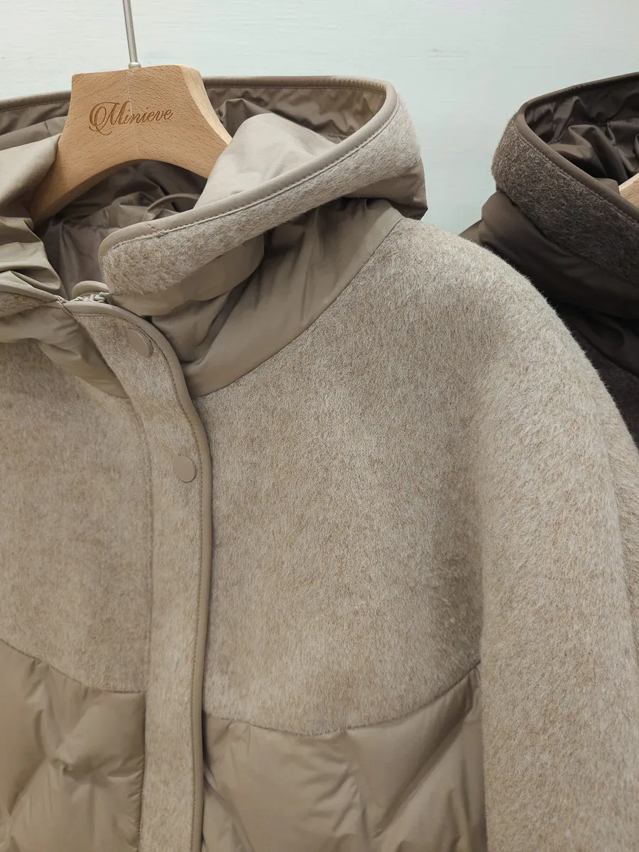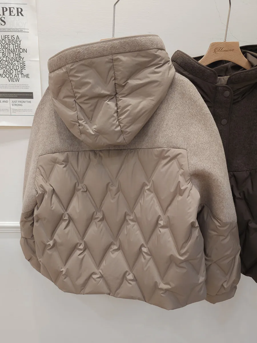 99.正韓 菱格拼接毛呢連帽外套 2色