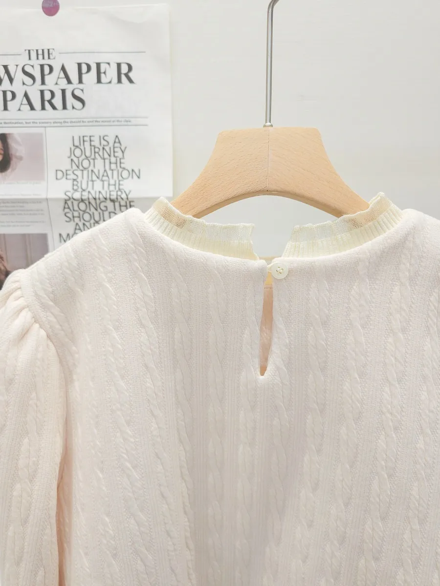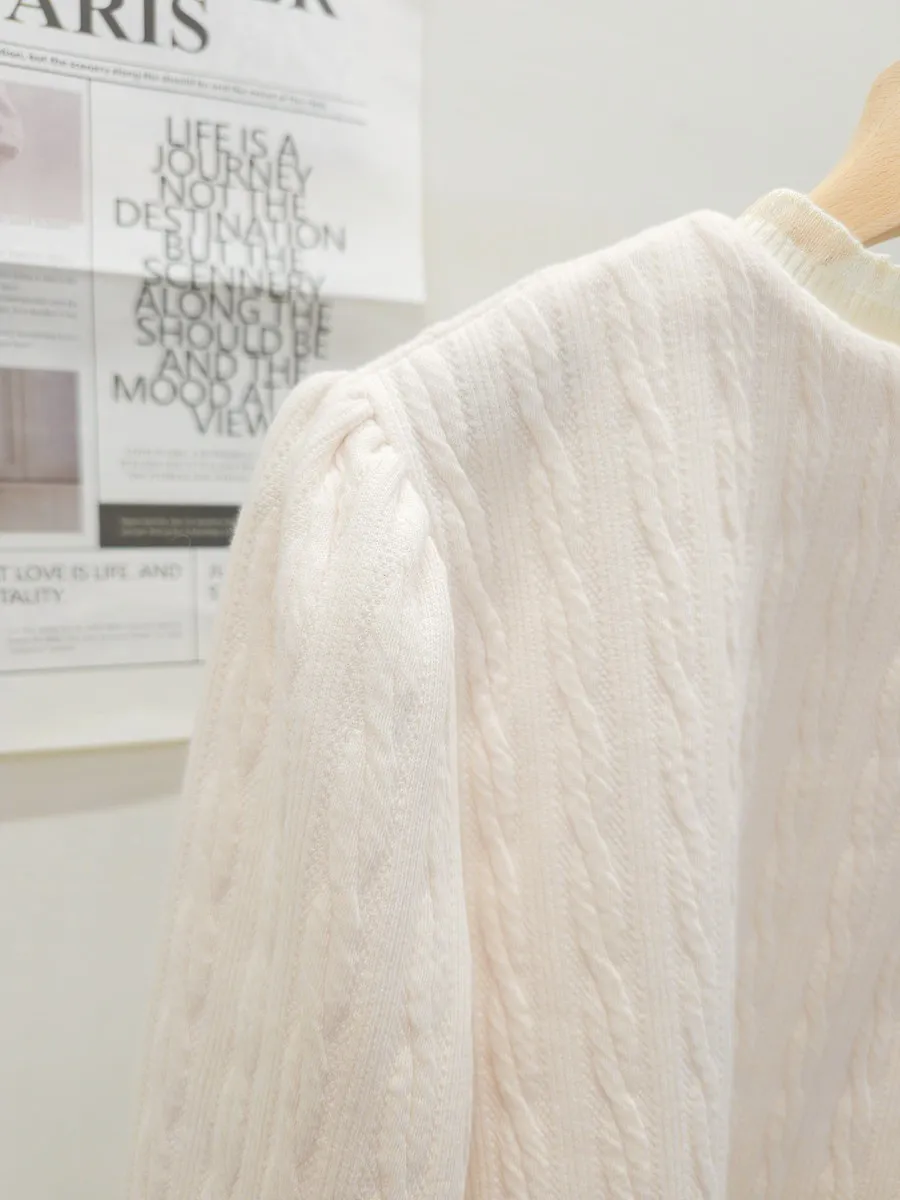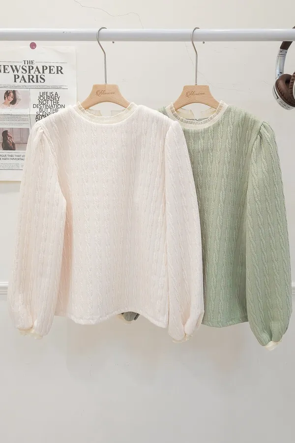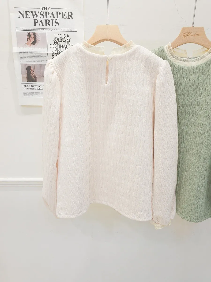 01.正韓 細摺紗領立體編織紋上衣 2色