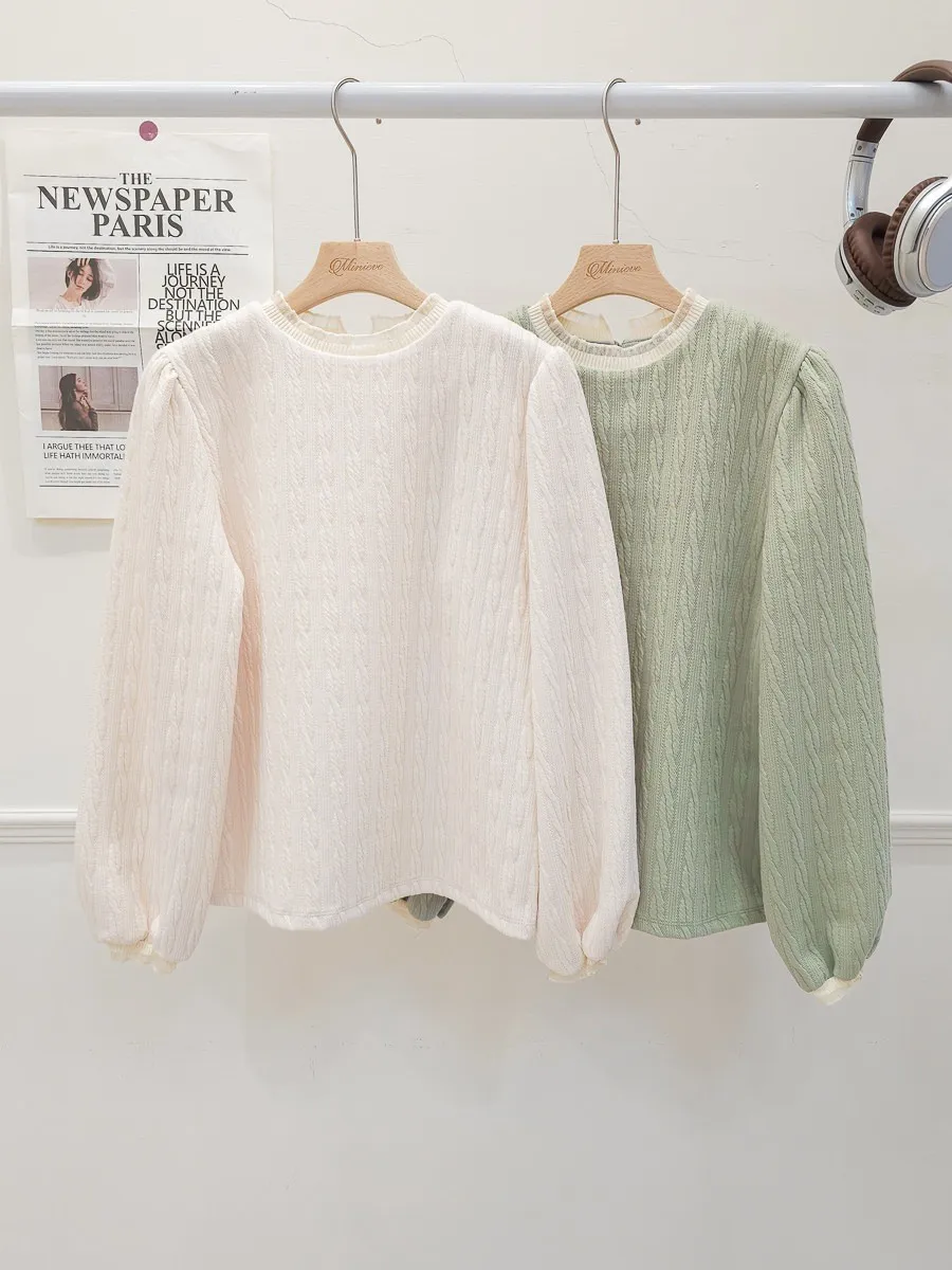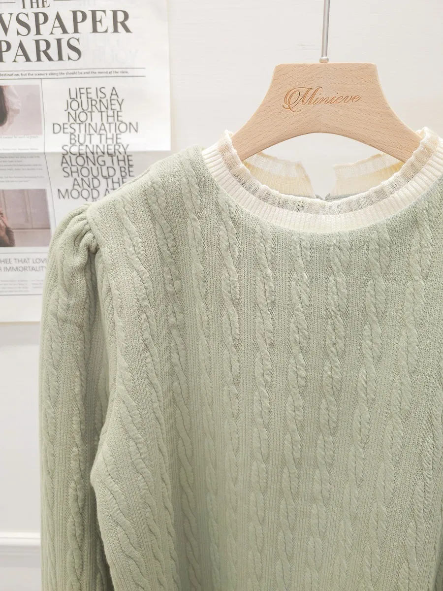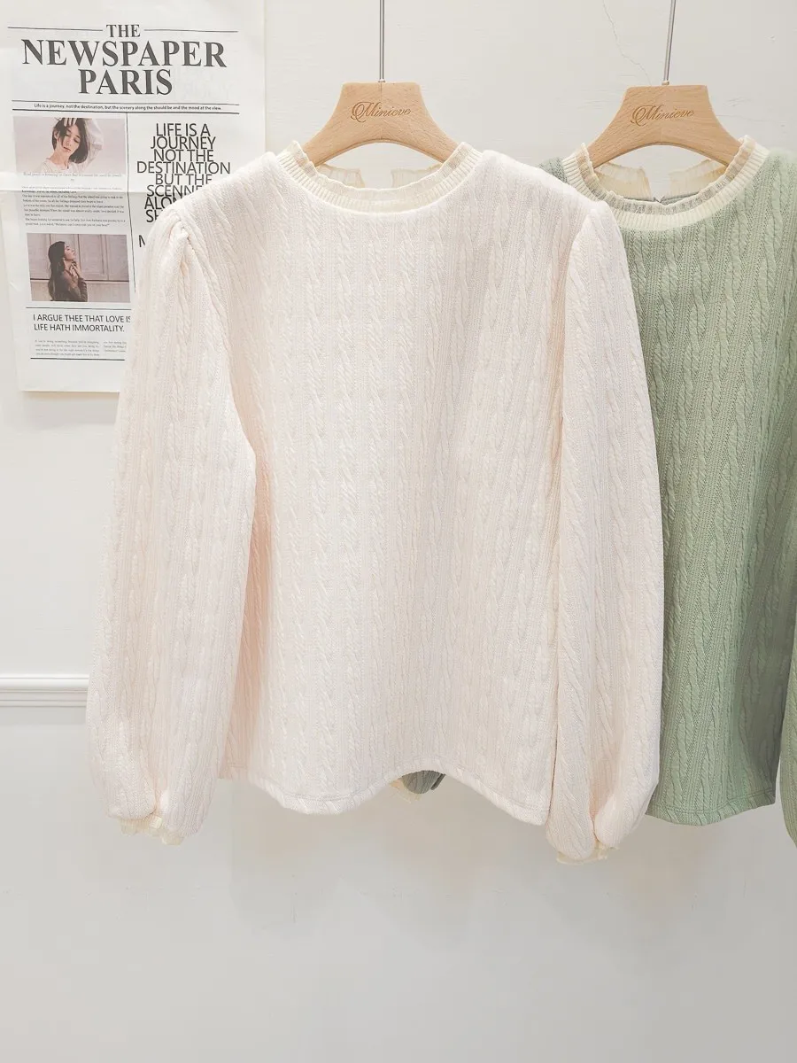 01.正韓 細摺紗領立體編織紋上衣 2色