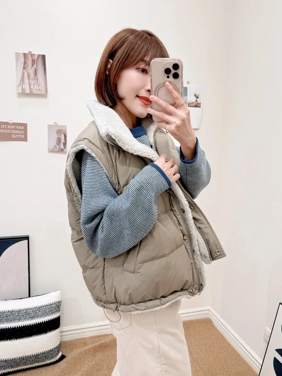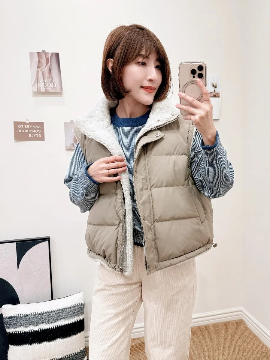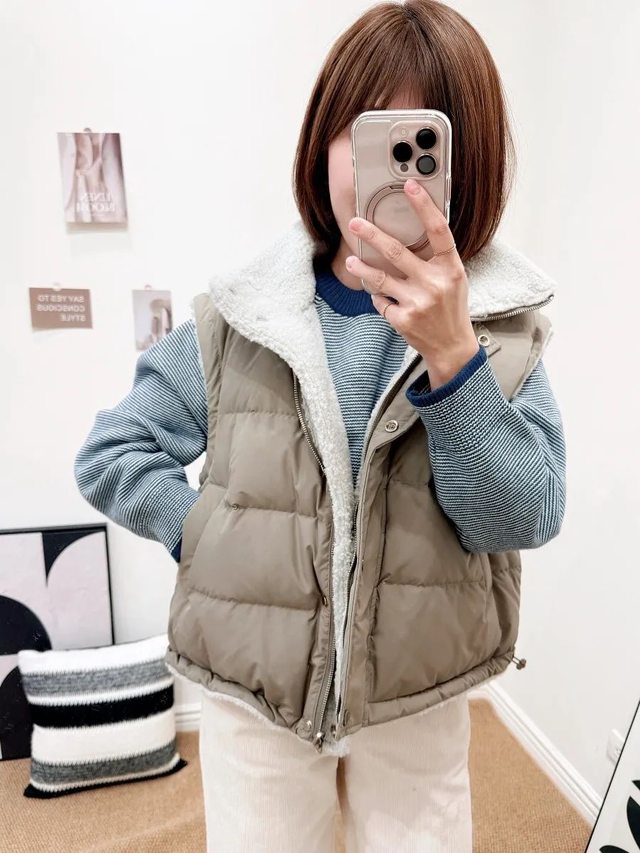 正韓 正反兩穿毛呢90%羽絨背心 2色