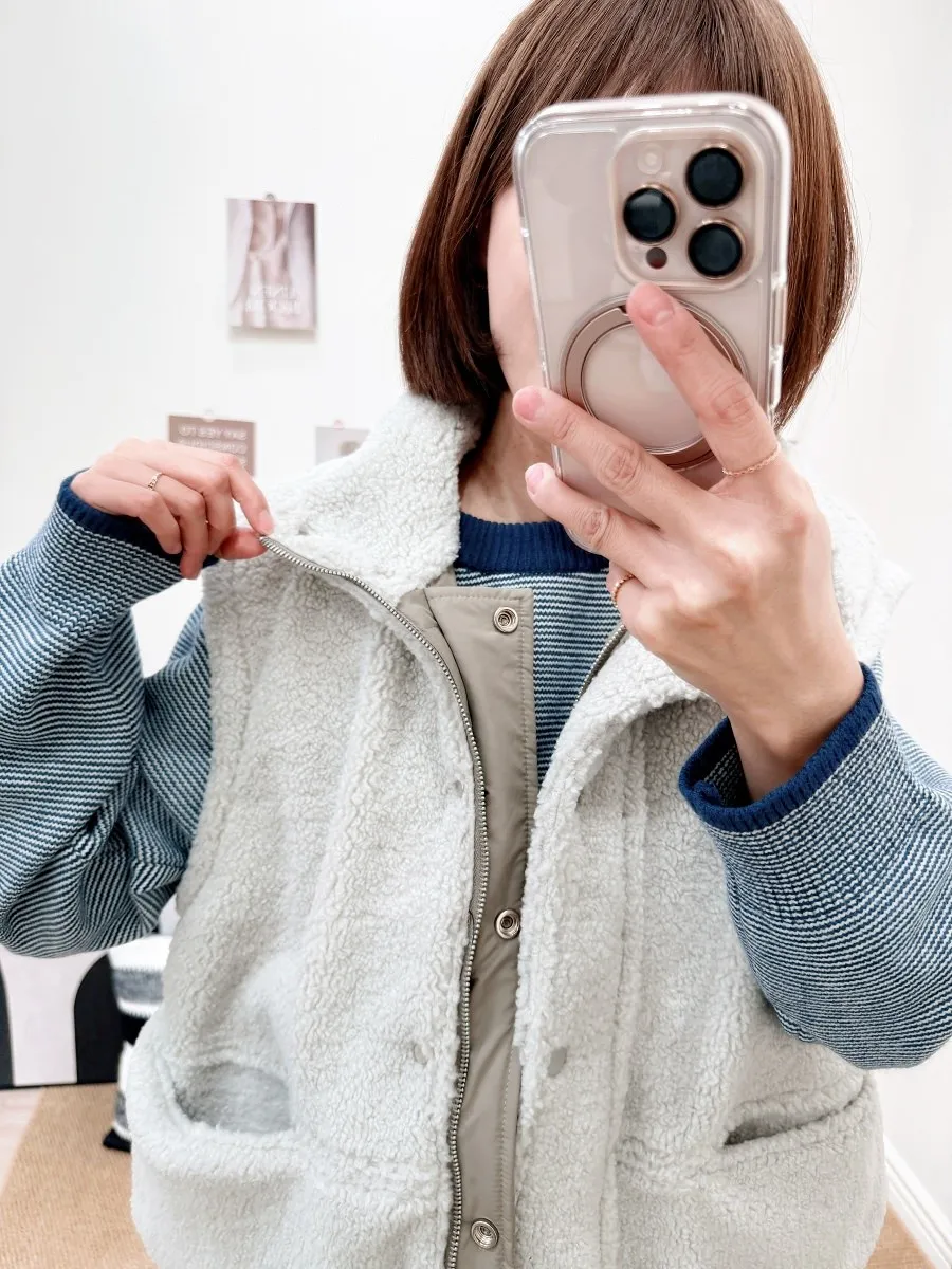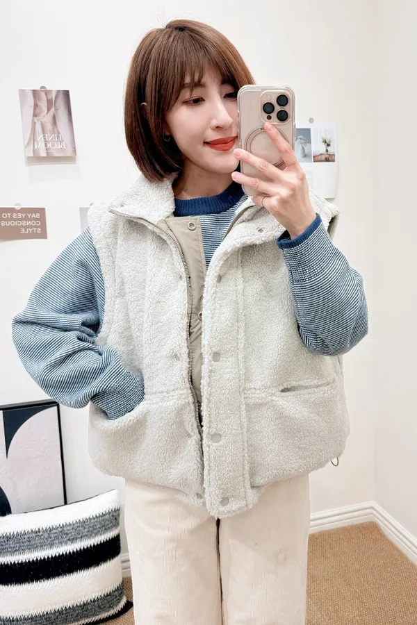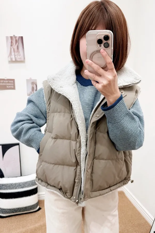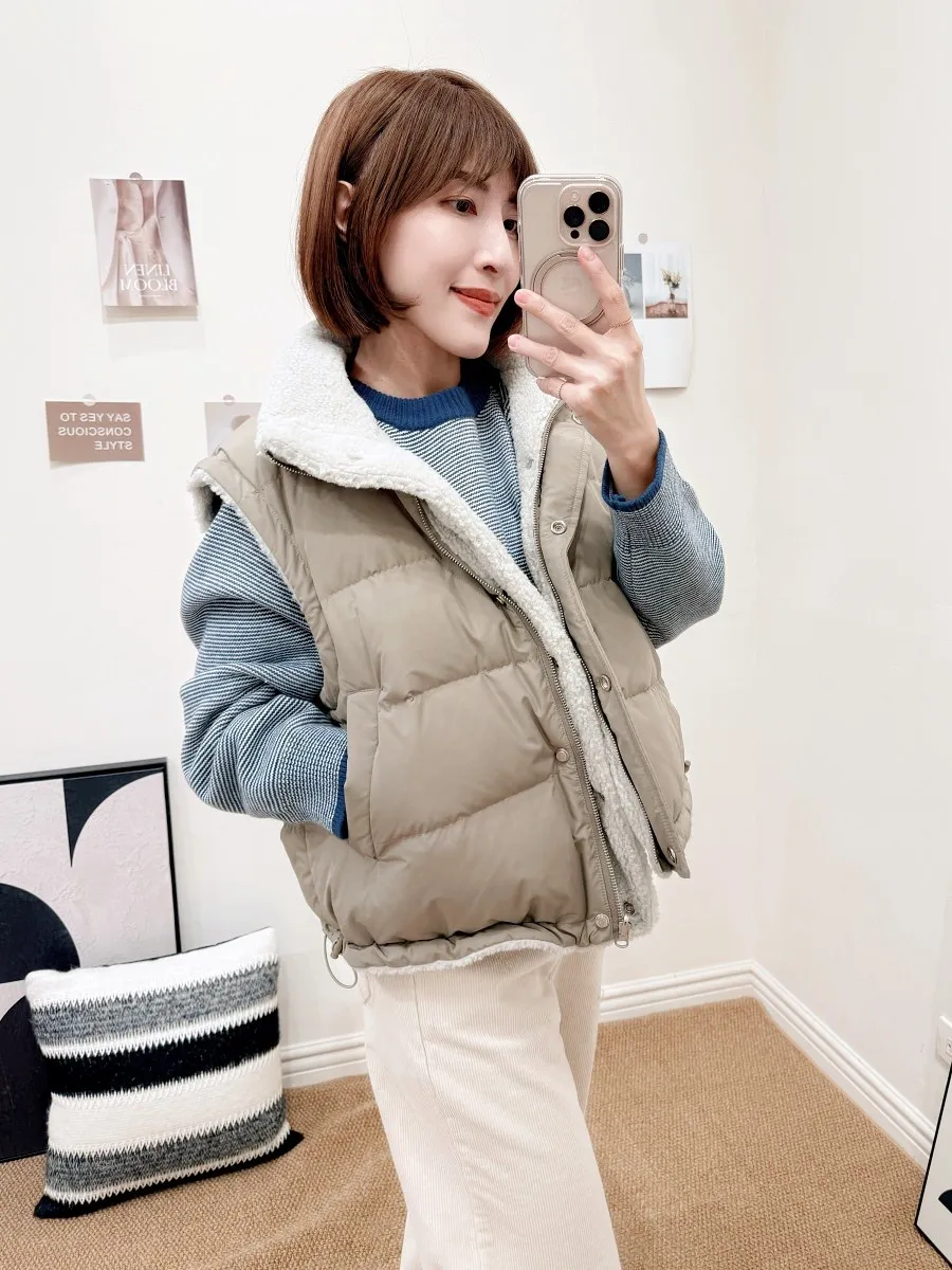 正韓 正反兩穿毛呢90%羽絨背心 2色