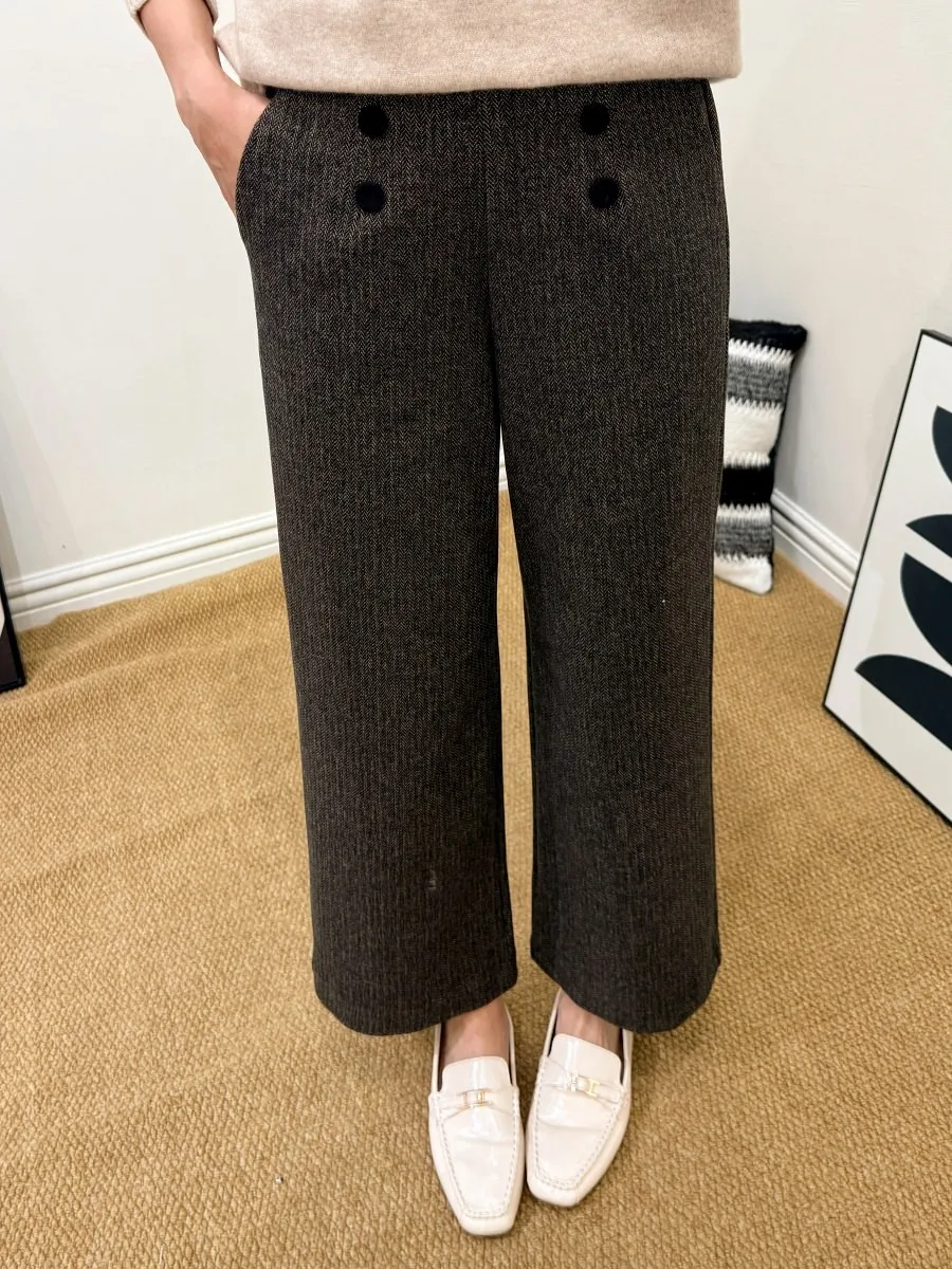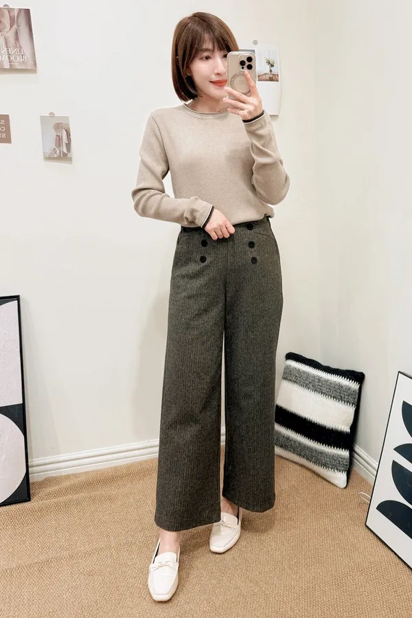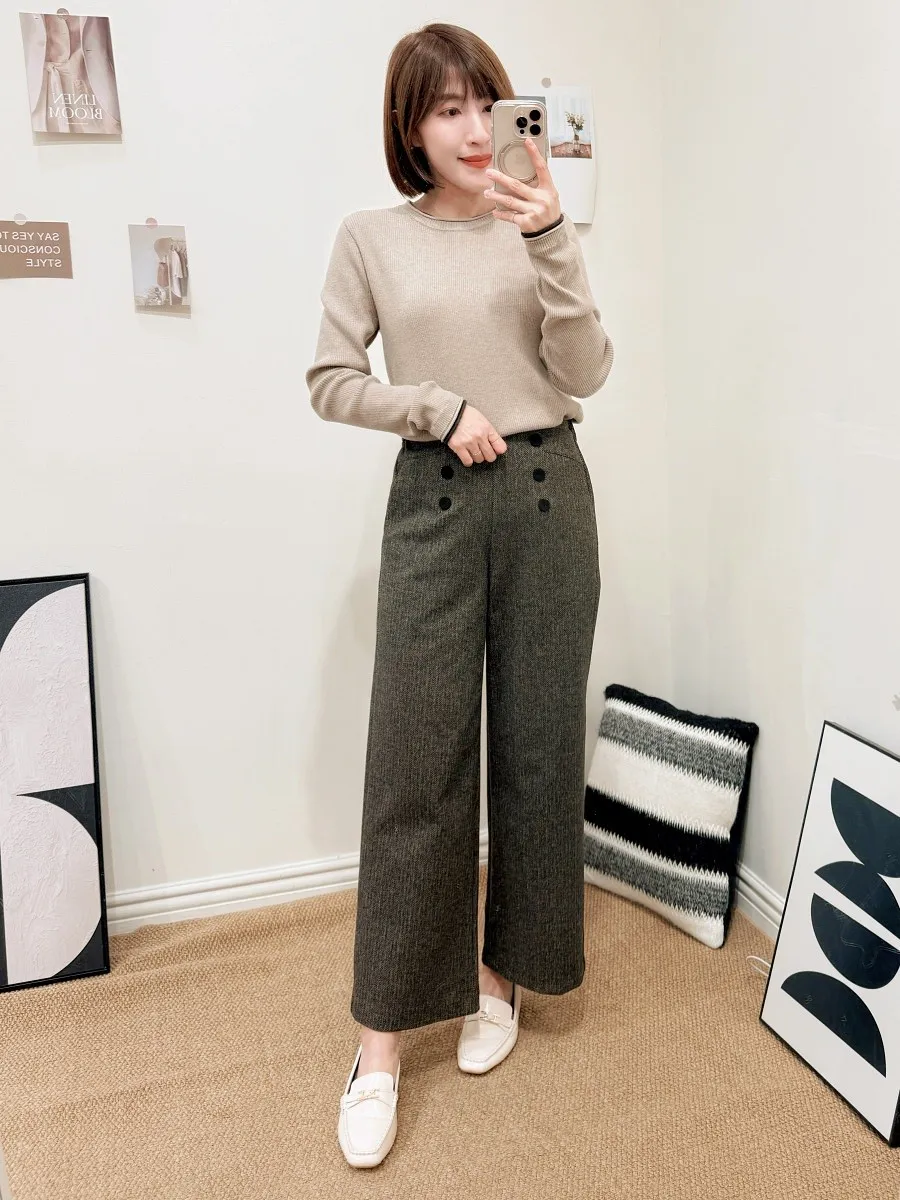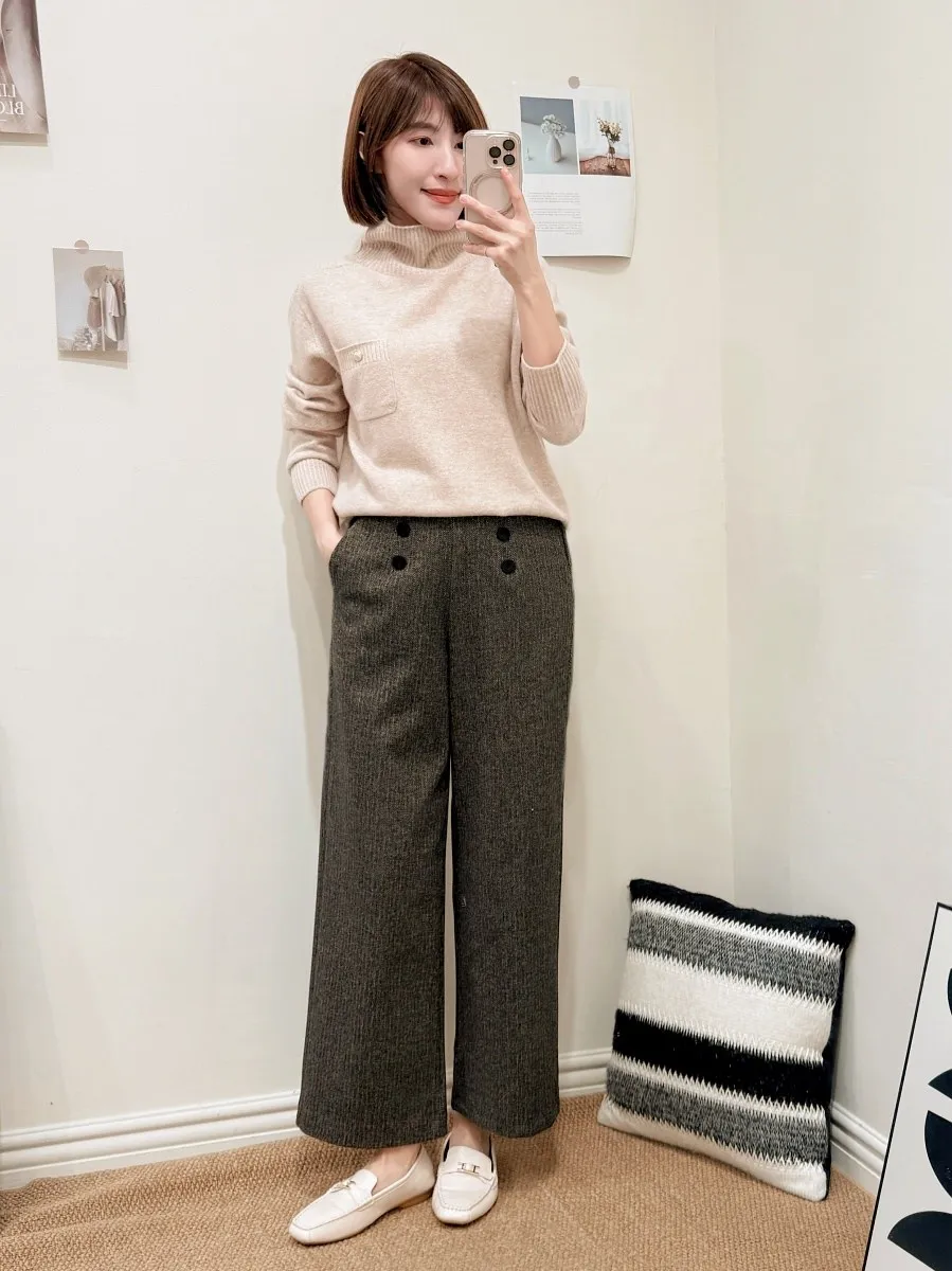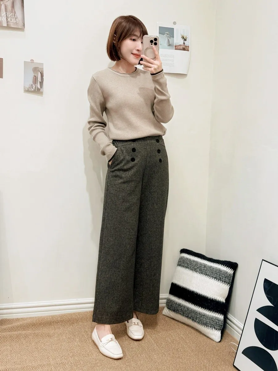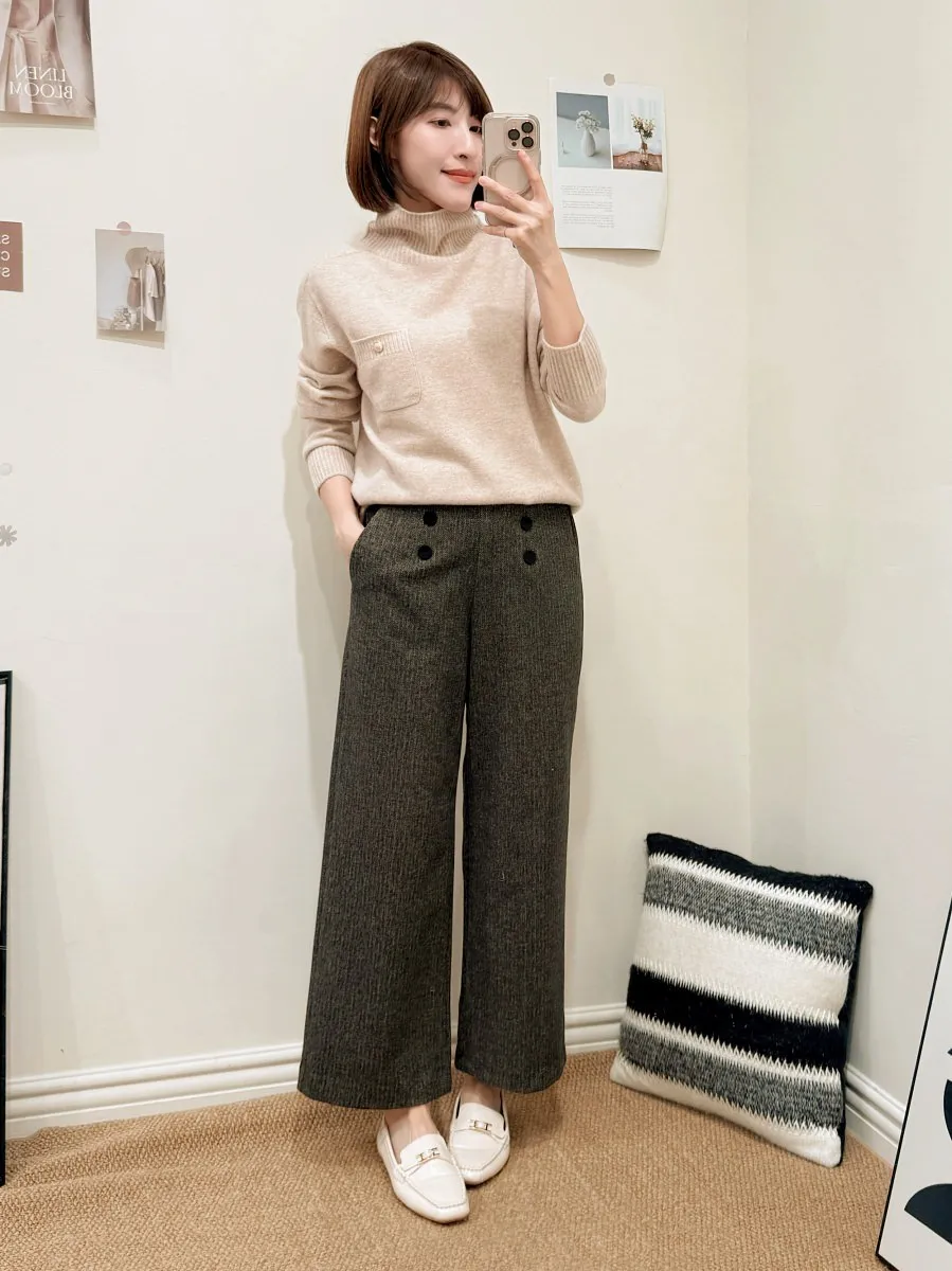 正韓 排釦混色毛呢寬管褲 2色