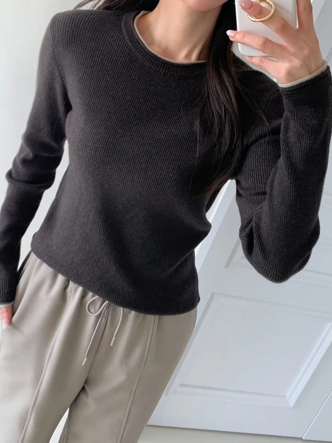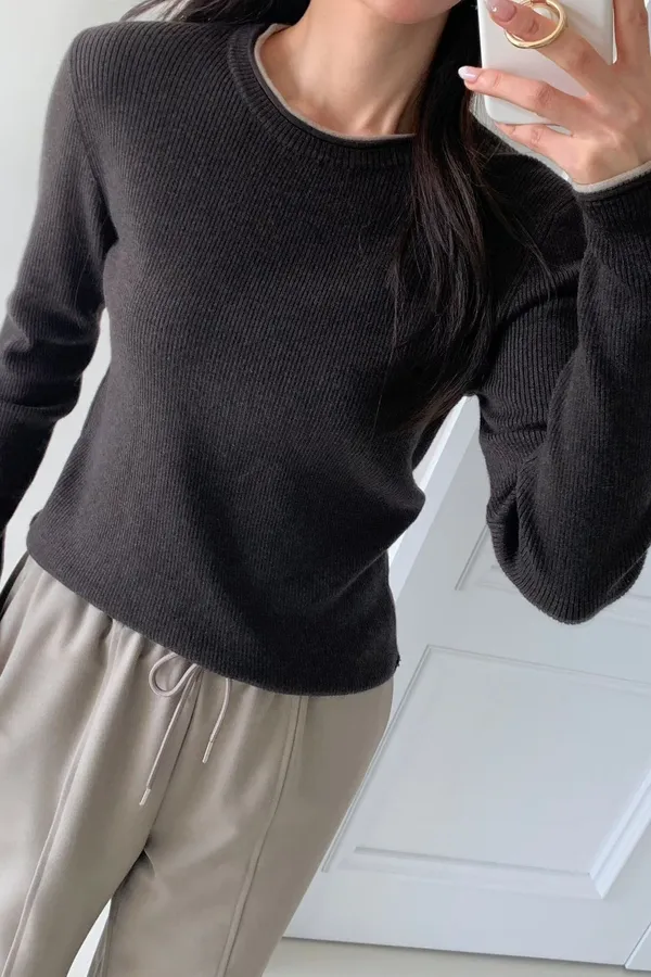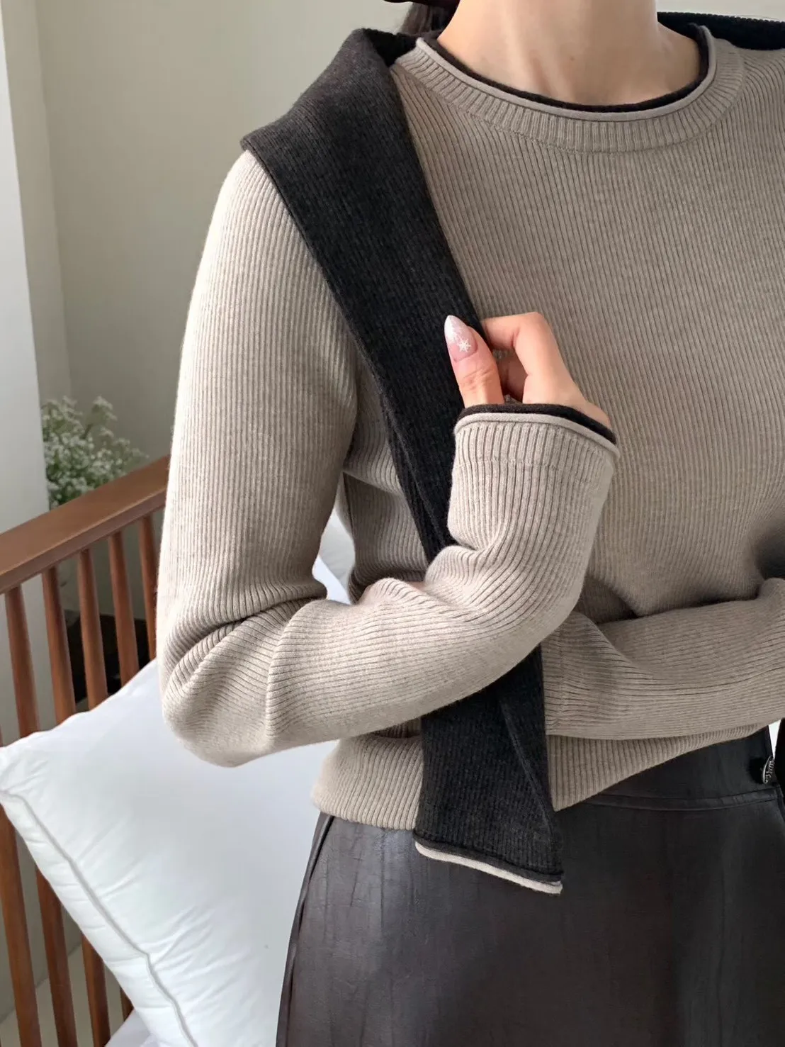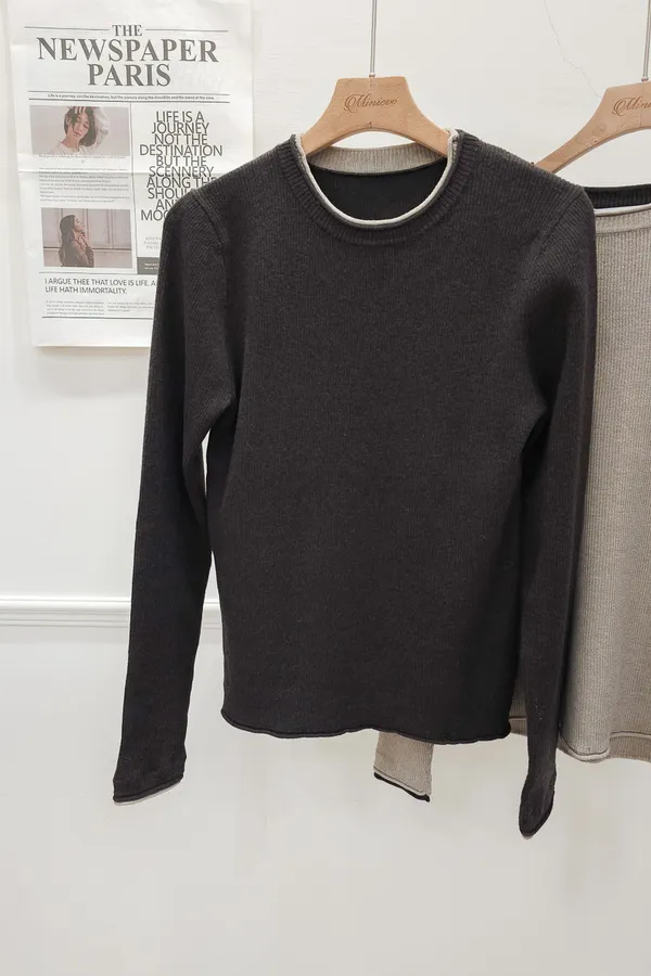 103.正韓 簡約撞色領70%羊毛上衣 2色