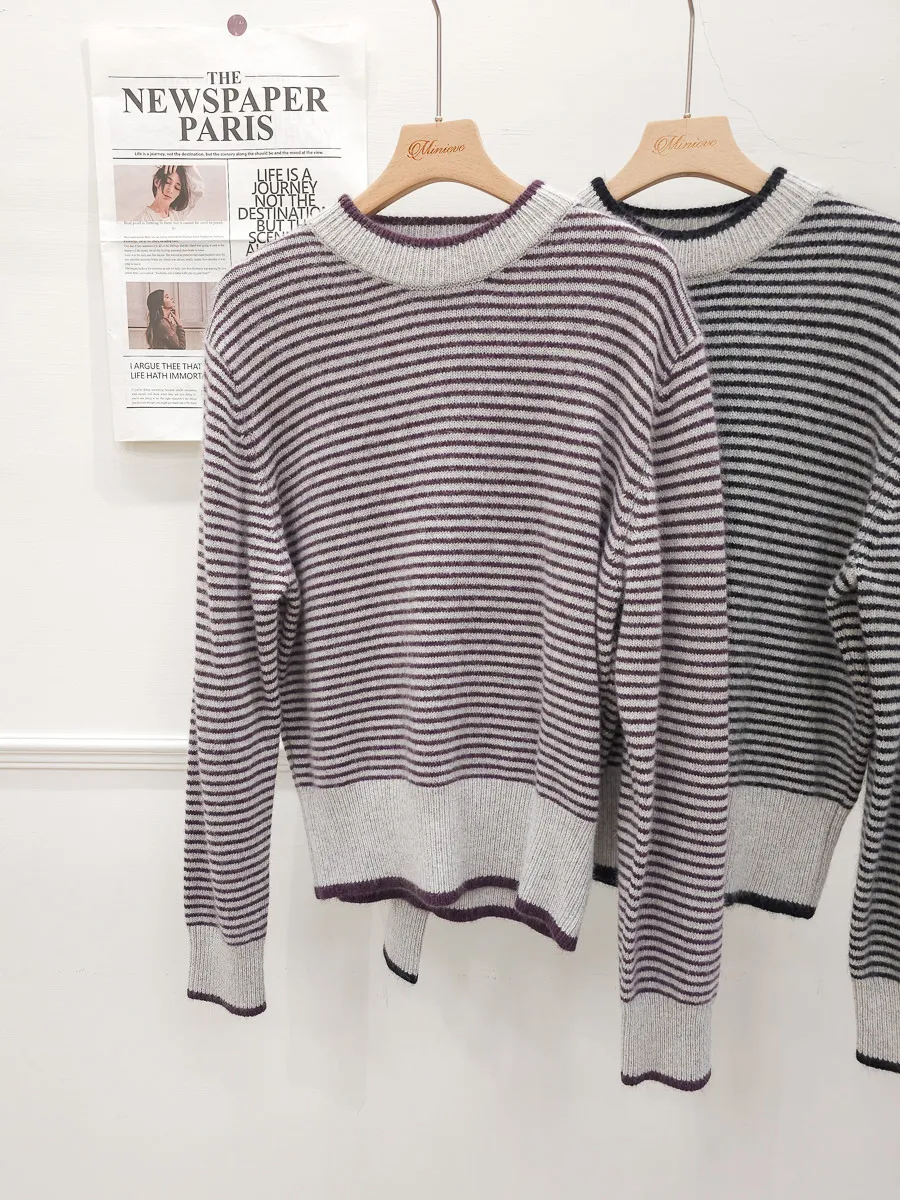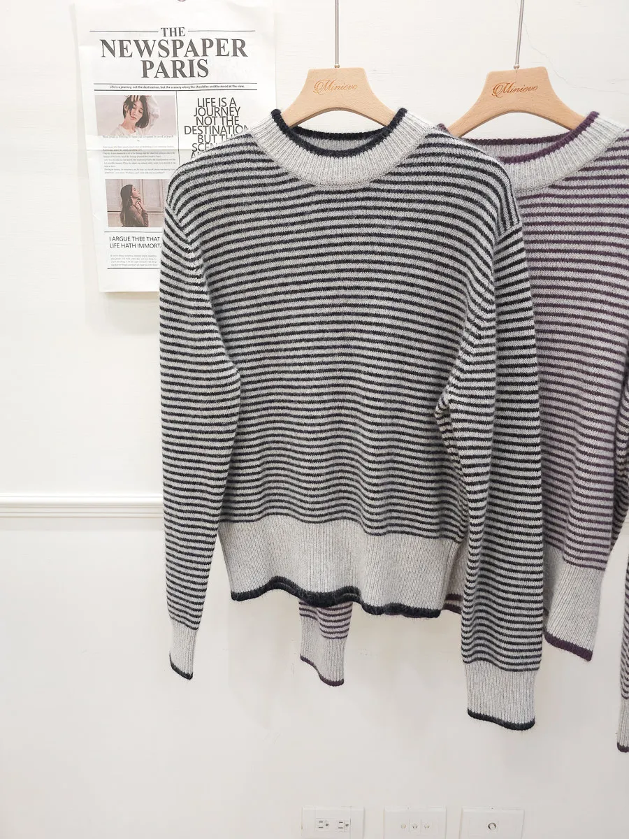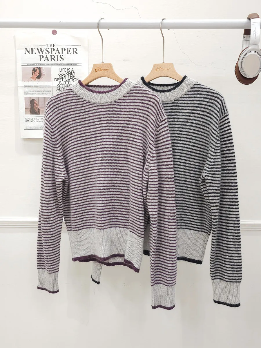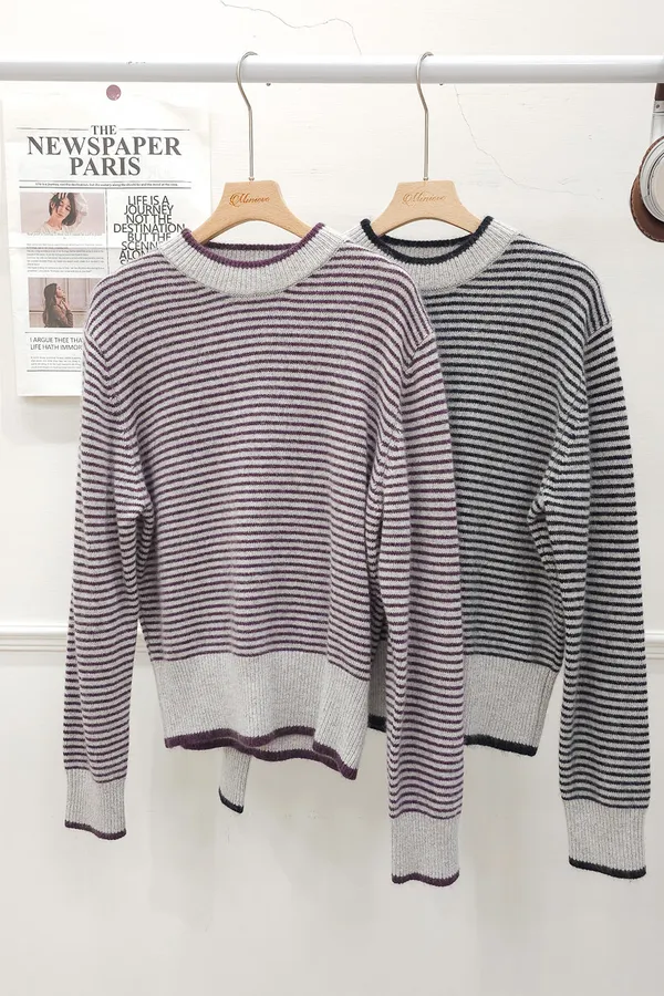 105.正韓 滾邊條紋羊毛上衣 2色