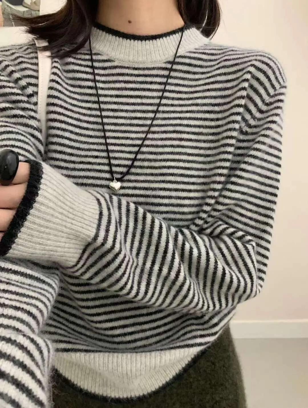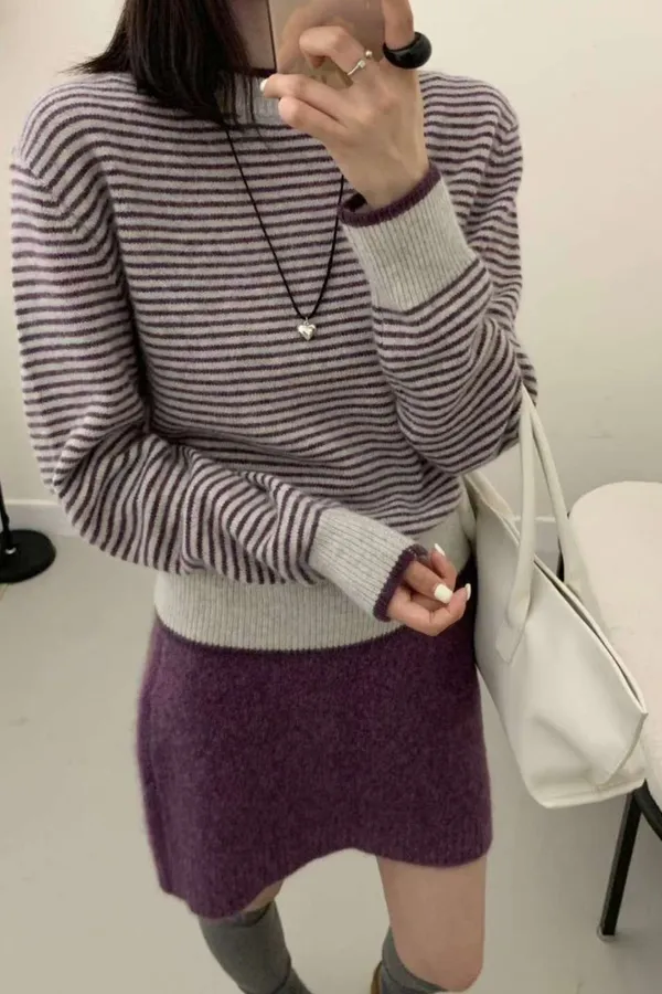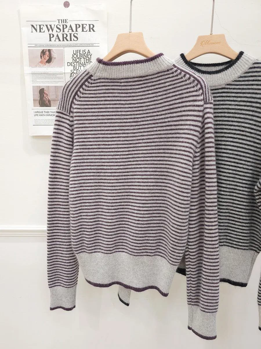105.正韓 滾邊條紋羊毛上衣 2色