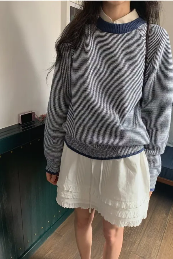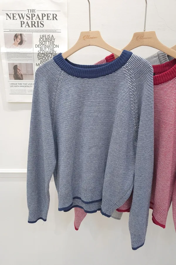19.正韓 滾色領細條紋上衣 3色