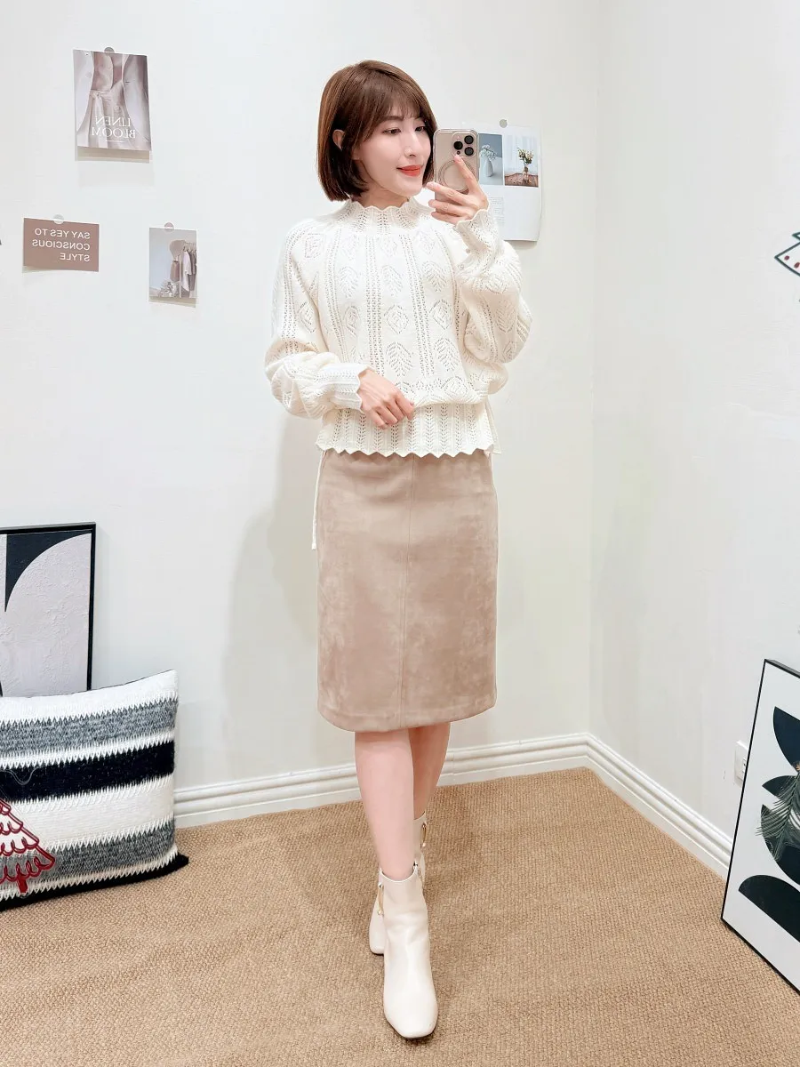 正韓 植絨直版及膝裙 2色