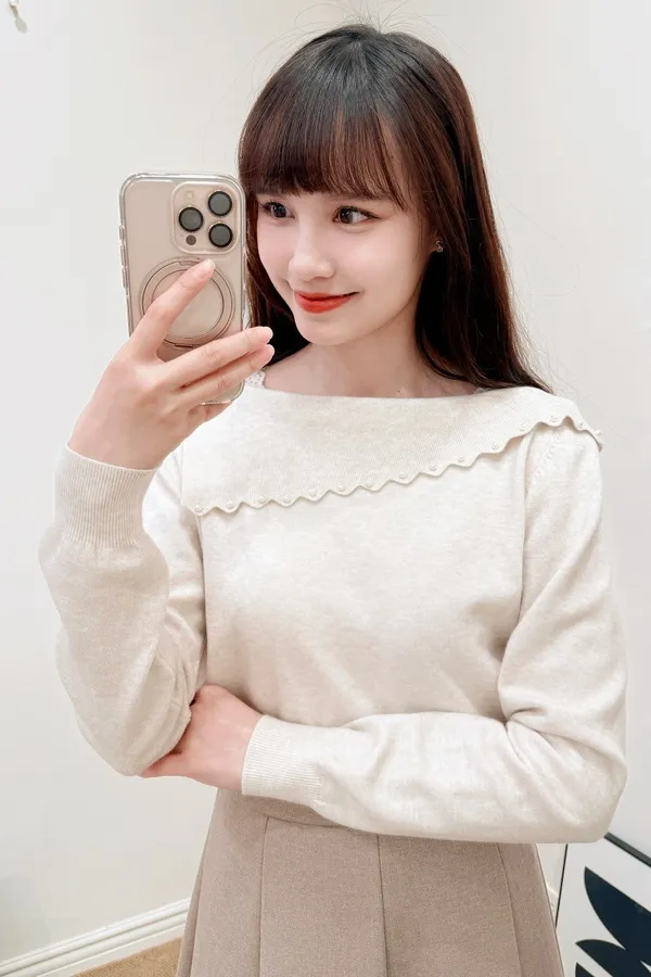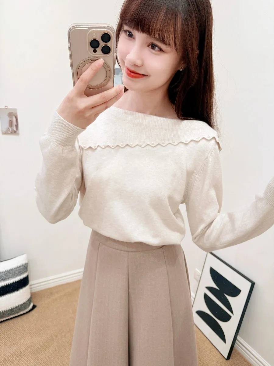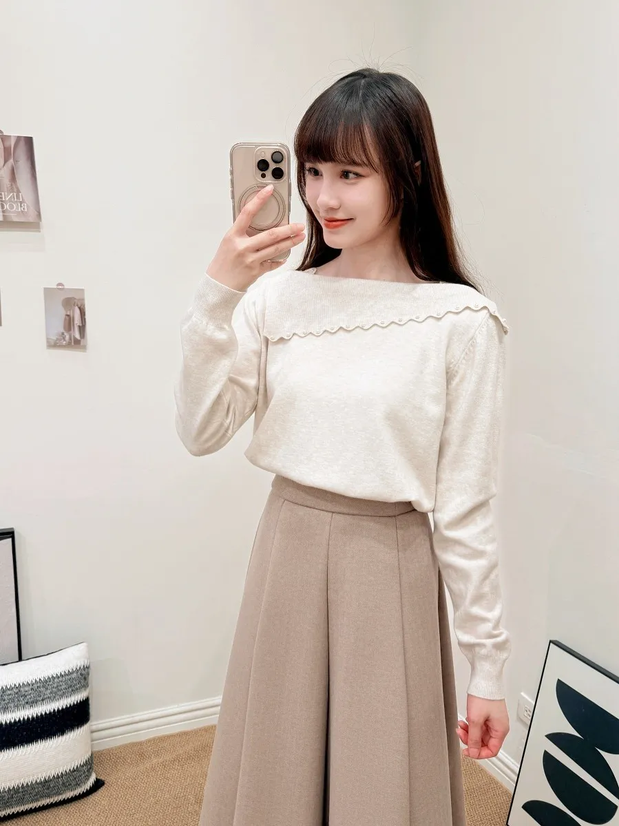正韓 斜側領綴珠針織上衣 2色