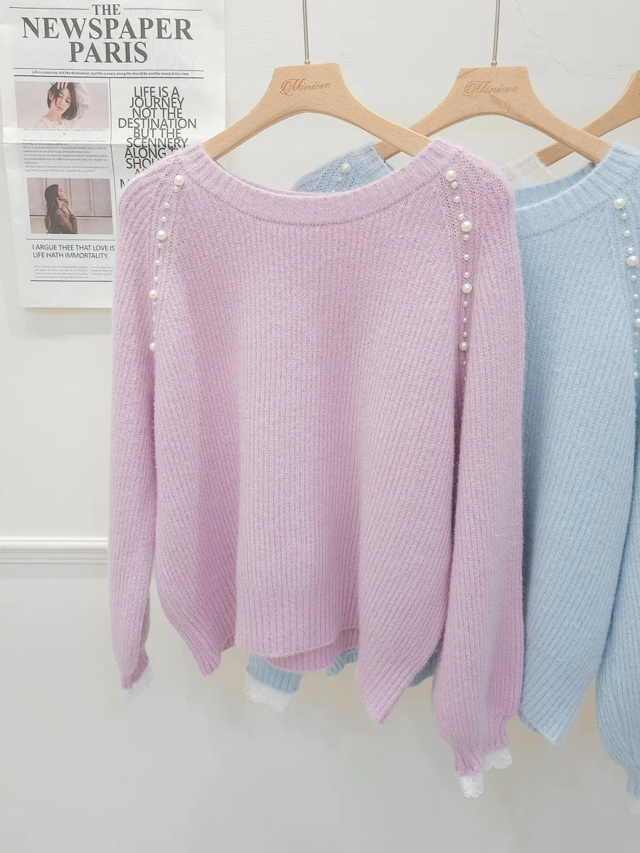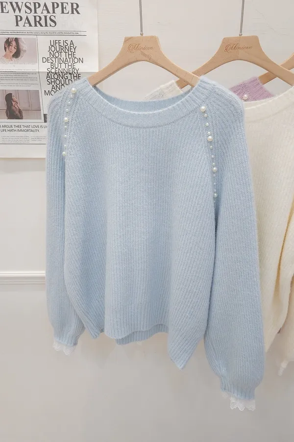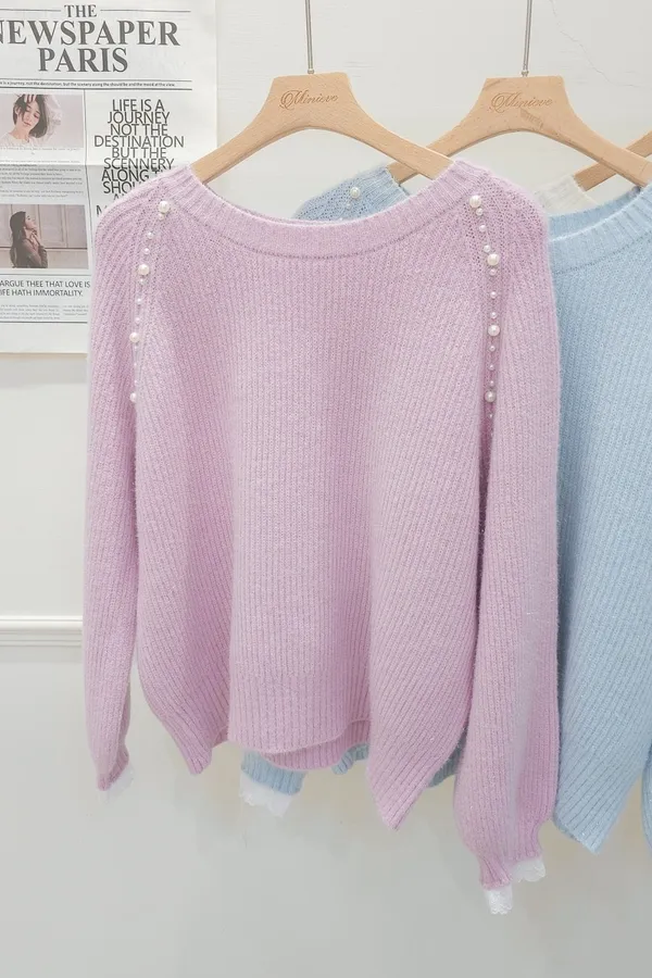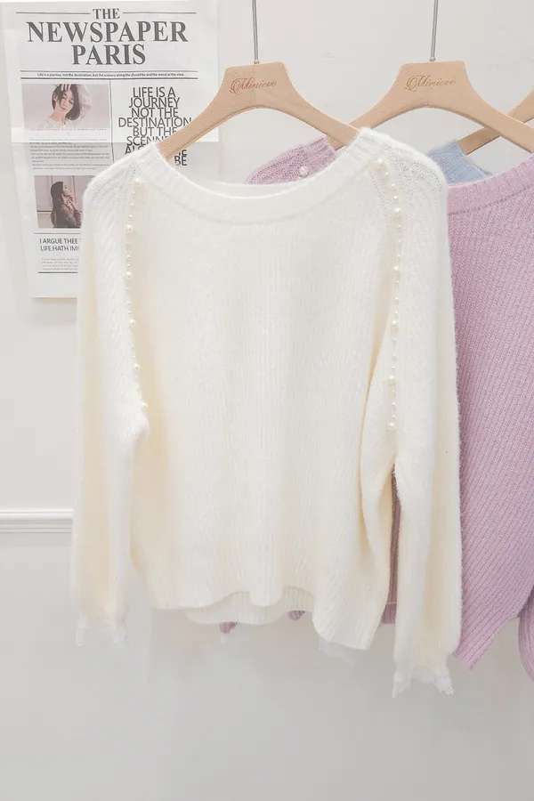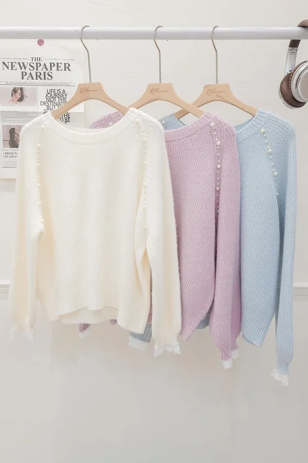 34.正韓 雙側綴珠細坑條針織上衣 3色