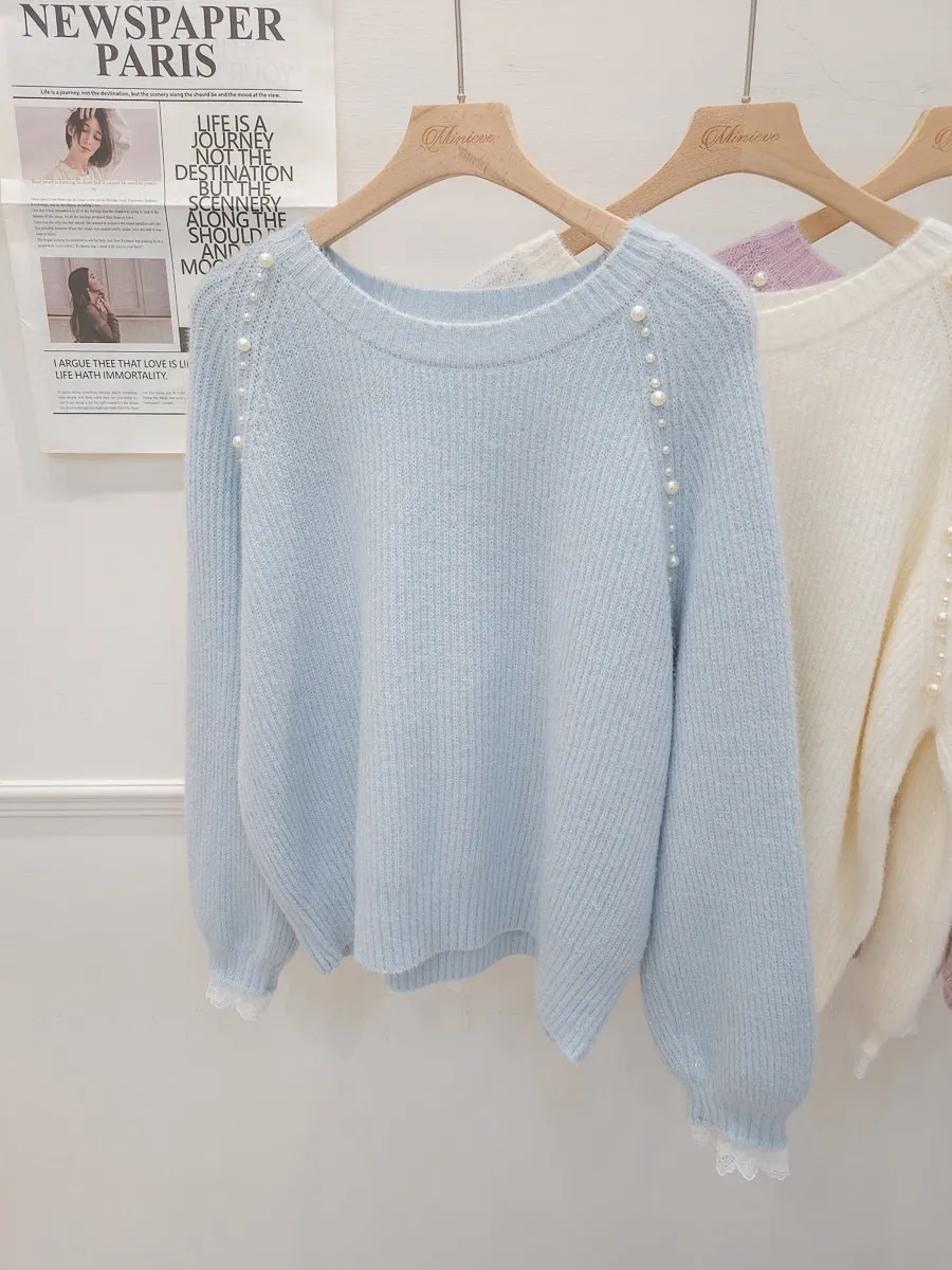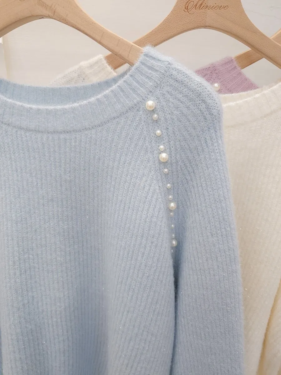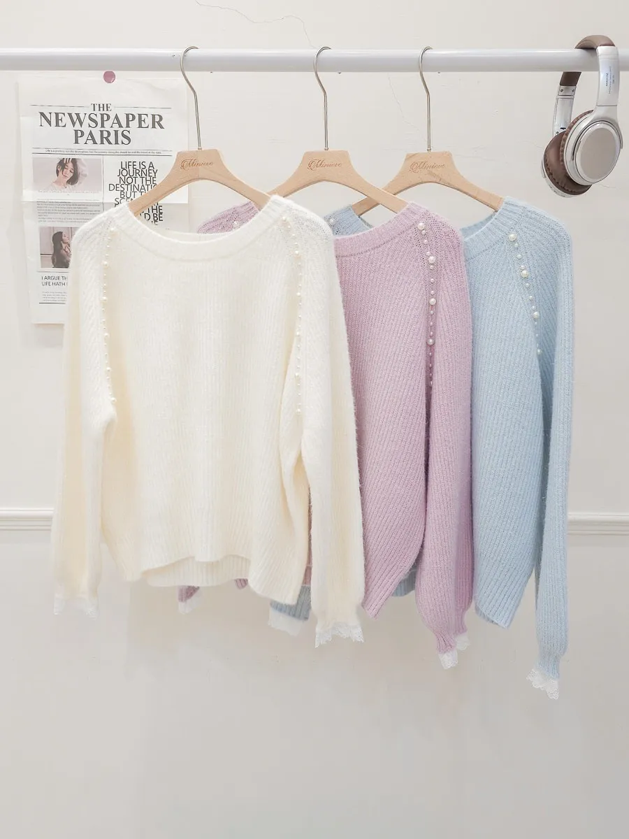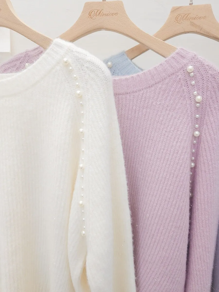 34.正韓 雙側綴珠細坑條針織上衣 3色