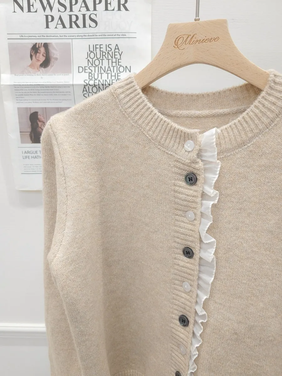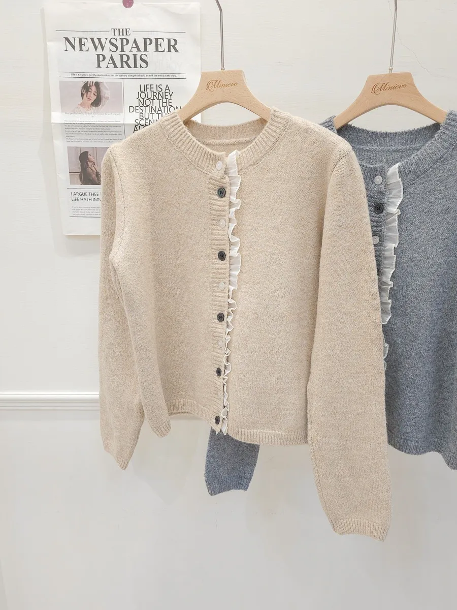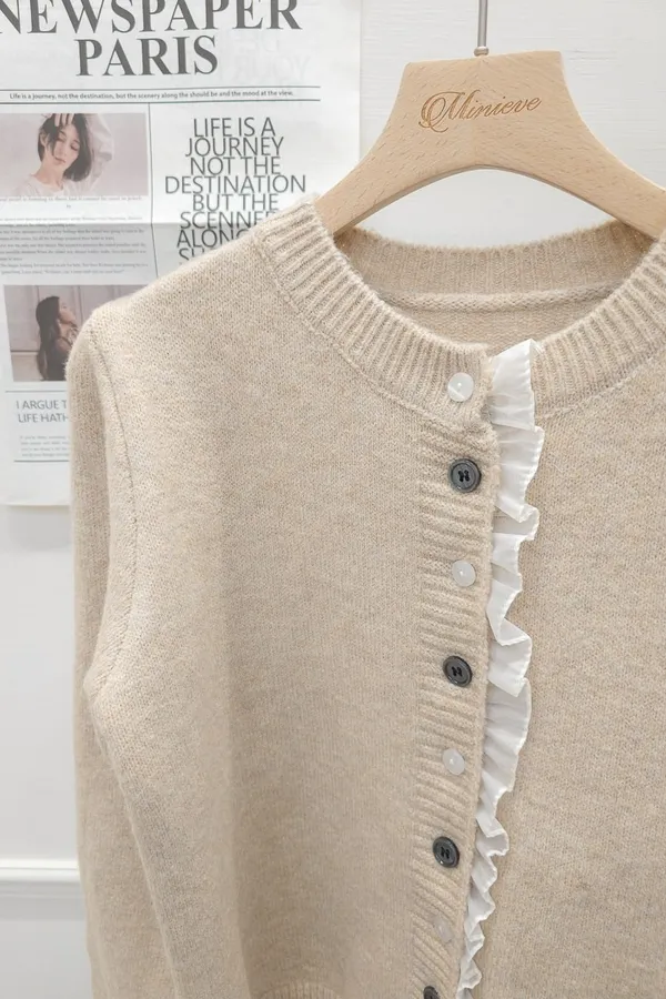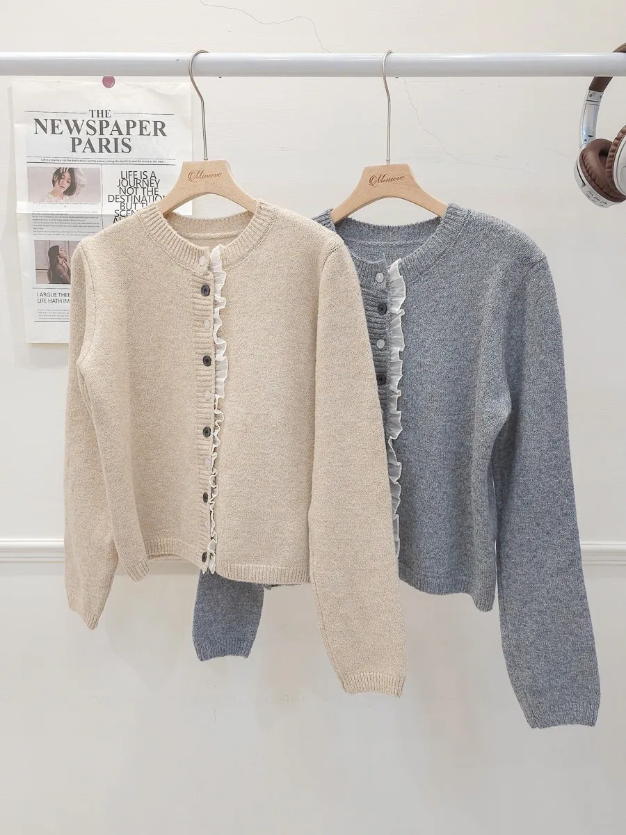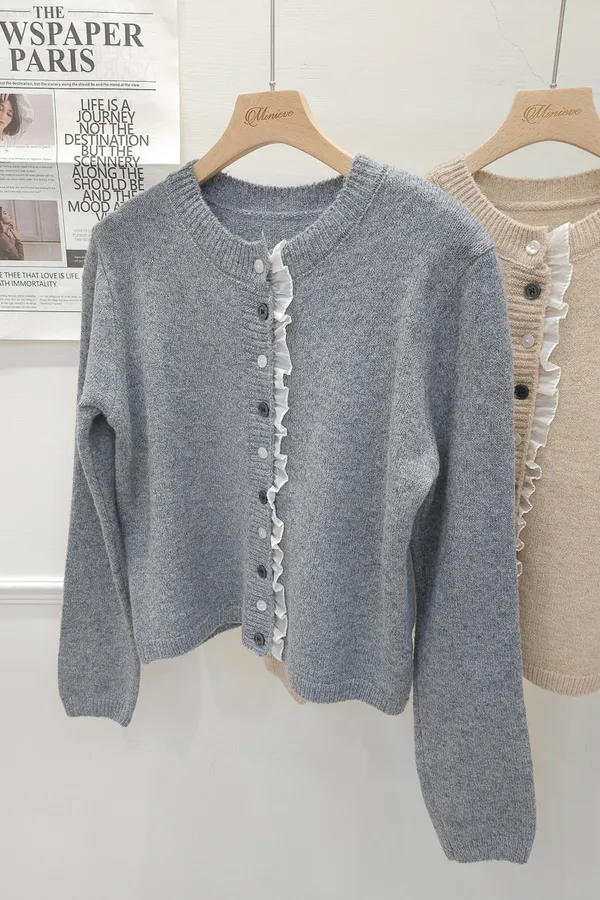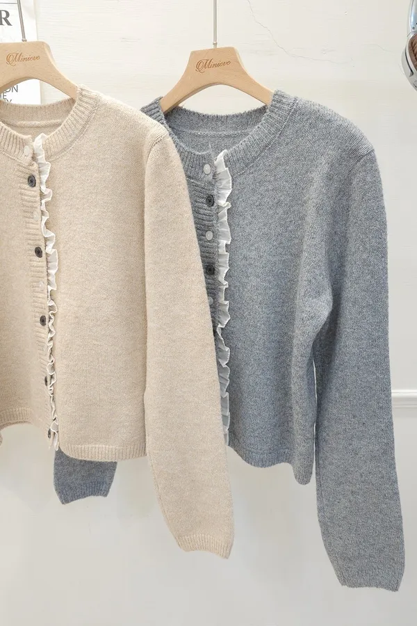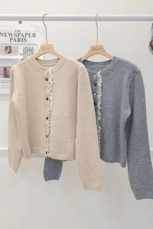 45.正韓 細摺滾邊開釦針織上衣 2色