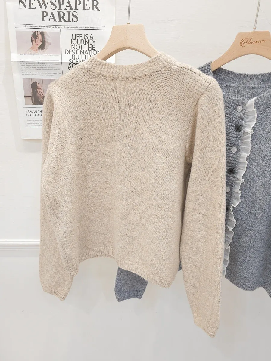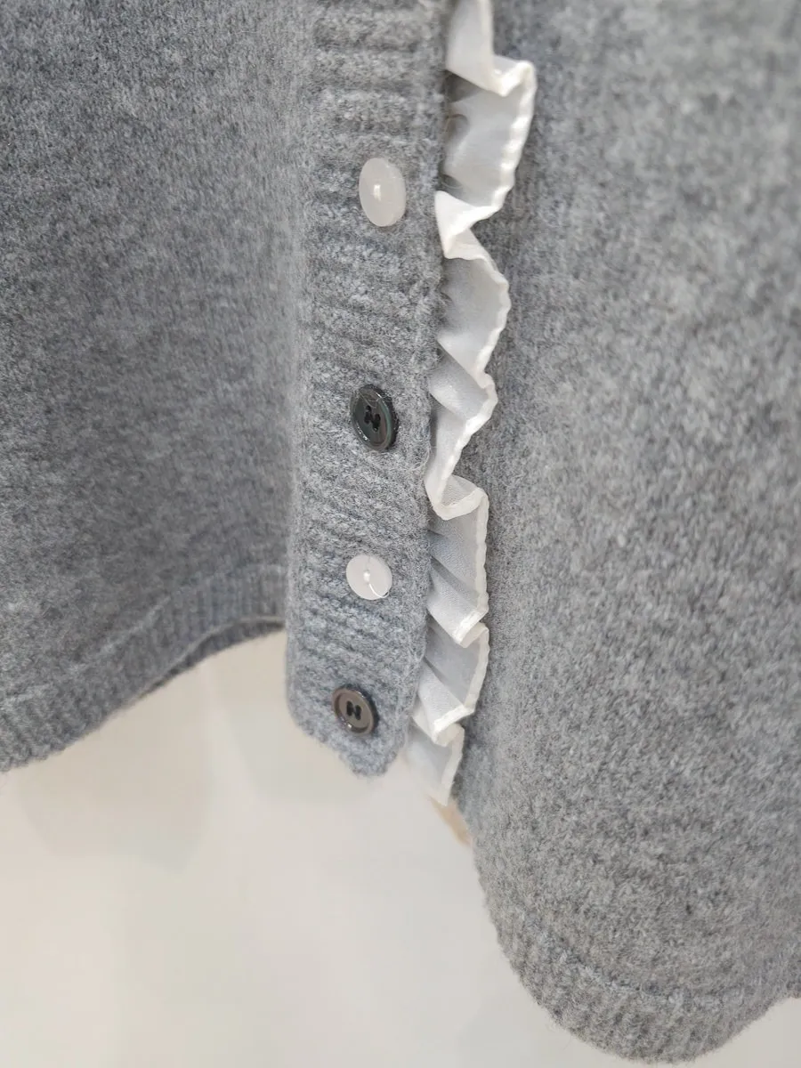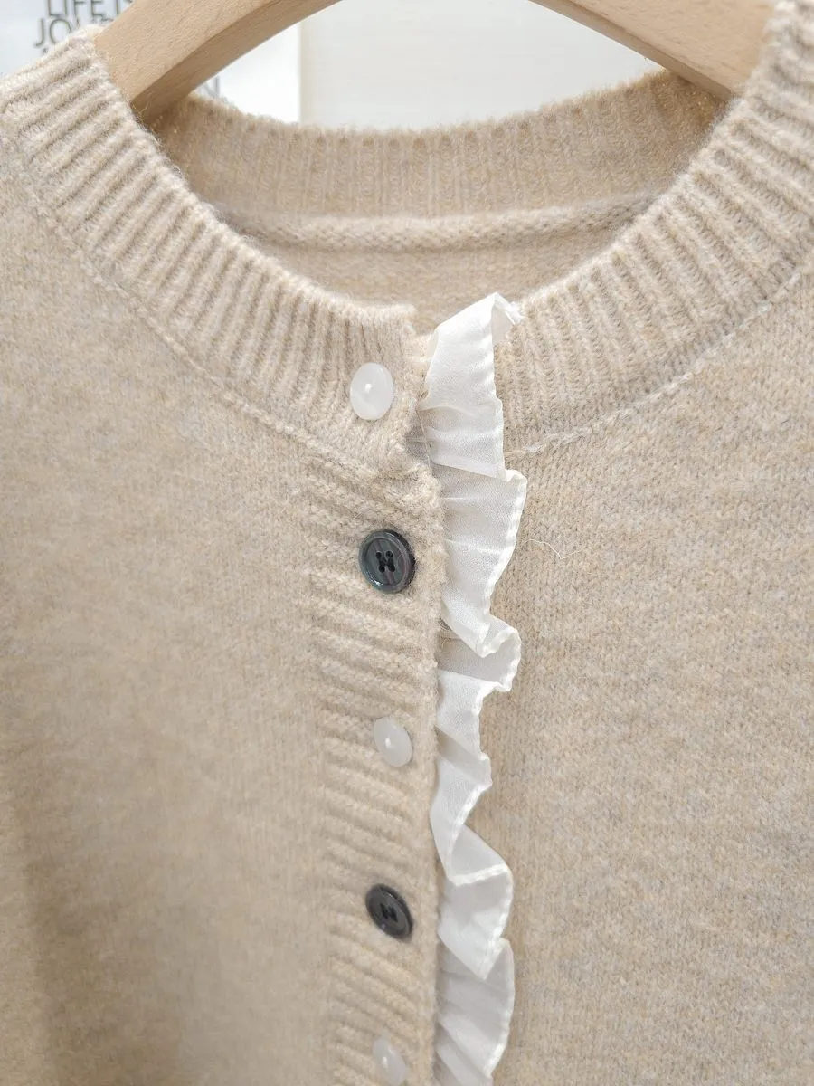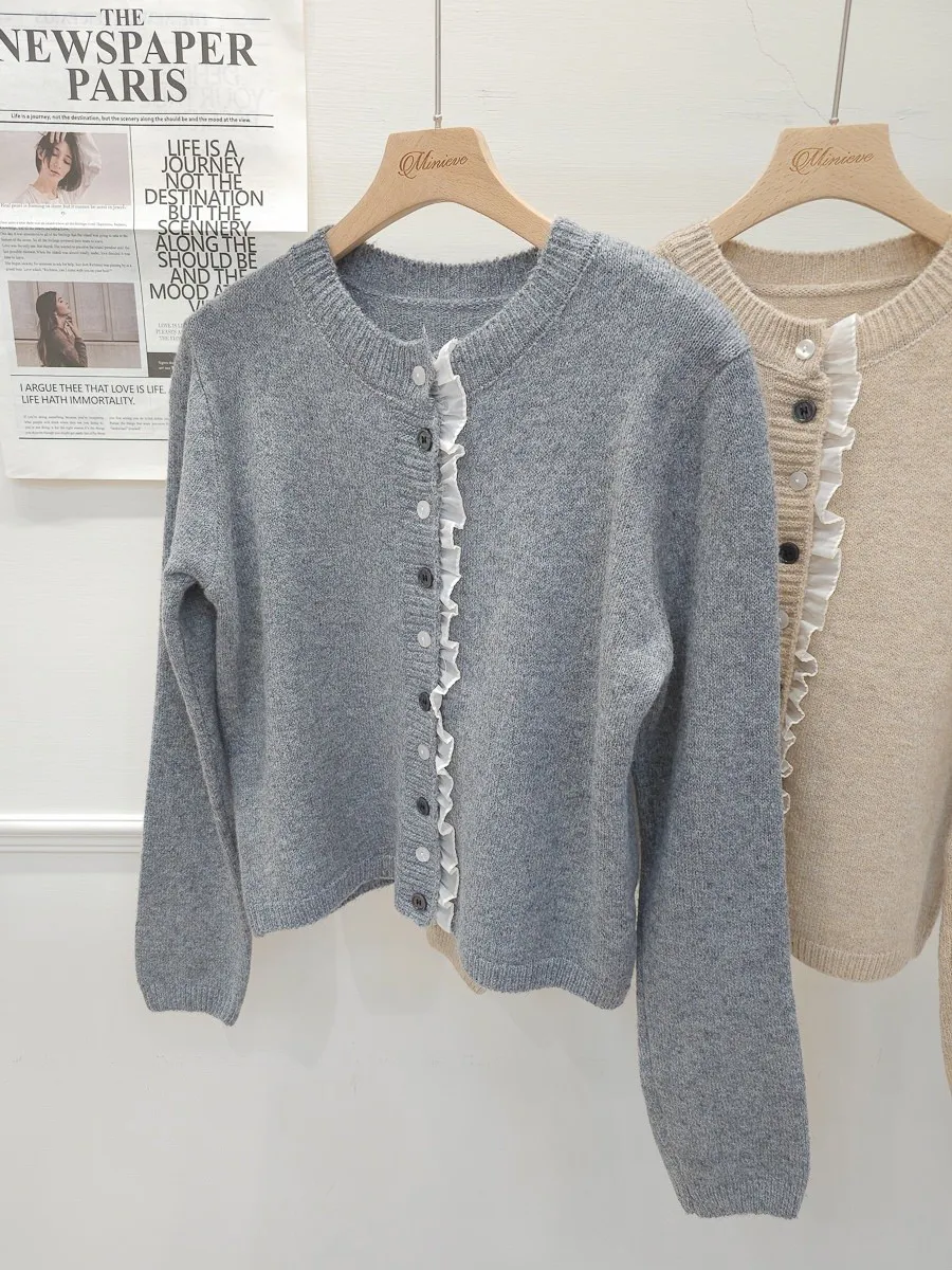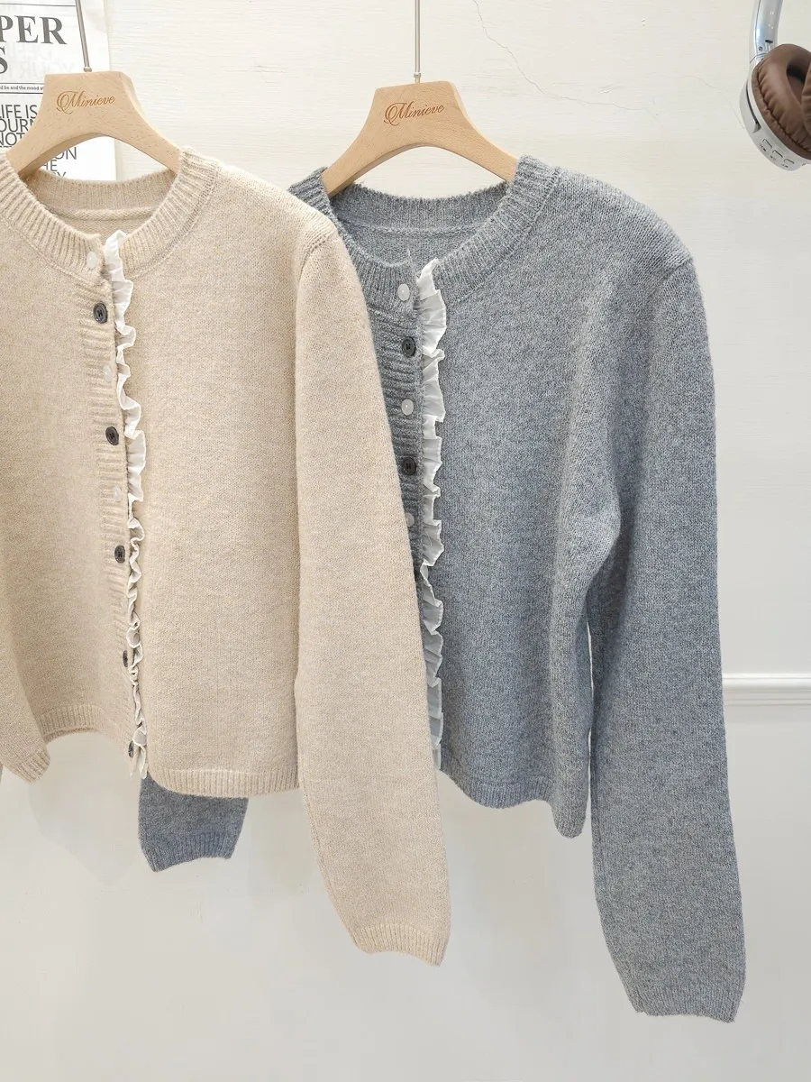 45.正韓 細摺滾邊開釦針織上衣 2色