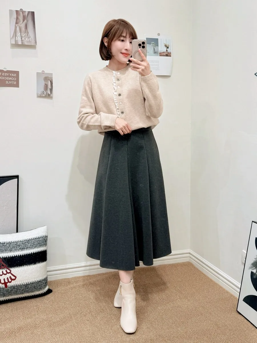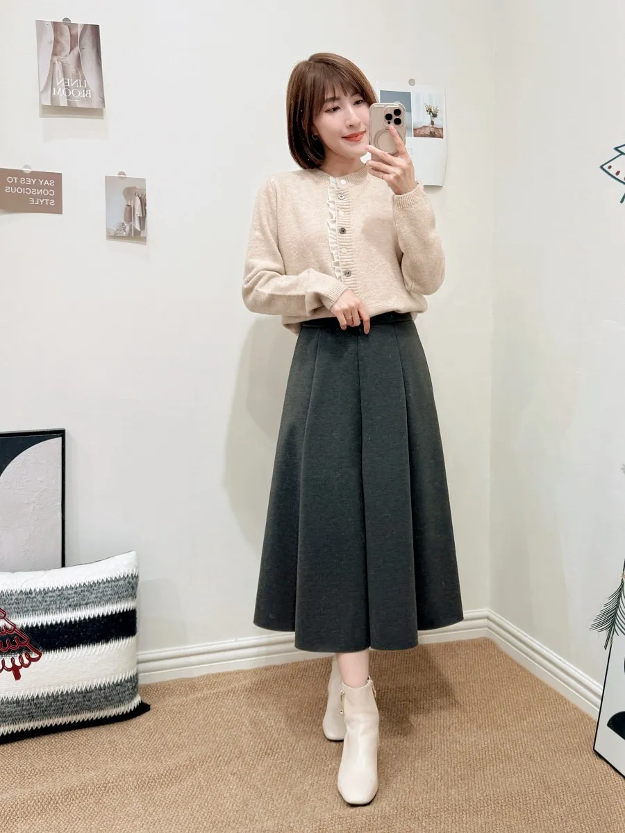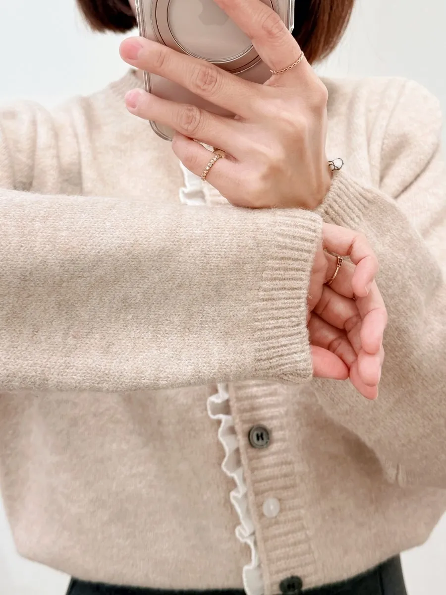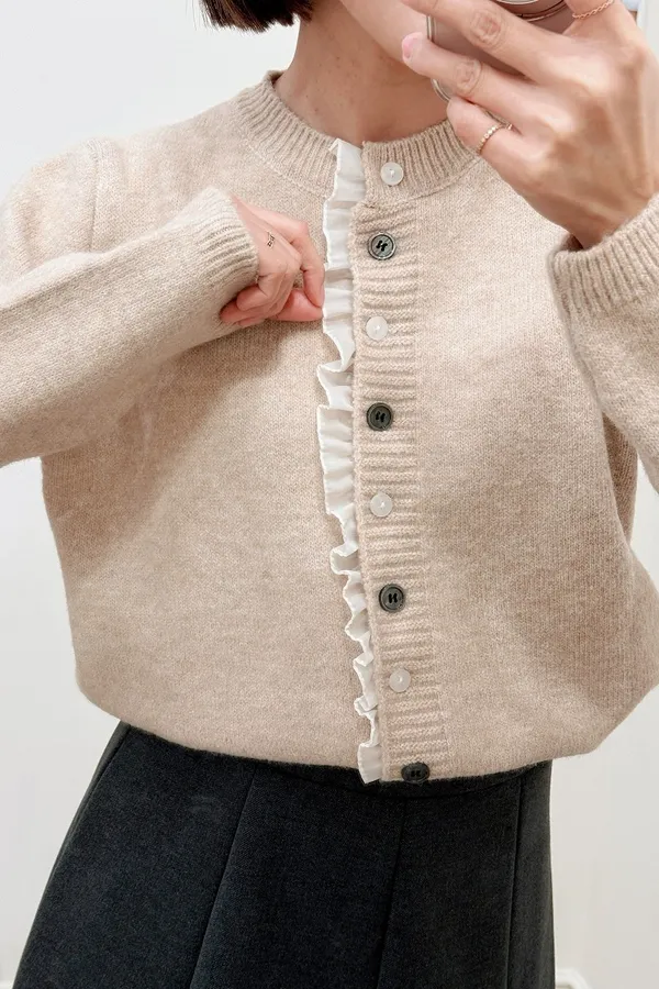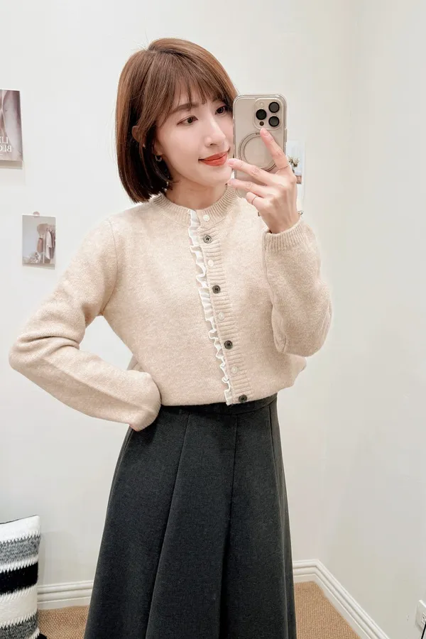 正韓 細摺滾邊開釦針織上衣 2色
