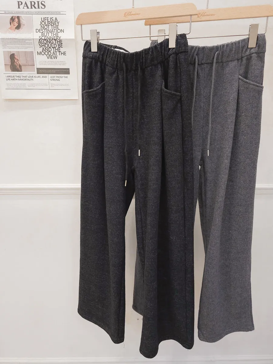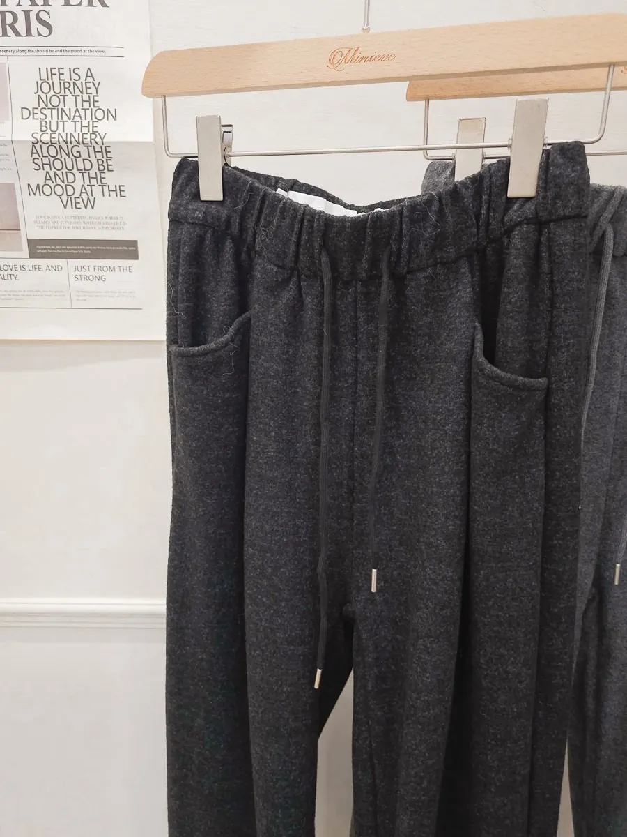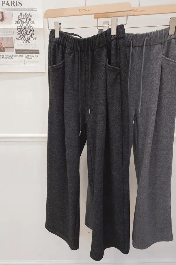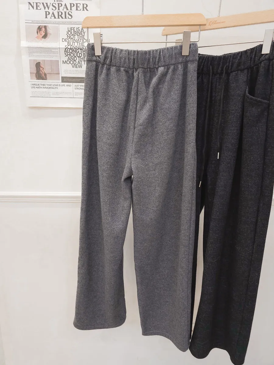 47.正韓 側口袋打摺毛呢寬褲 2色