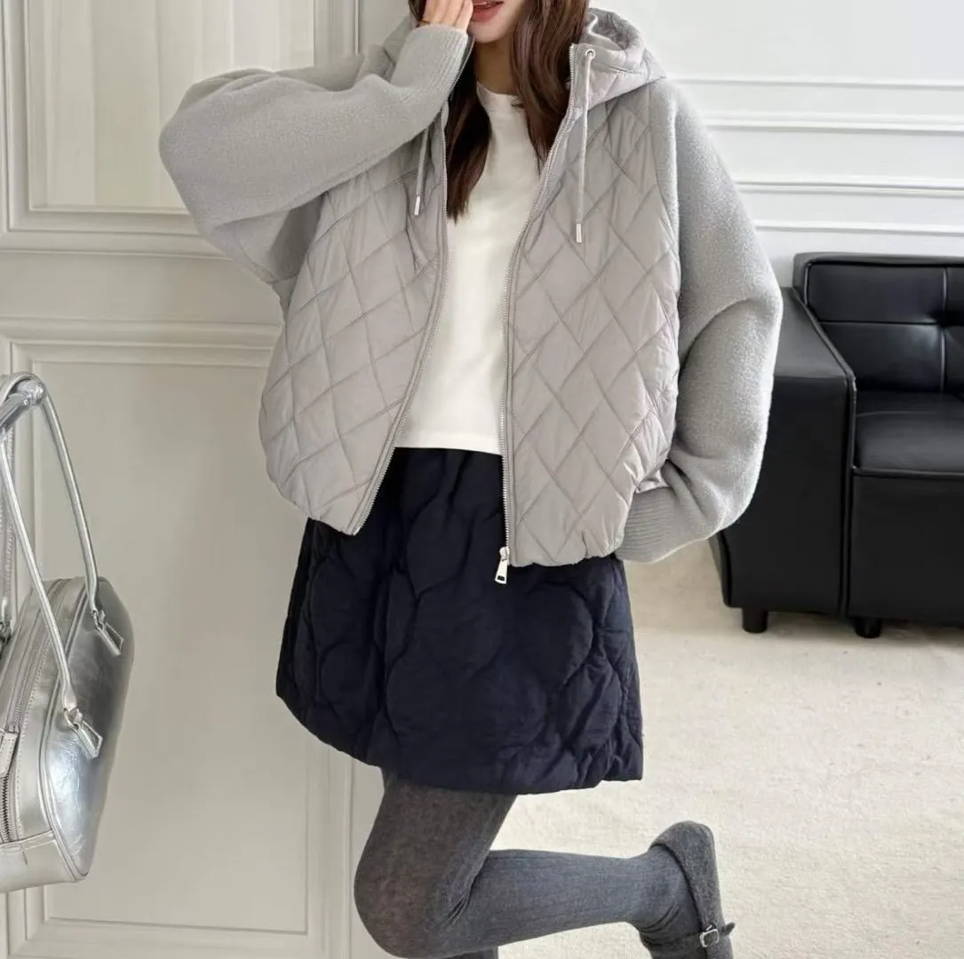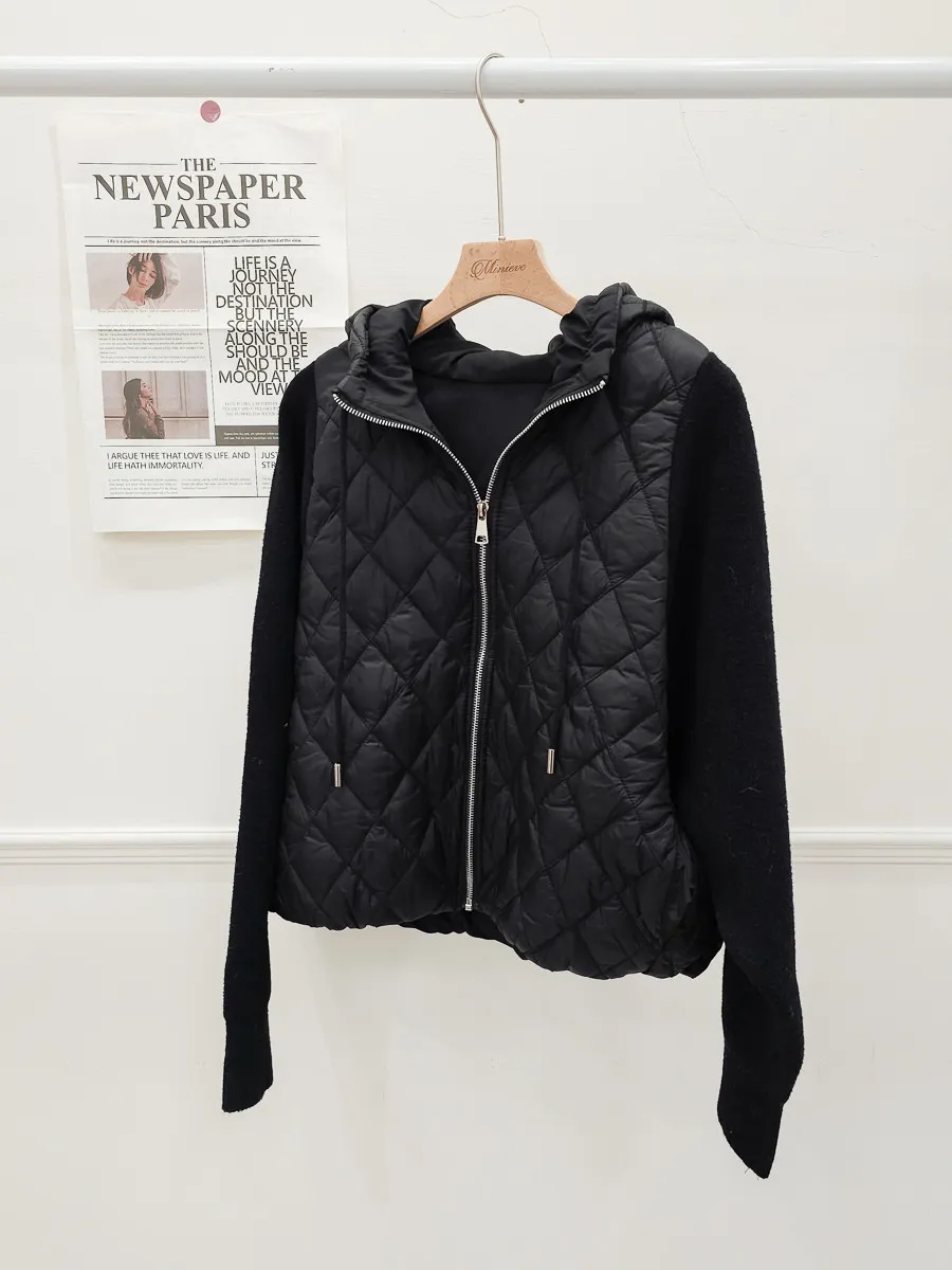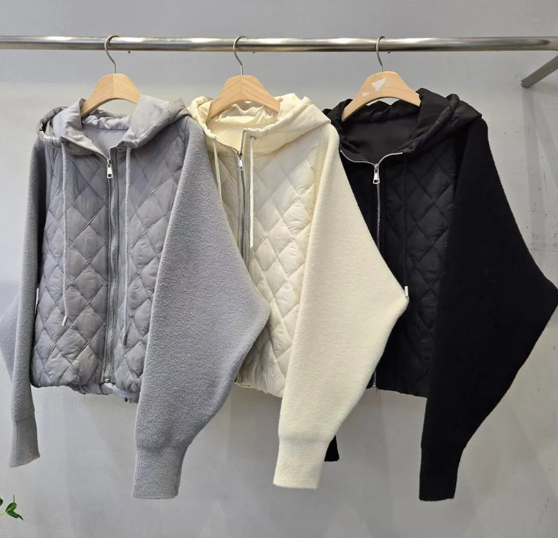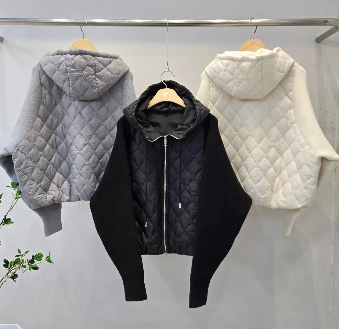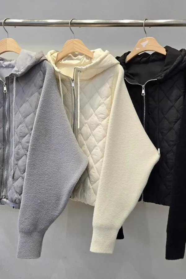 61.正韓 菱格拼接毛呢輕量連帽外套 3色
