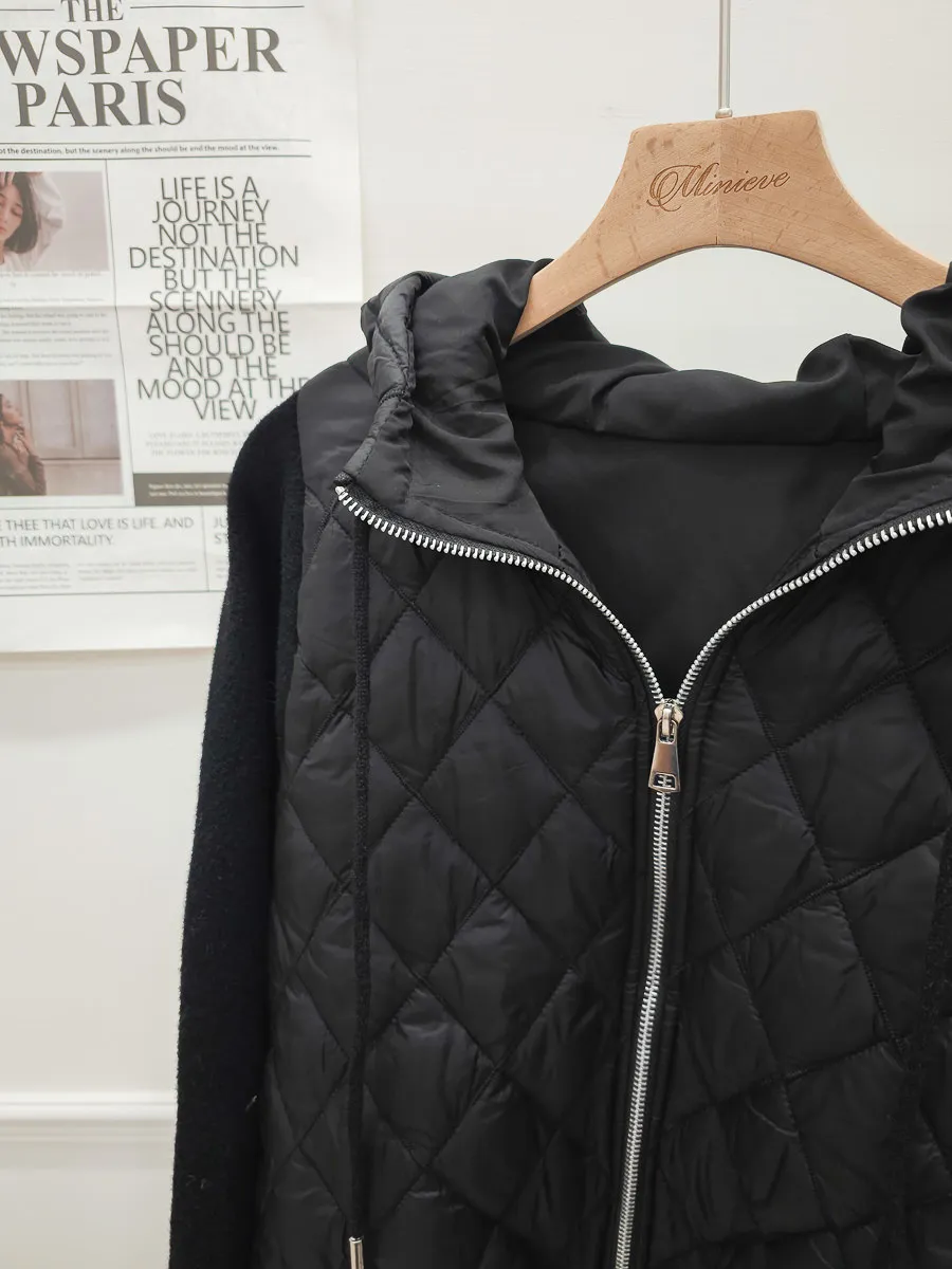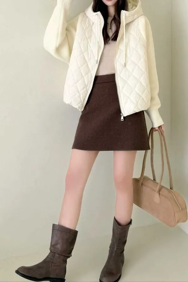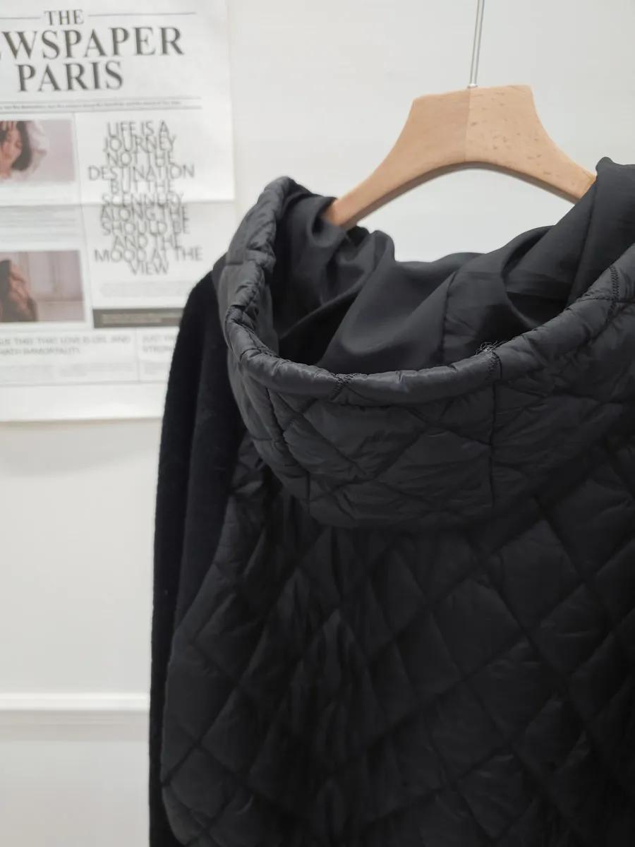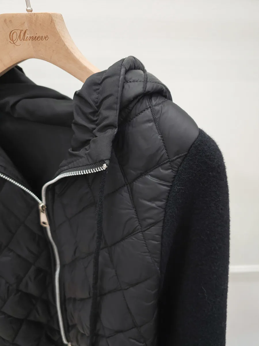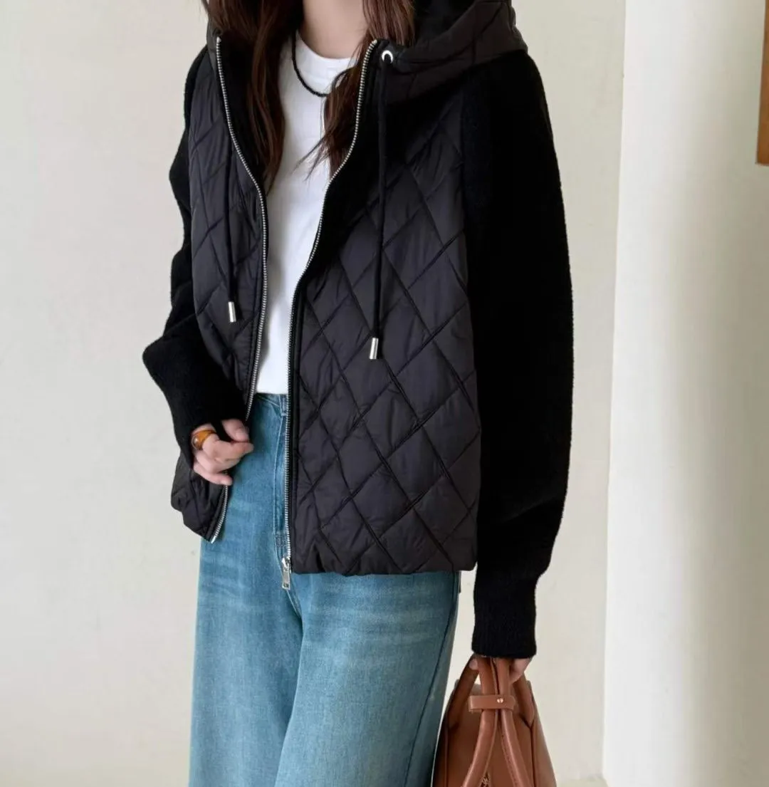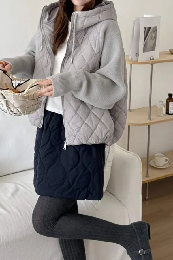 61.正韓 菱格拼接毛呢輕量連帽外套 3色