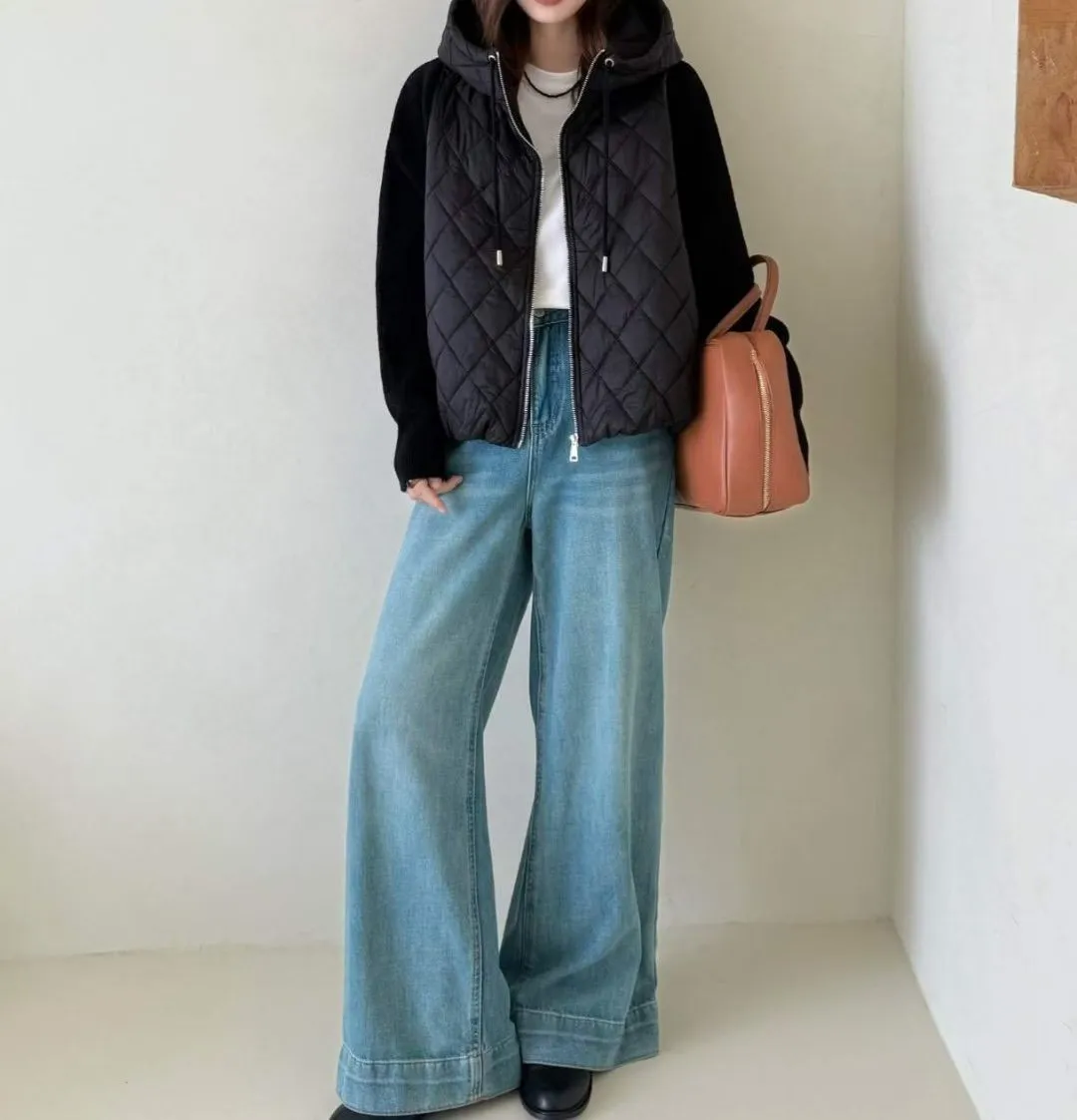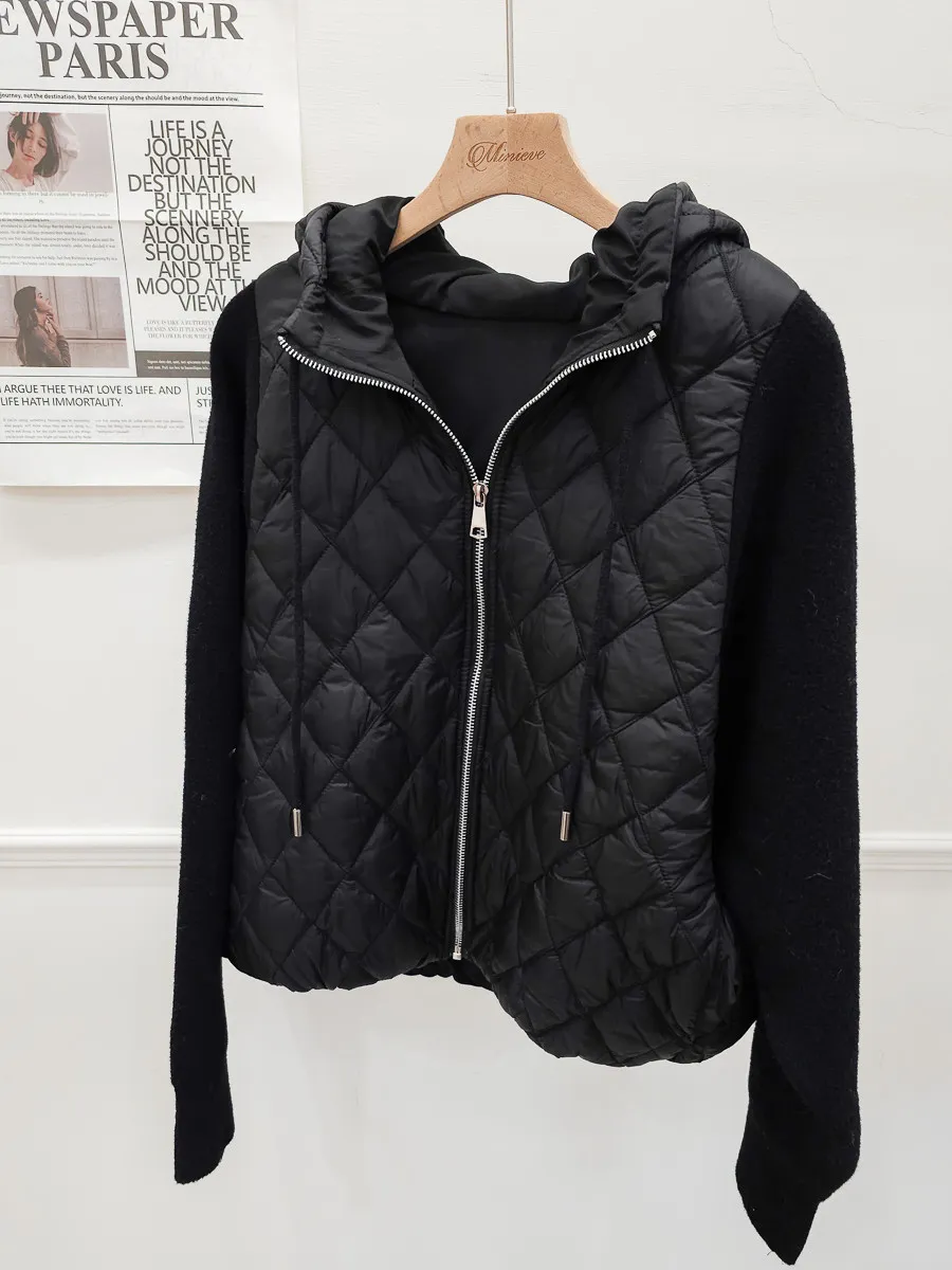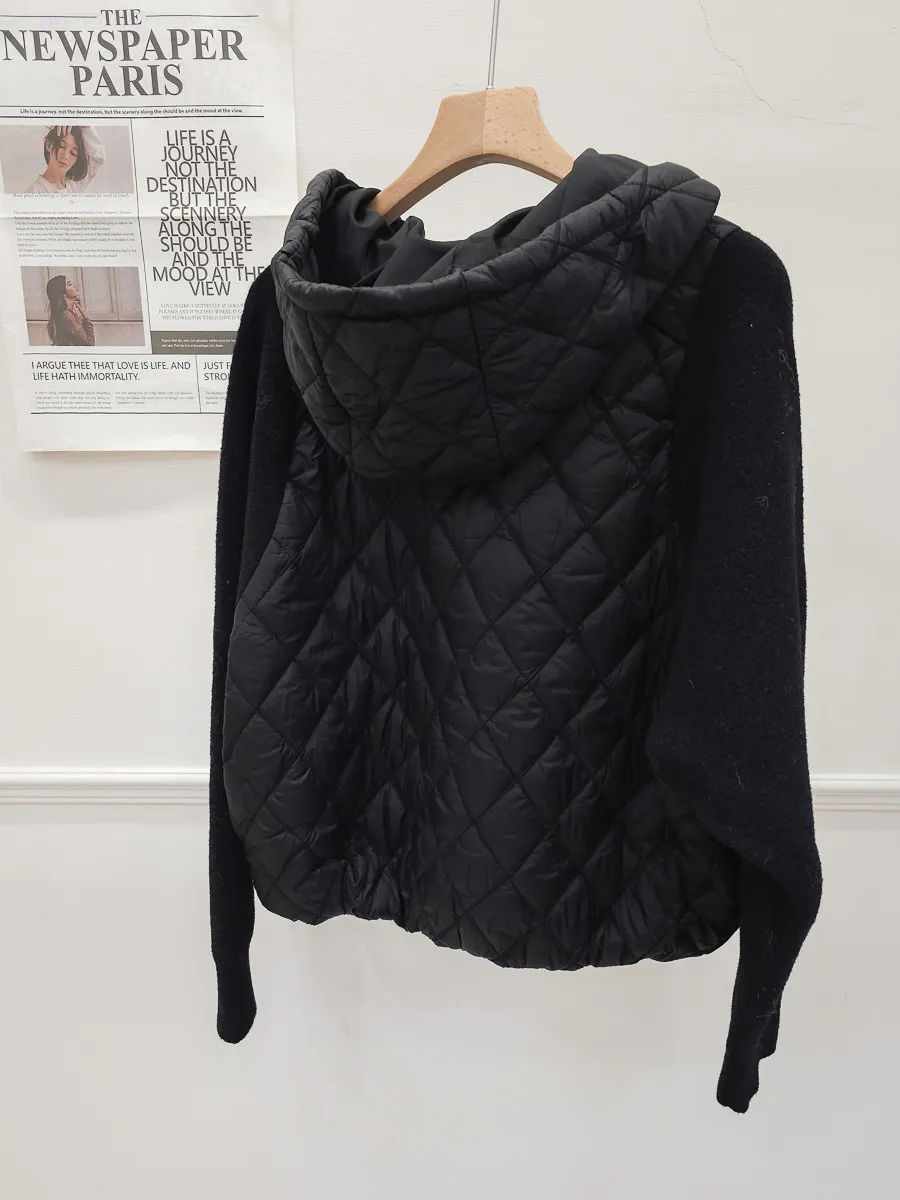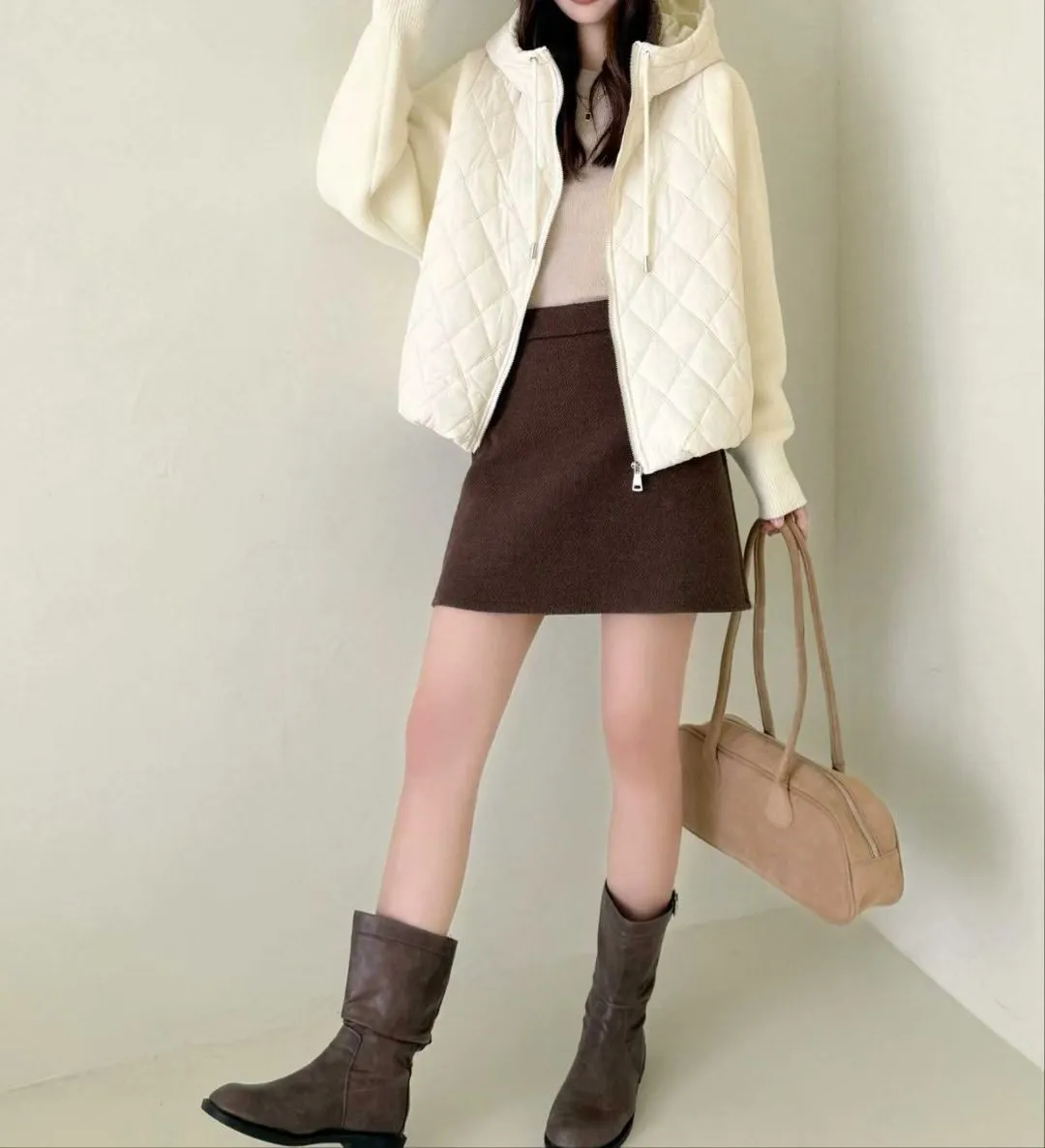 61.正韓 菱格拼接毛呢輕量連帽外套 3色