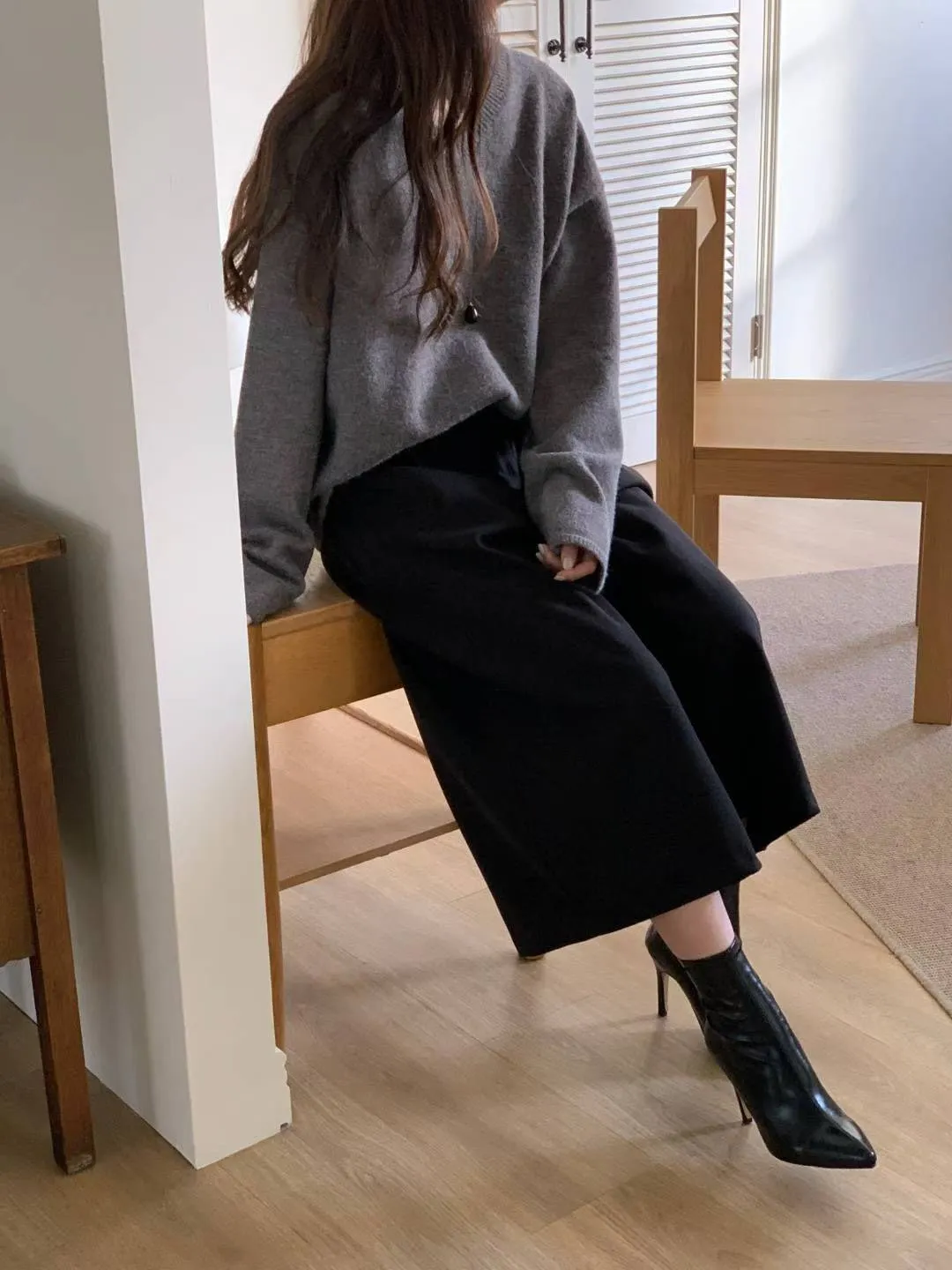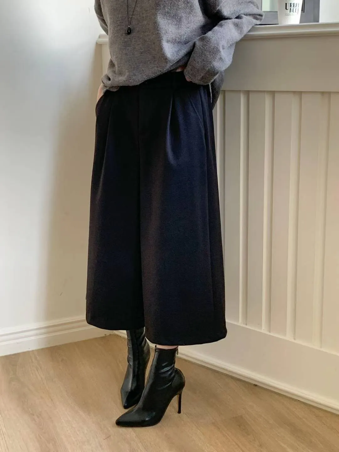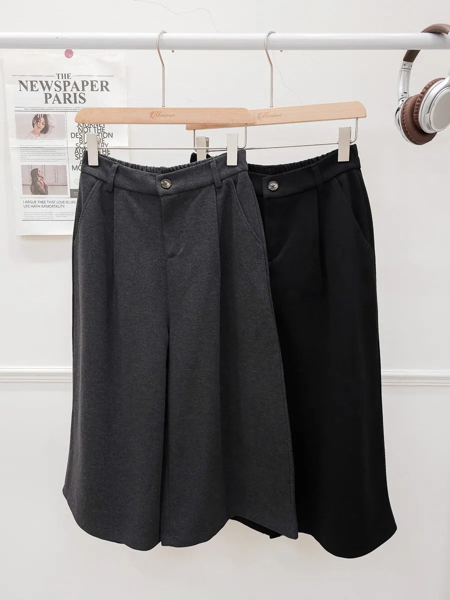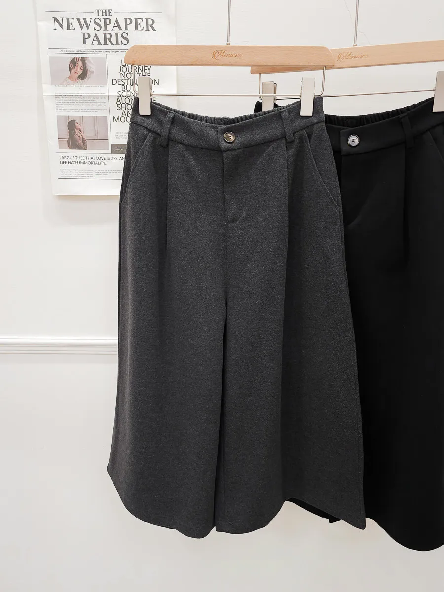 65.正韓 打褶羊毛八分寬褲裙 2色