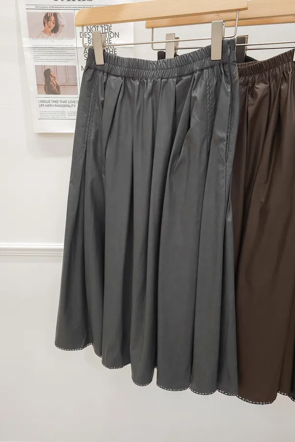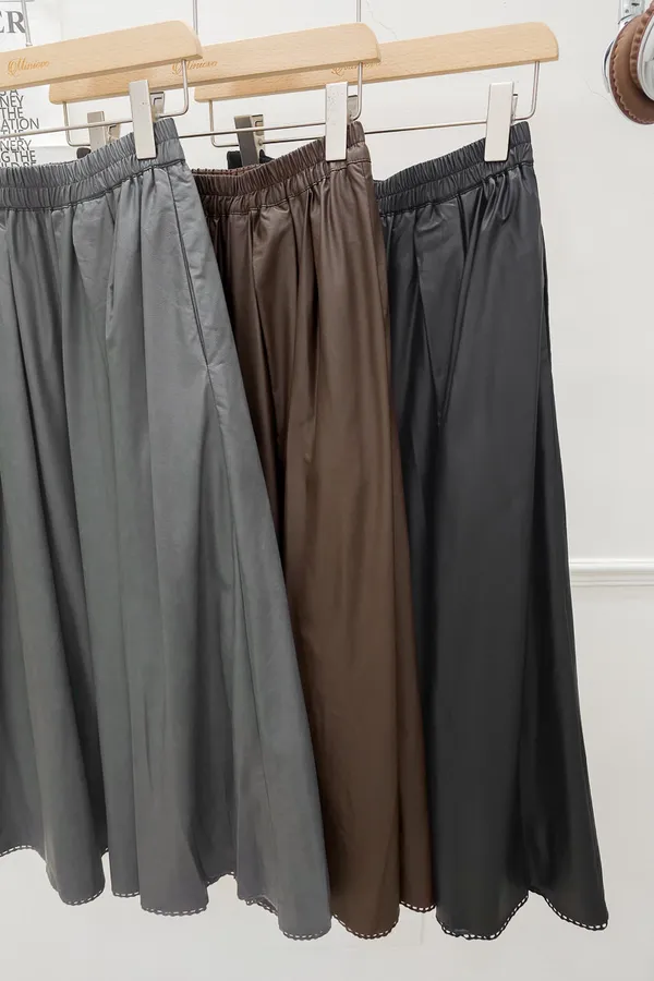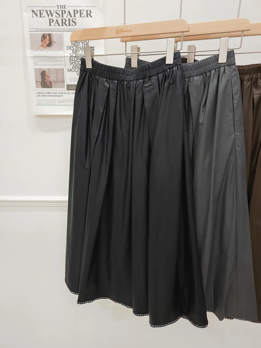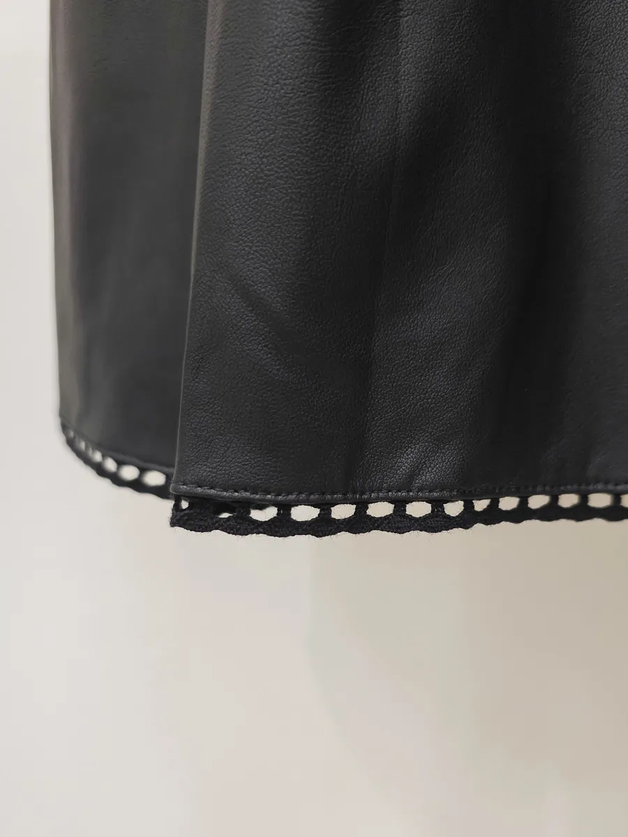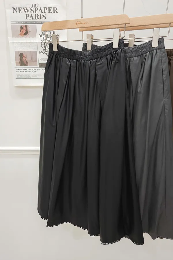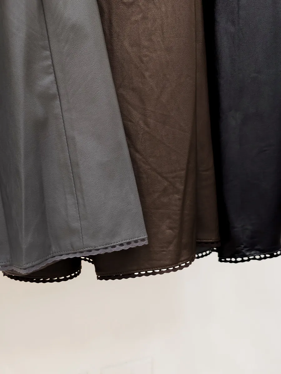 70.正韓 蕾絲滾邊皮料傘裙 3色