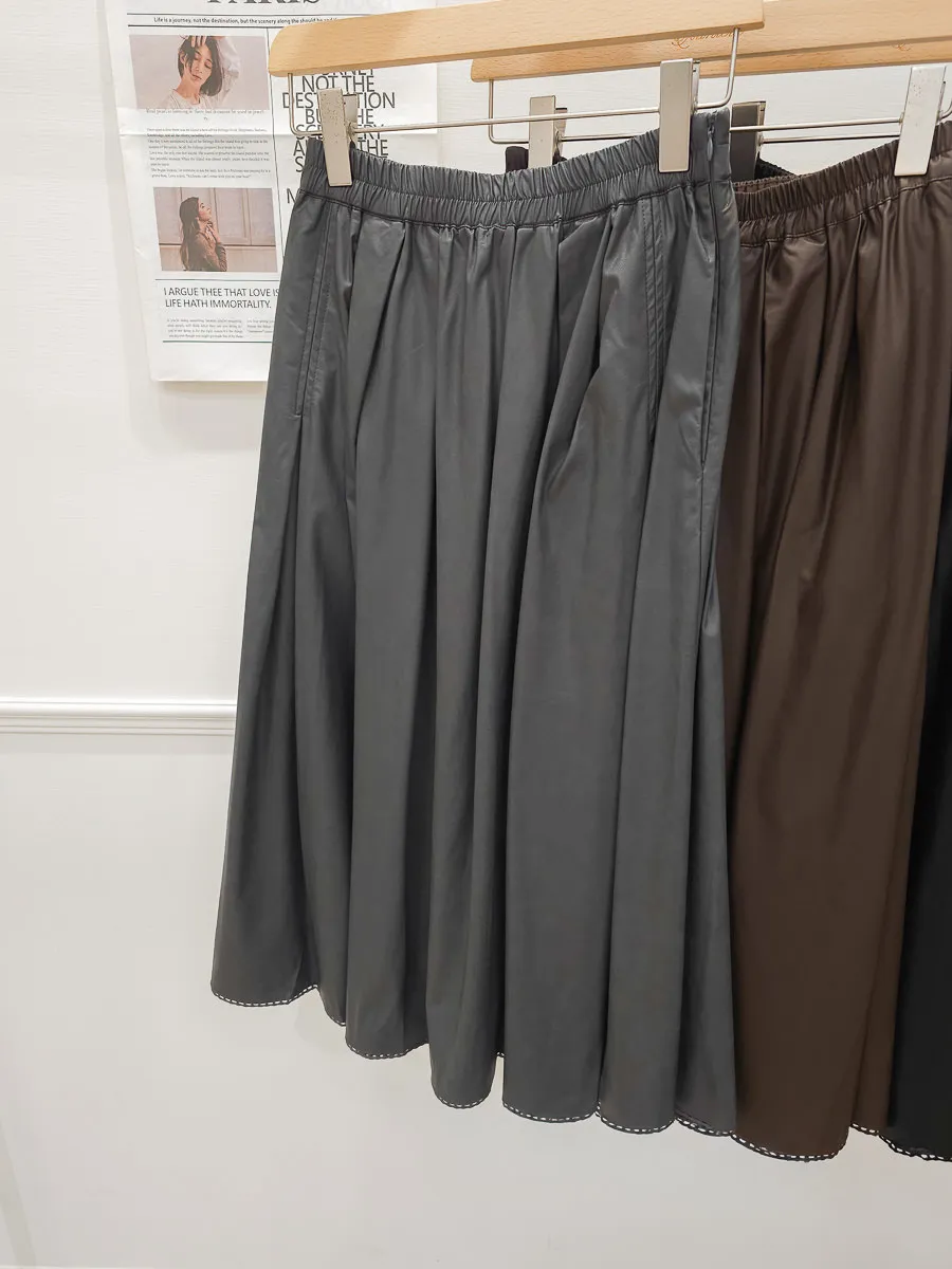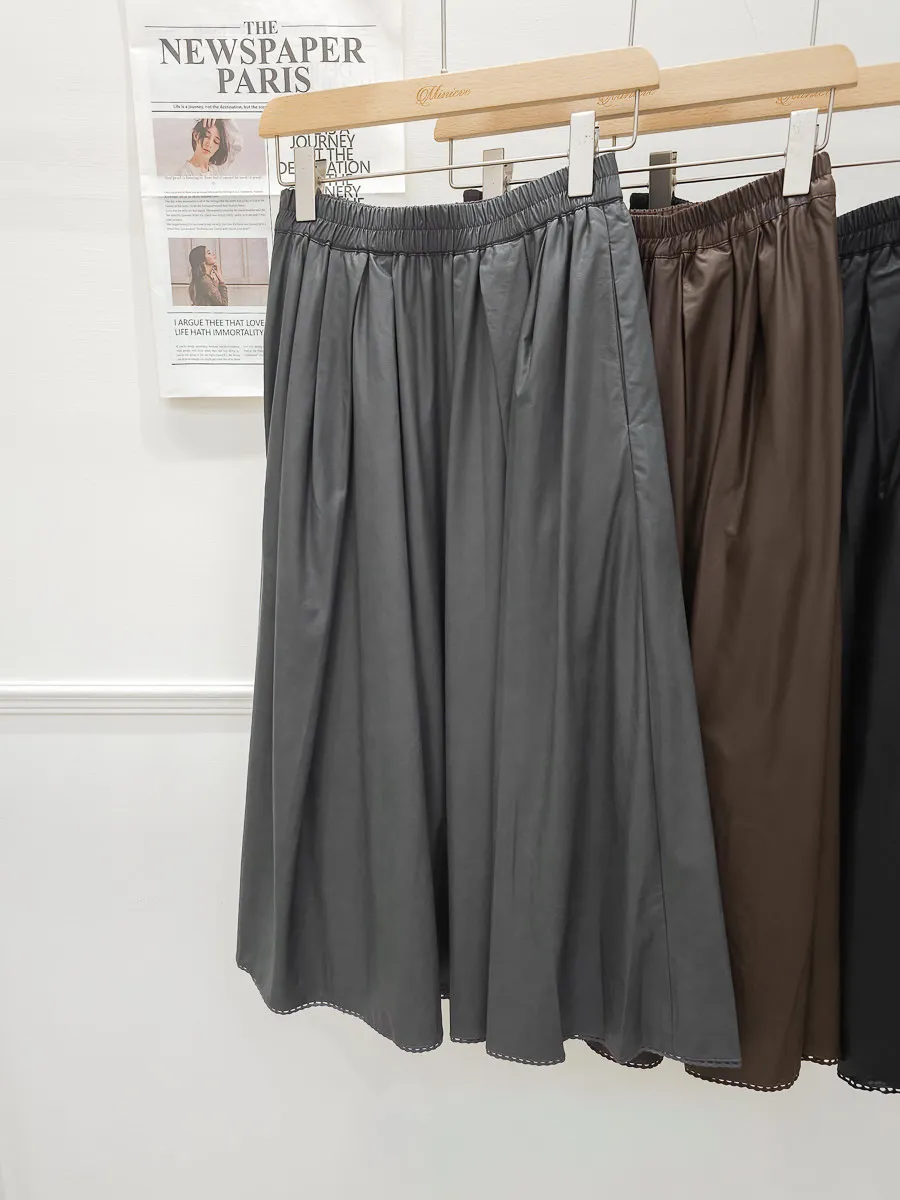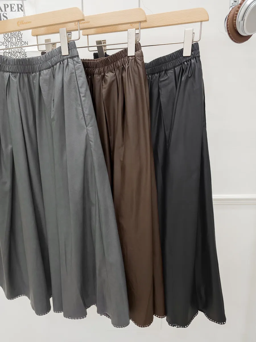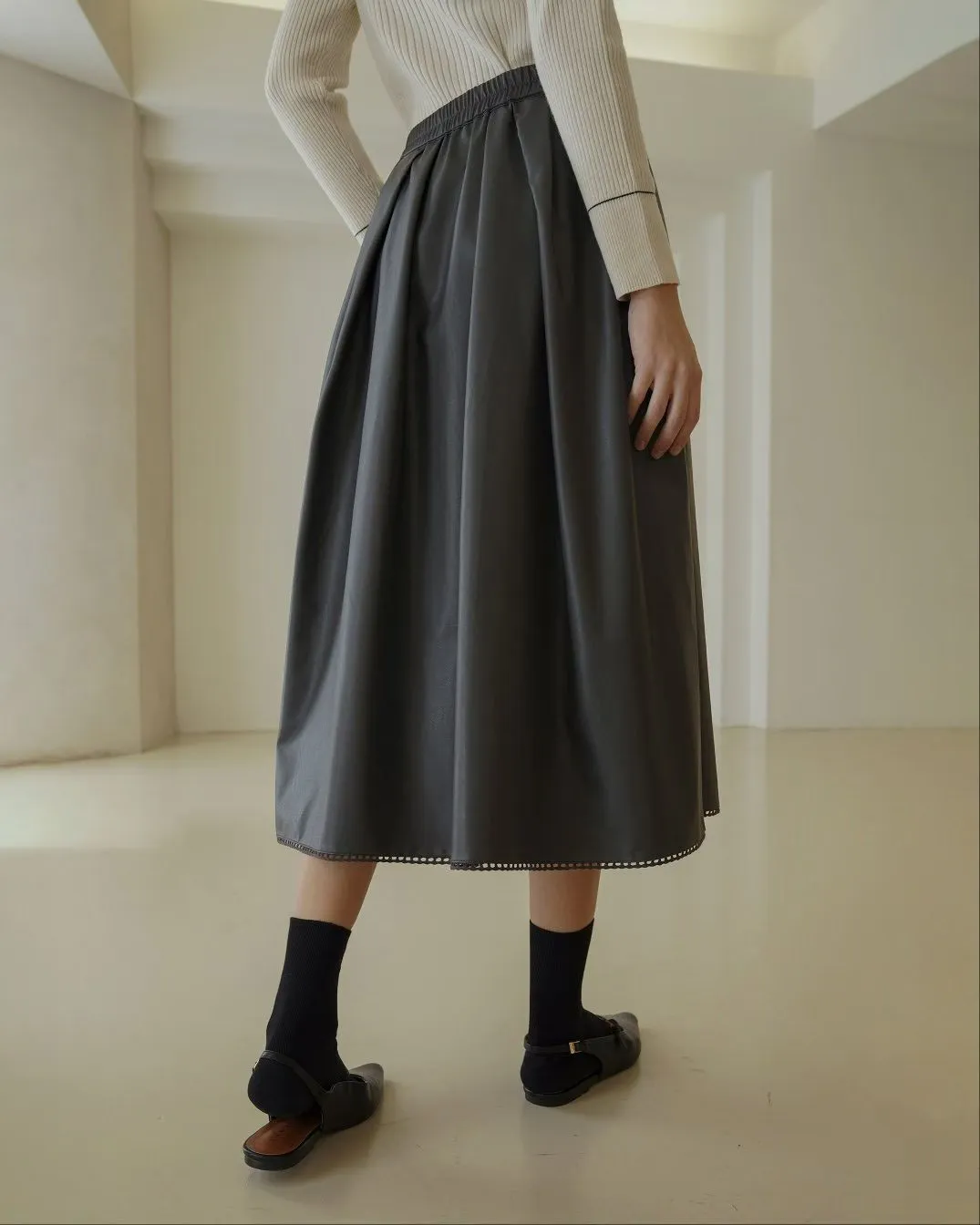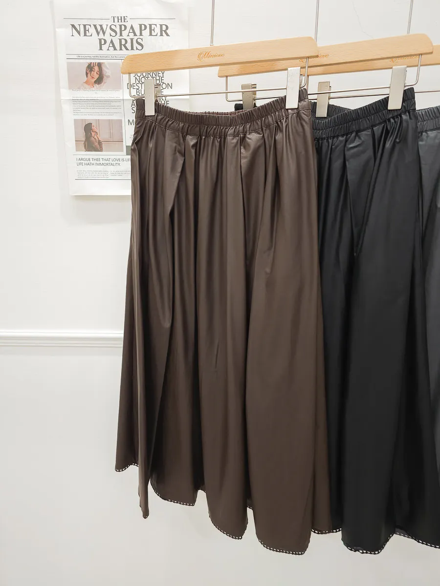 70.正韓 蕾絲滾邊皮料傘裙 3色