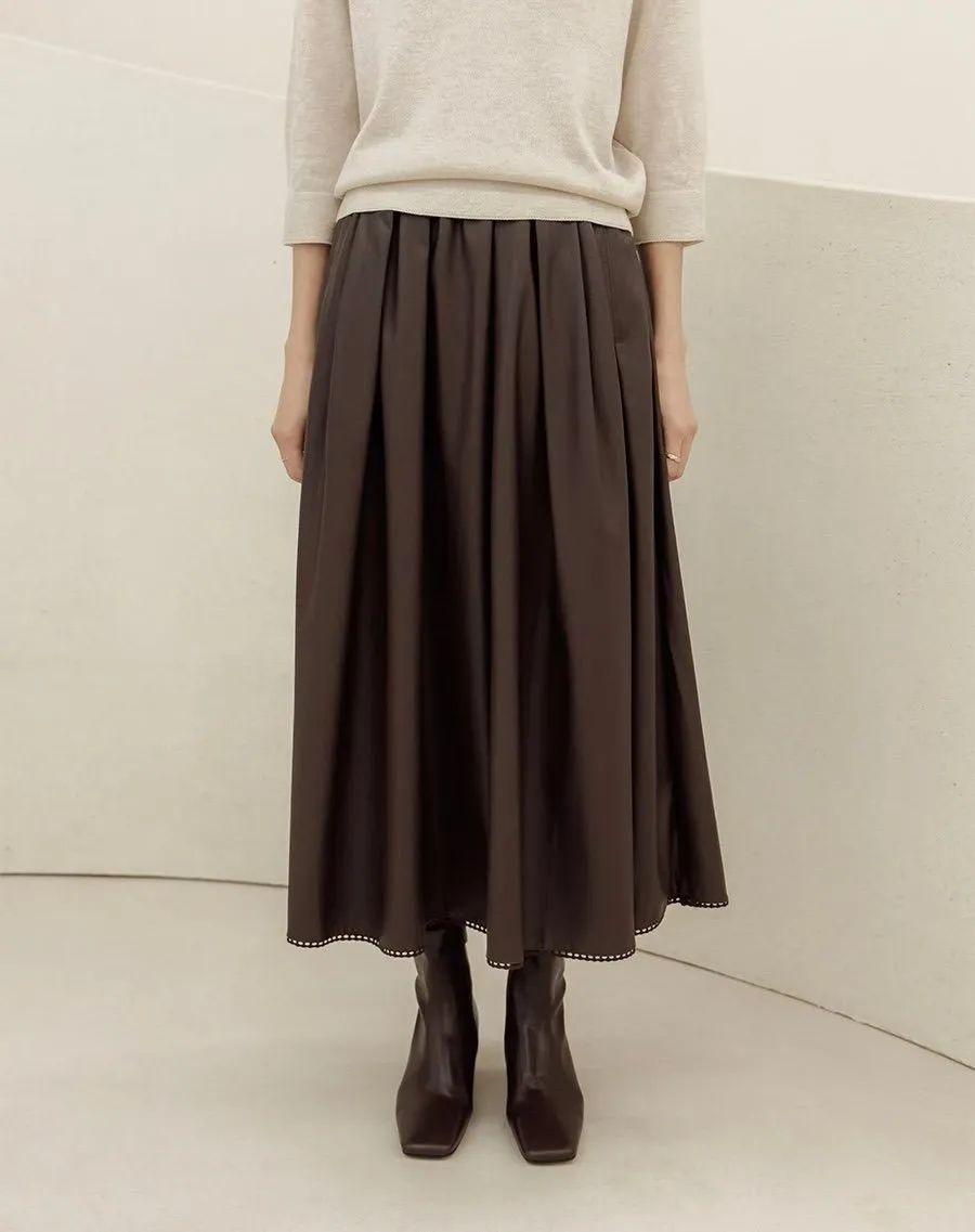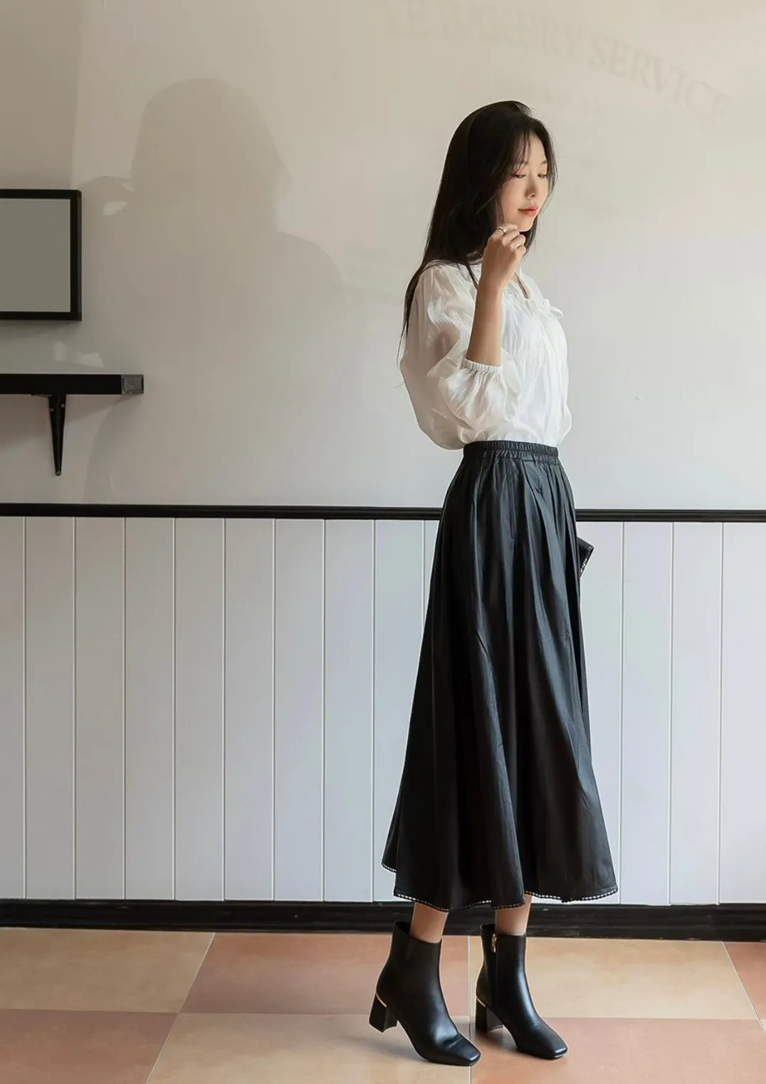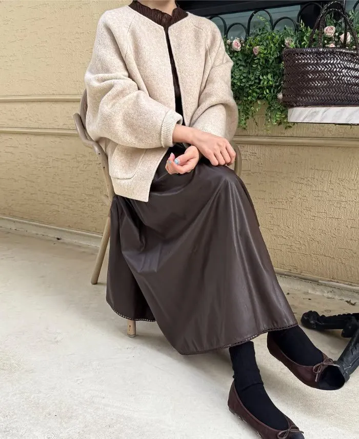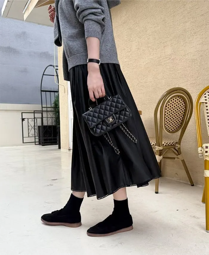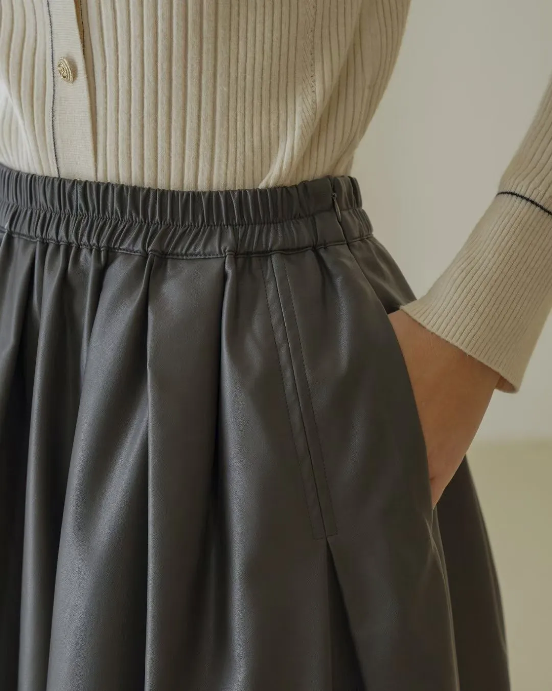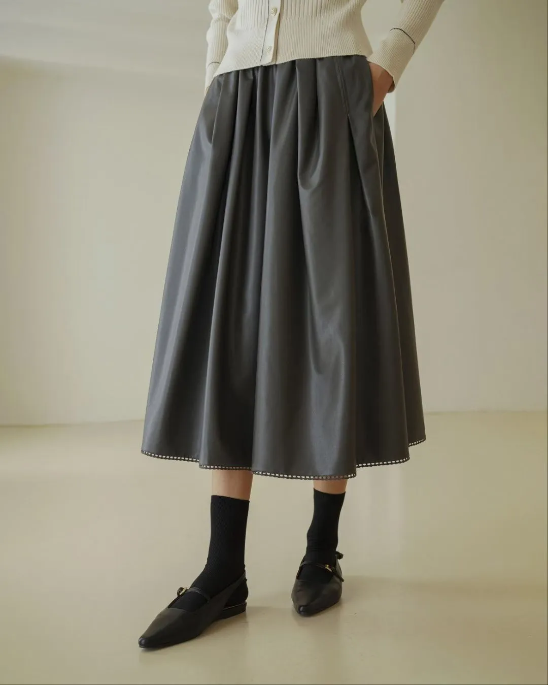 70.正韓 蕾絲滾邊皮料傘裙 3色