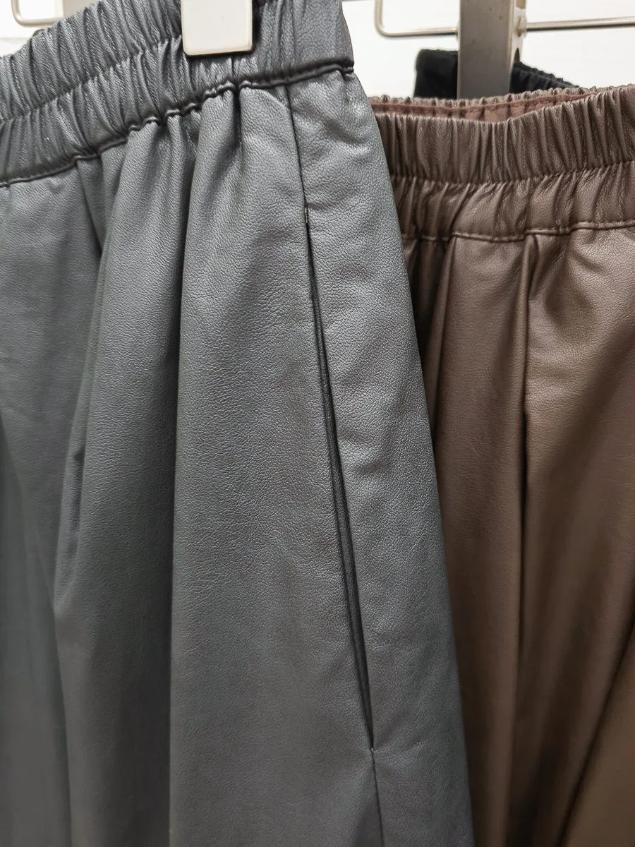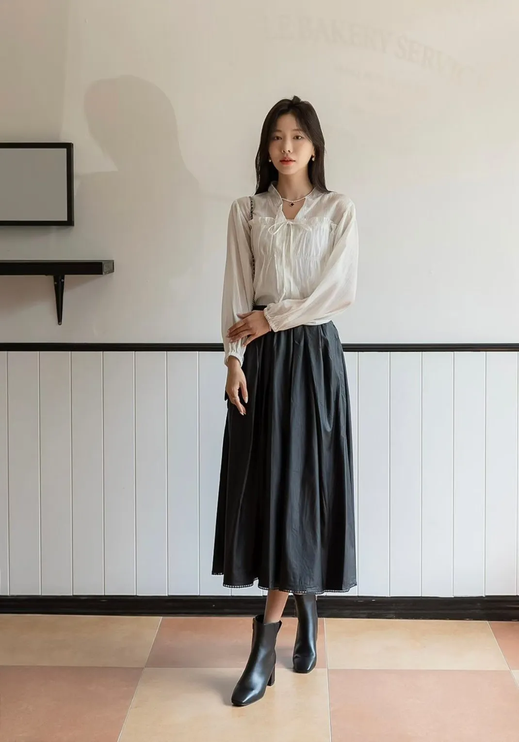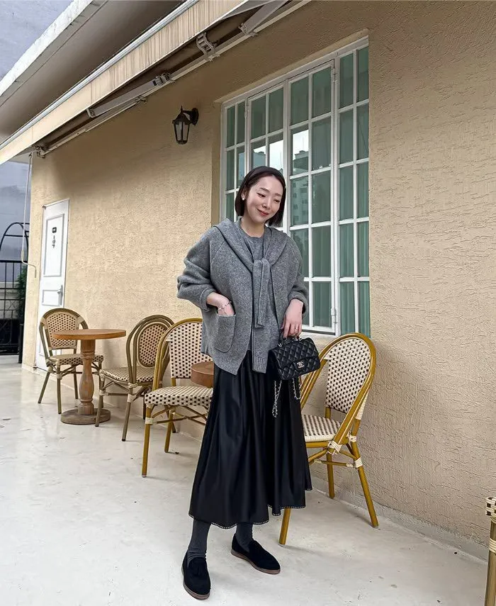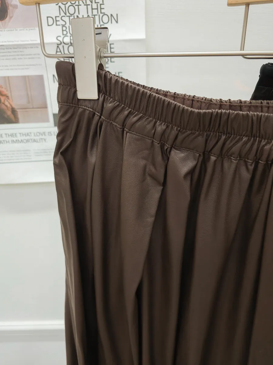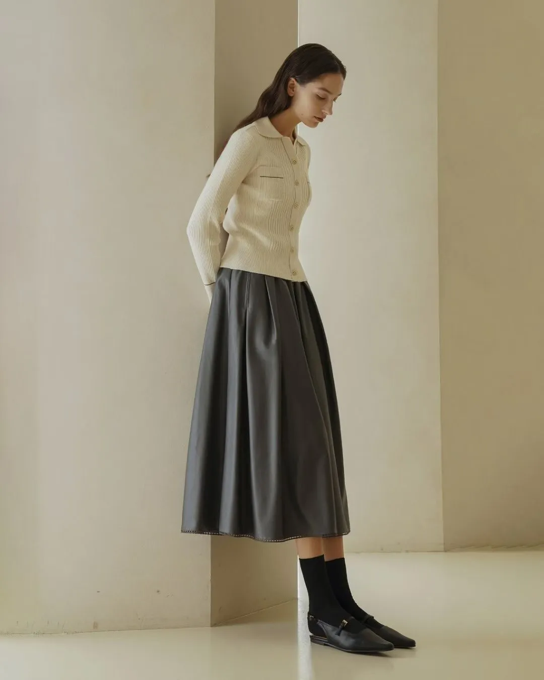70.正韓 蕾絲滾邊皮料傘裙 3色