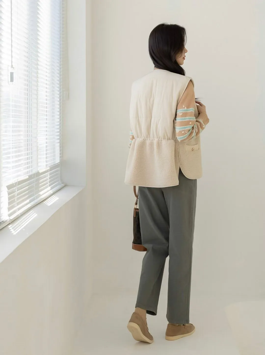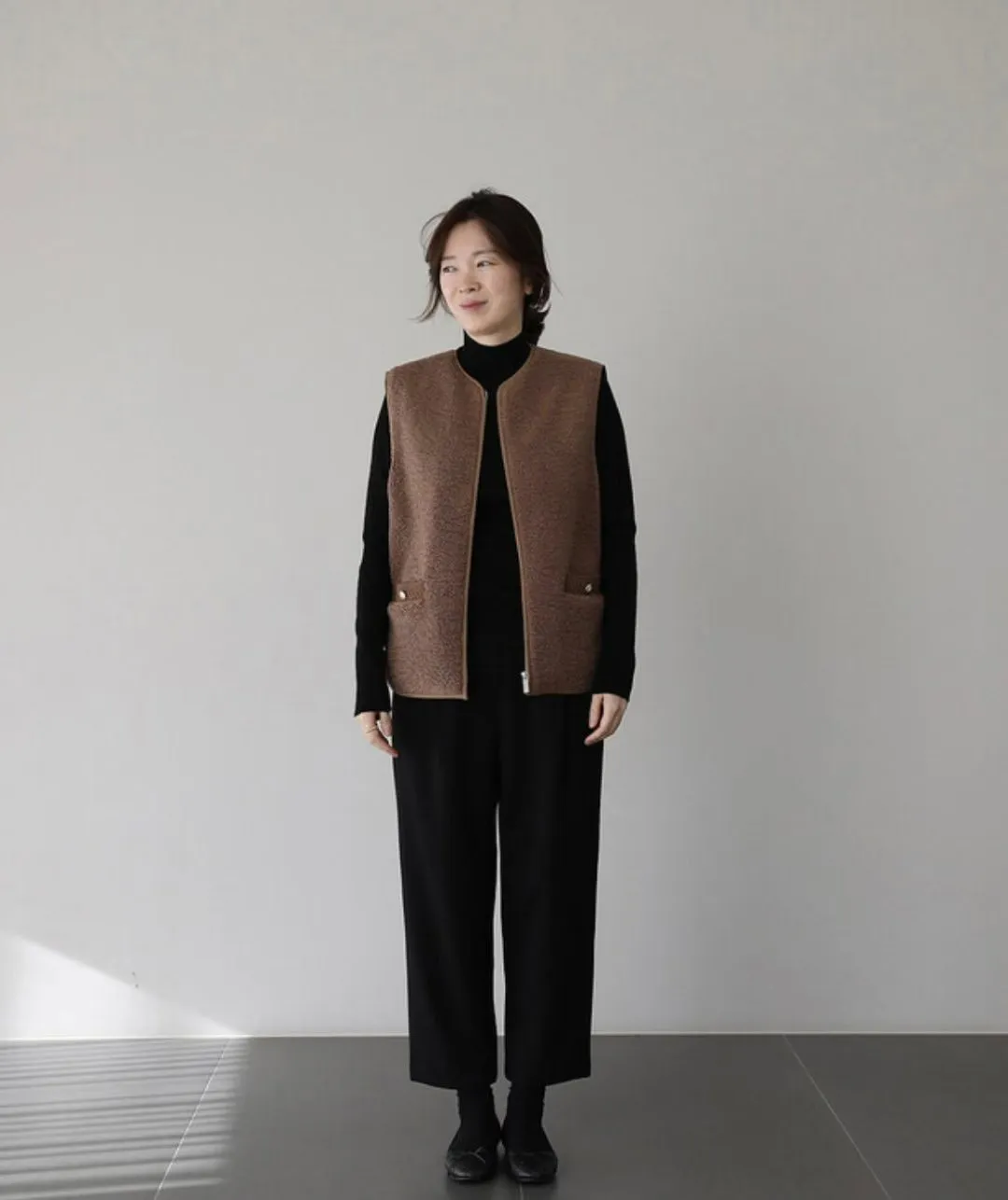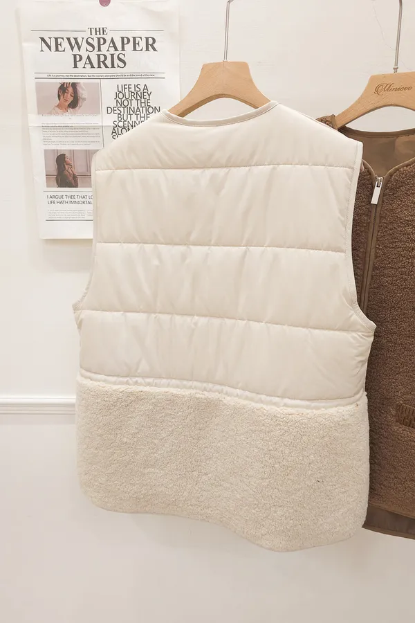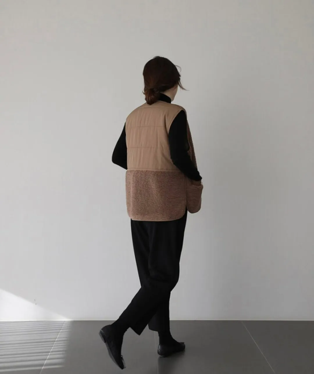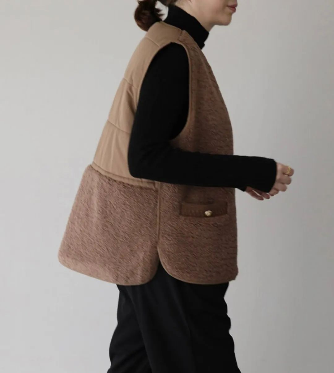 73.正韓 拼接口袋毛呢鋪棉背心 2色