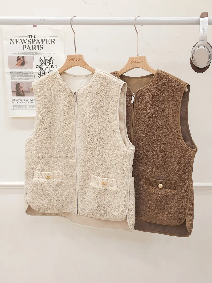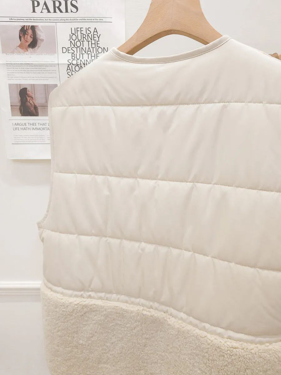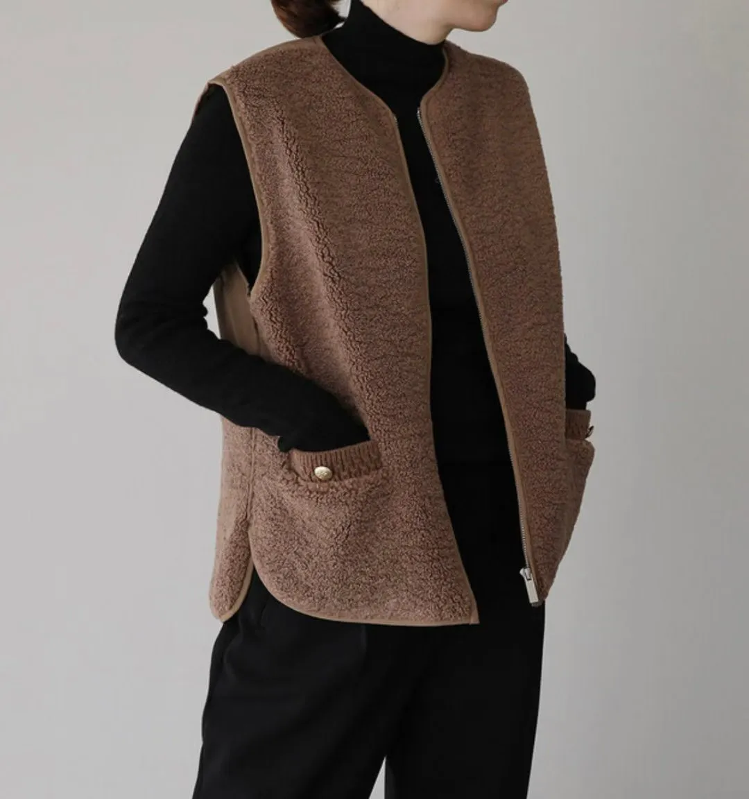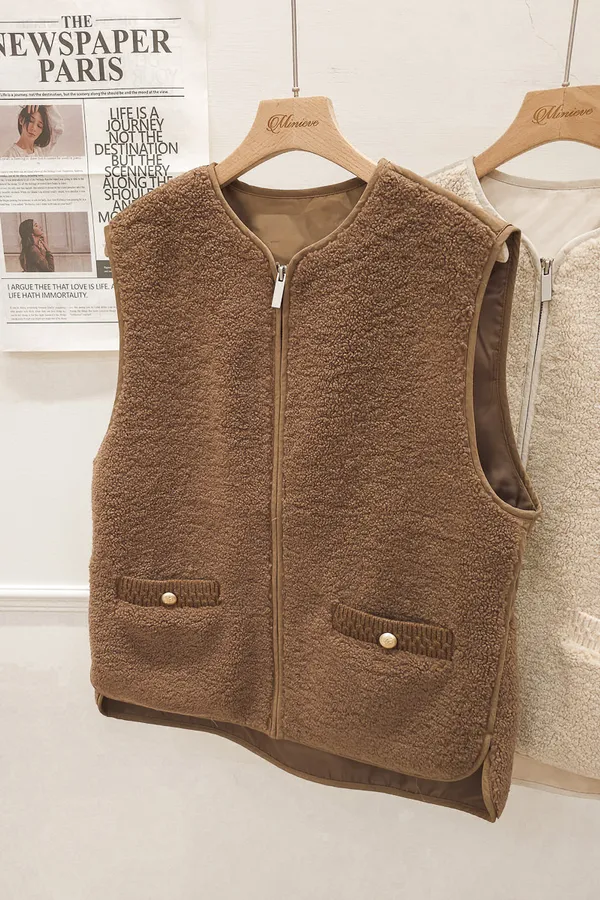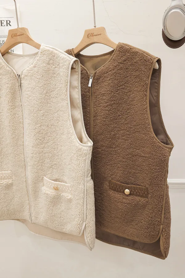 73.正韓 拼接口袋毛呢鋪棉背心 2色