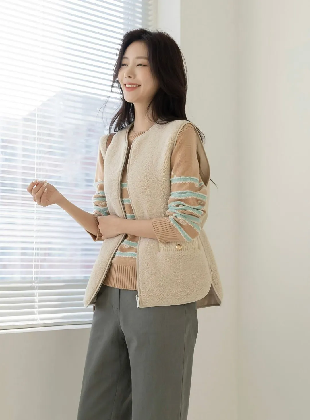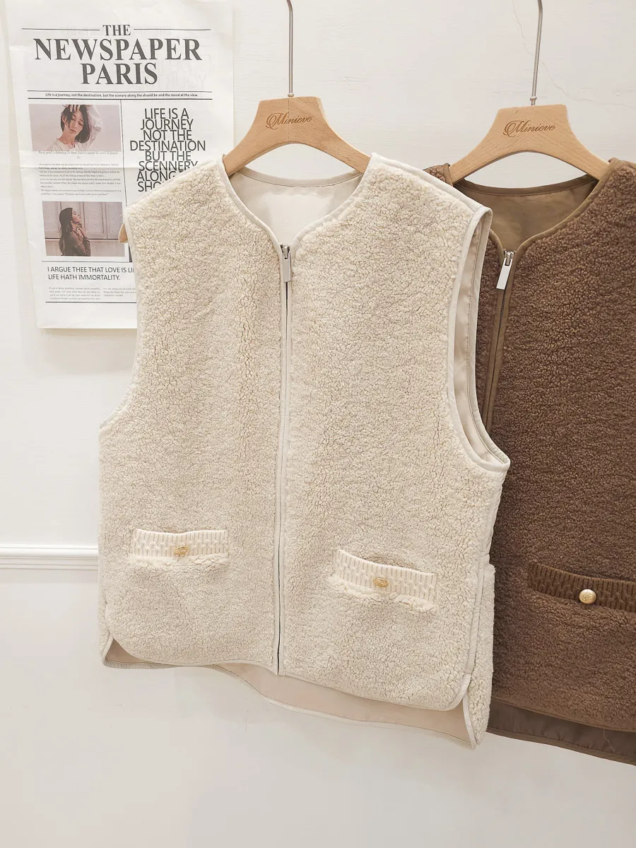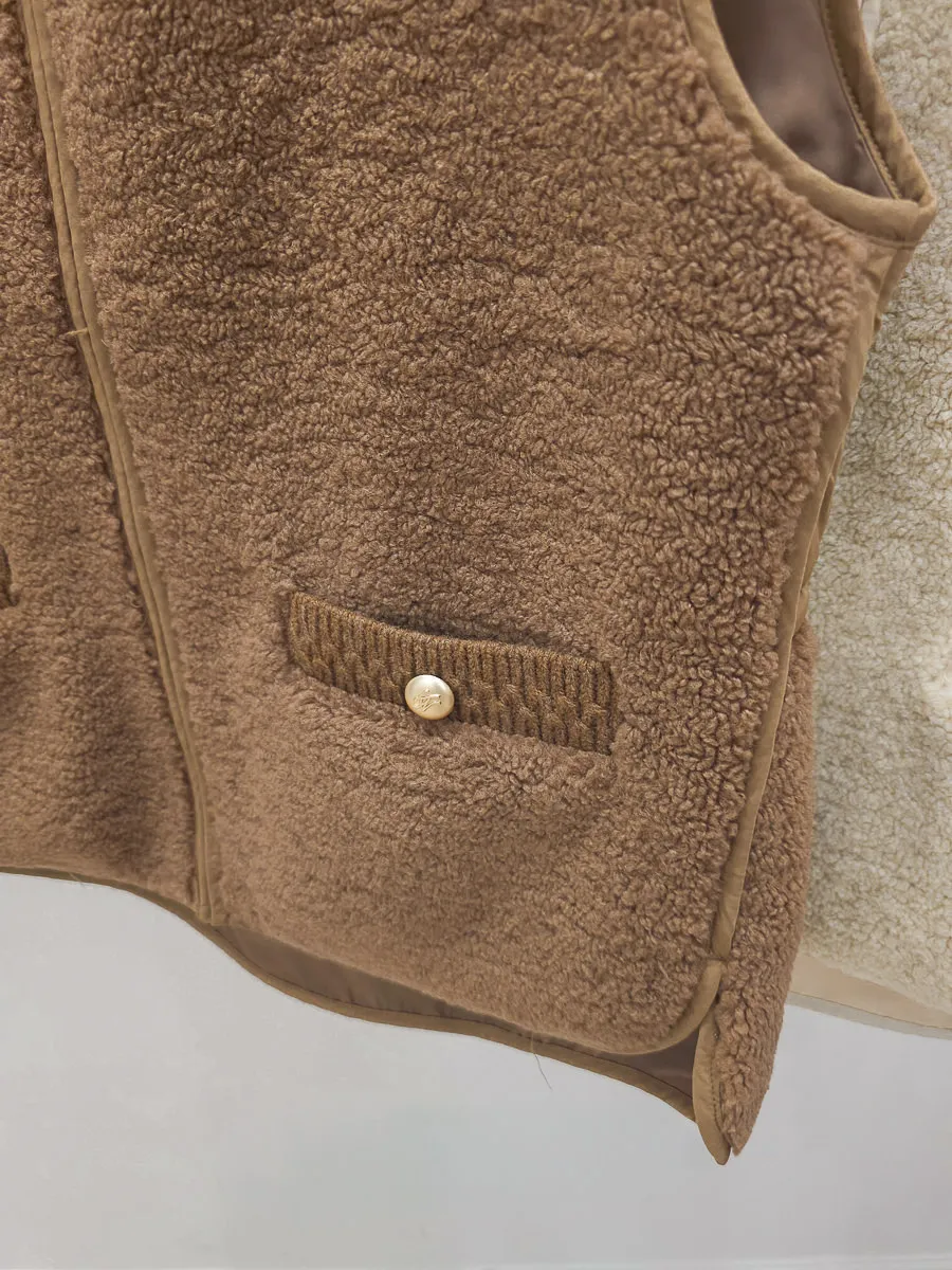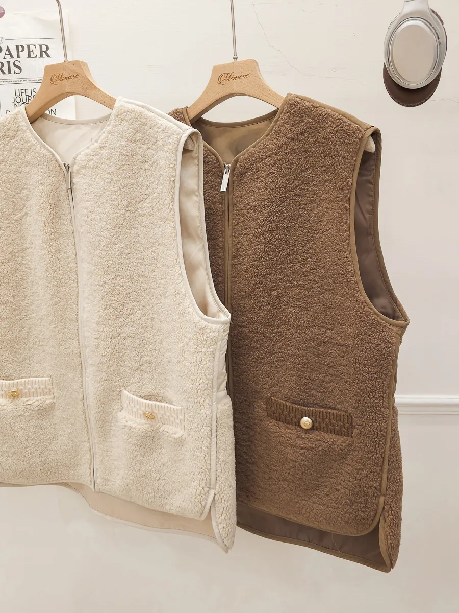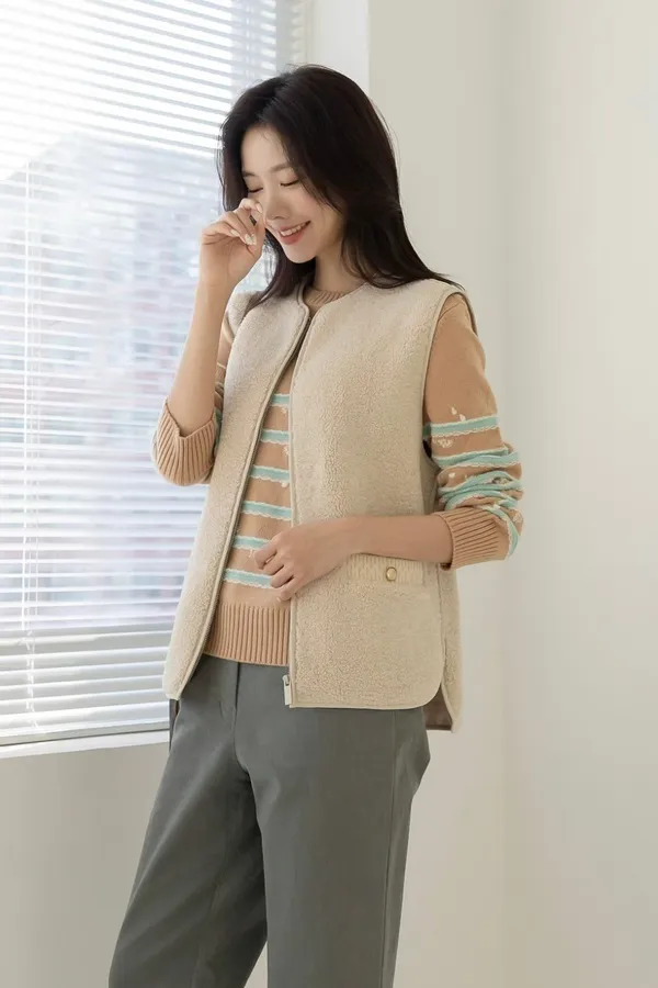 73.正韓 拼接口袋毛呢鋪棉背心 2色
