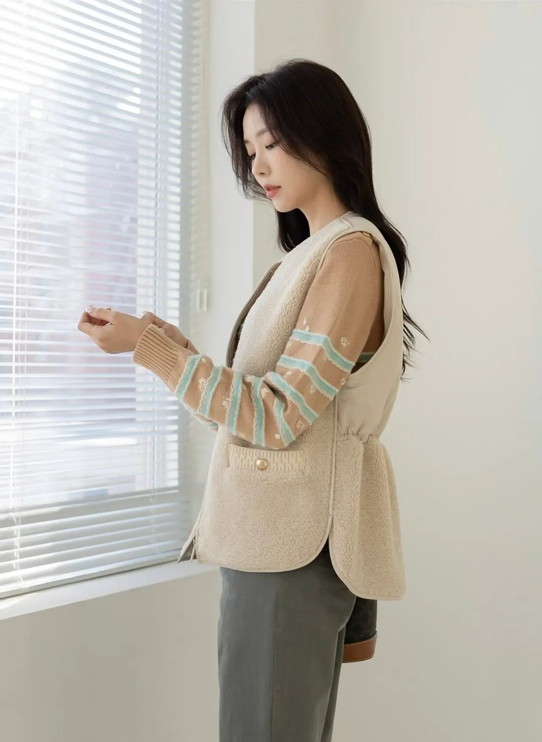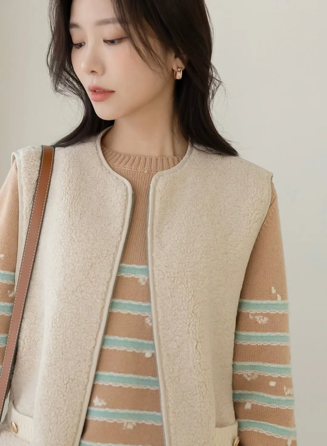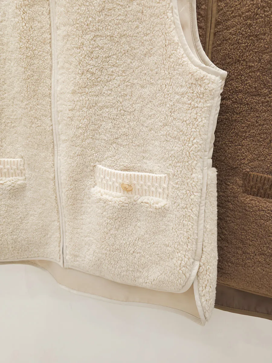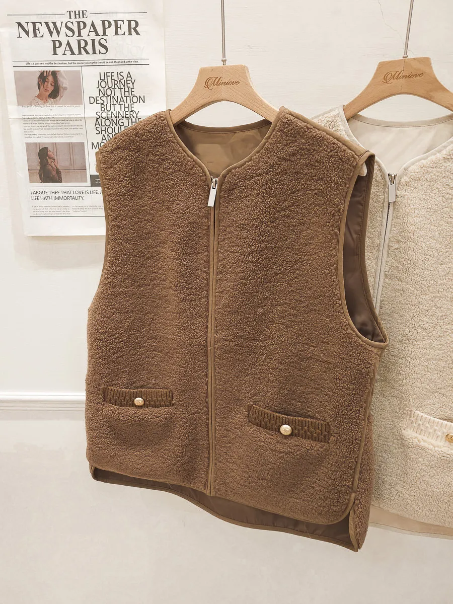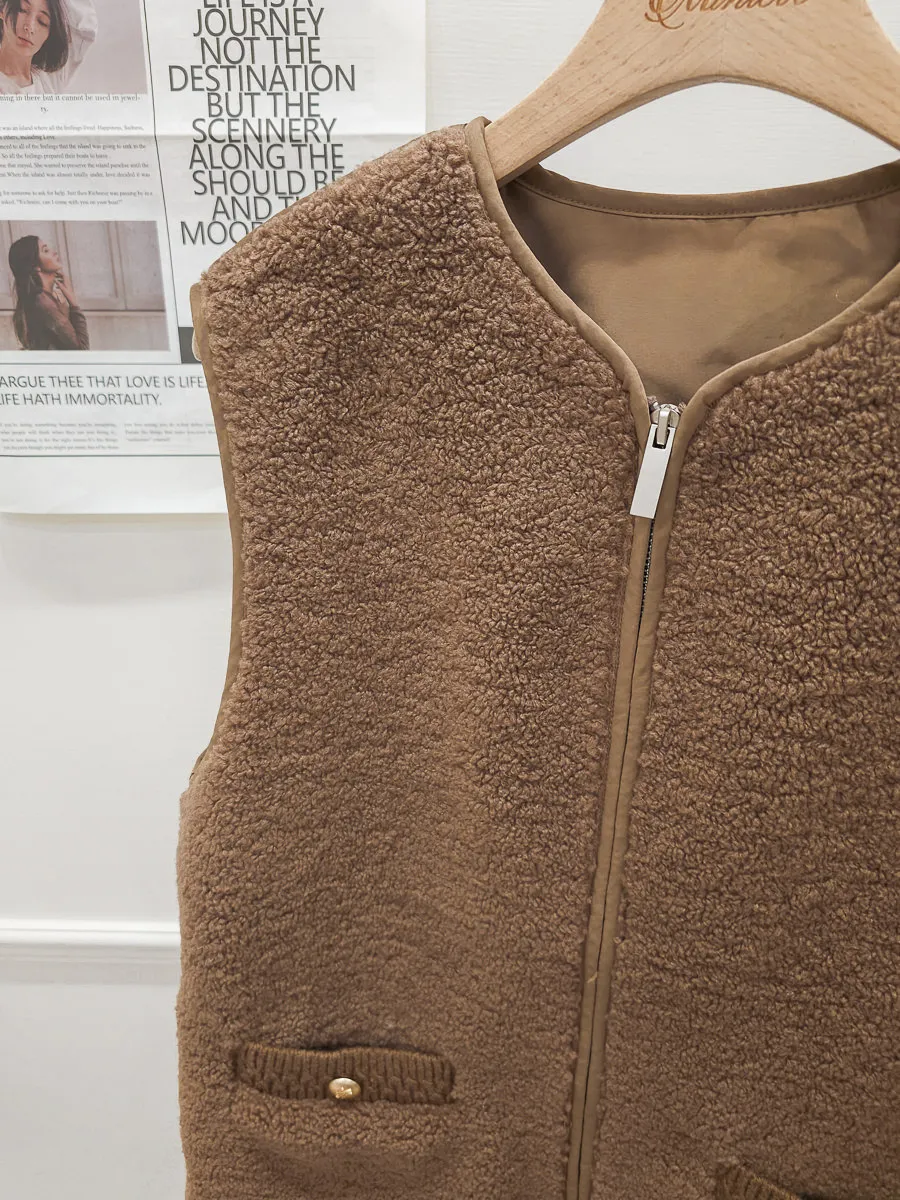 73.正韓 拼接口袋毛呢鋪棉背心 2色