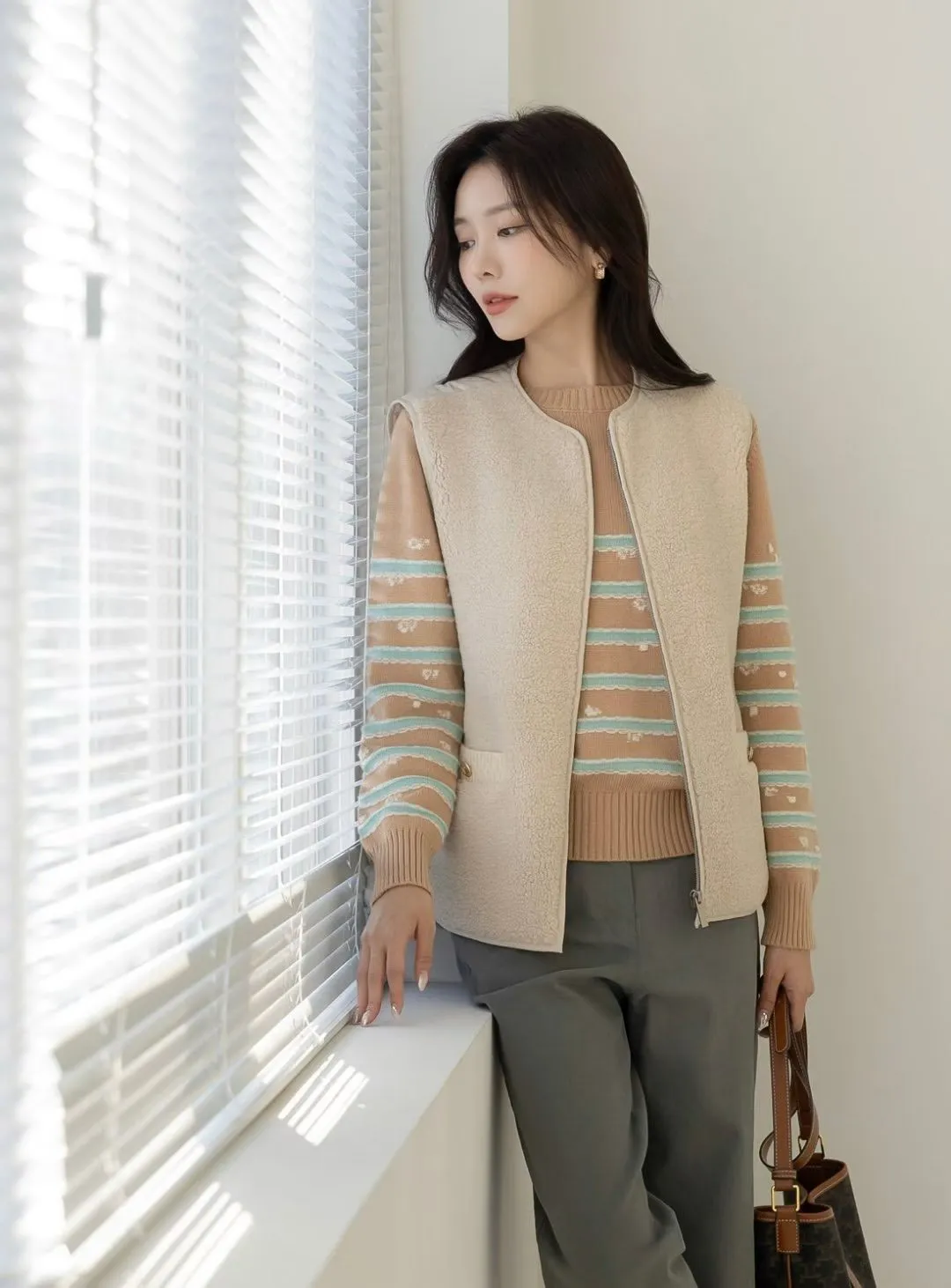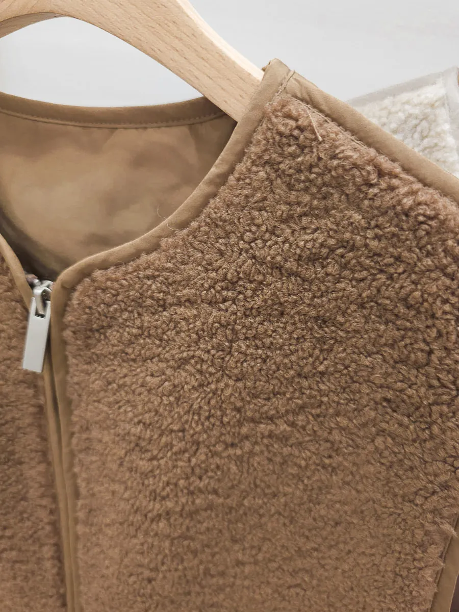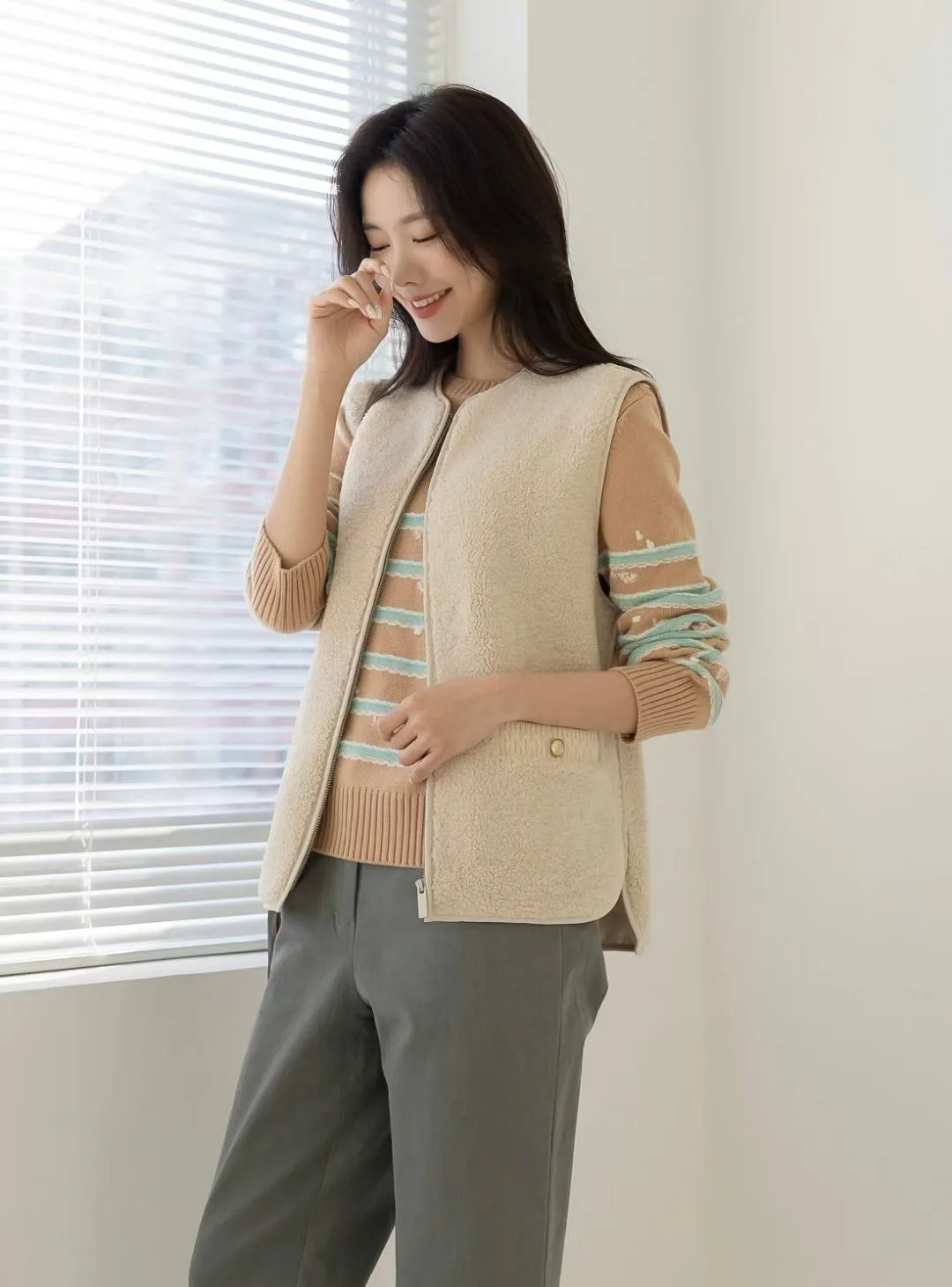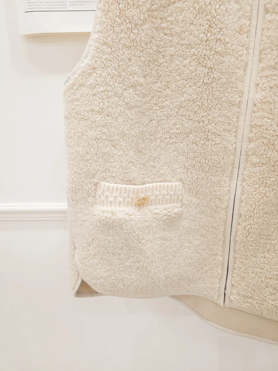 73.正韓 拼接口袋毛呢鋪棉背心 2色