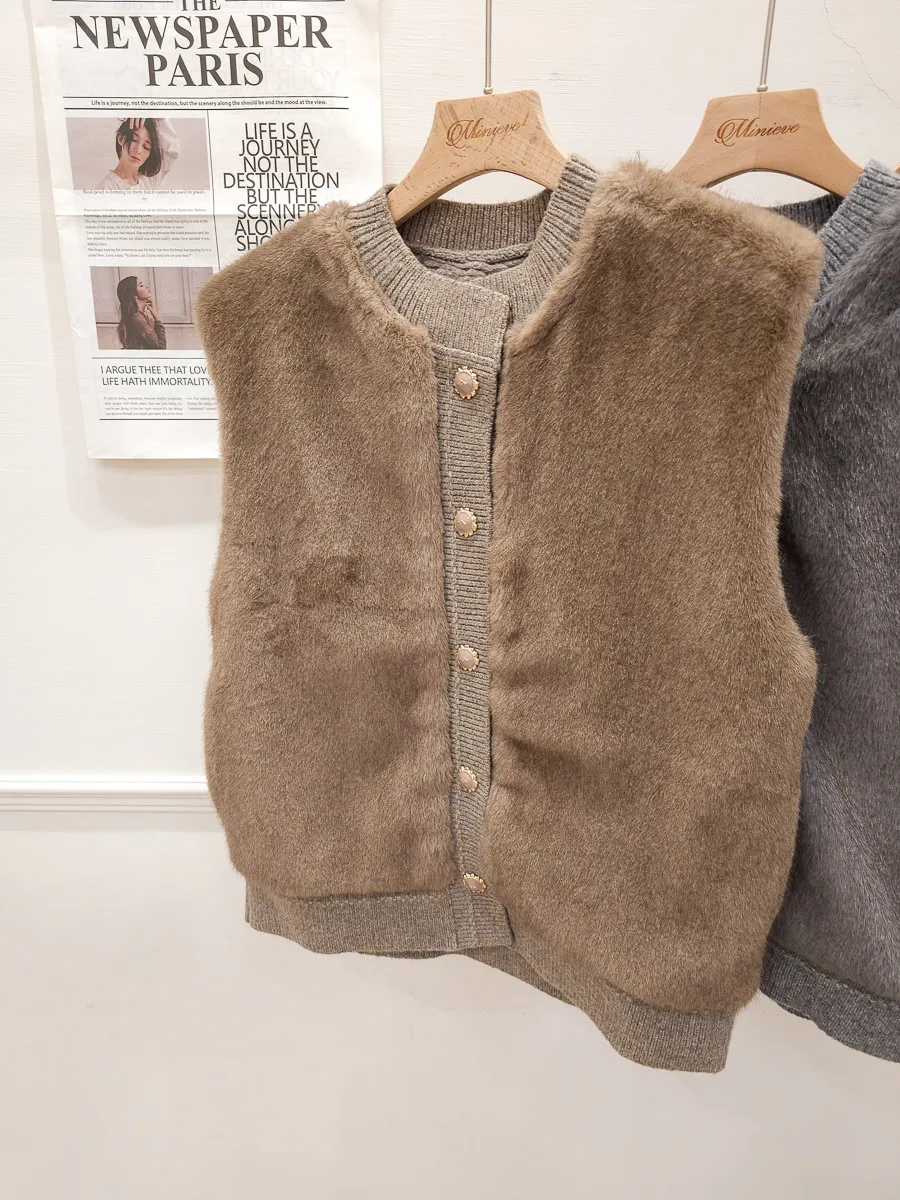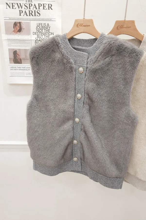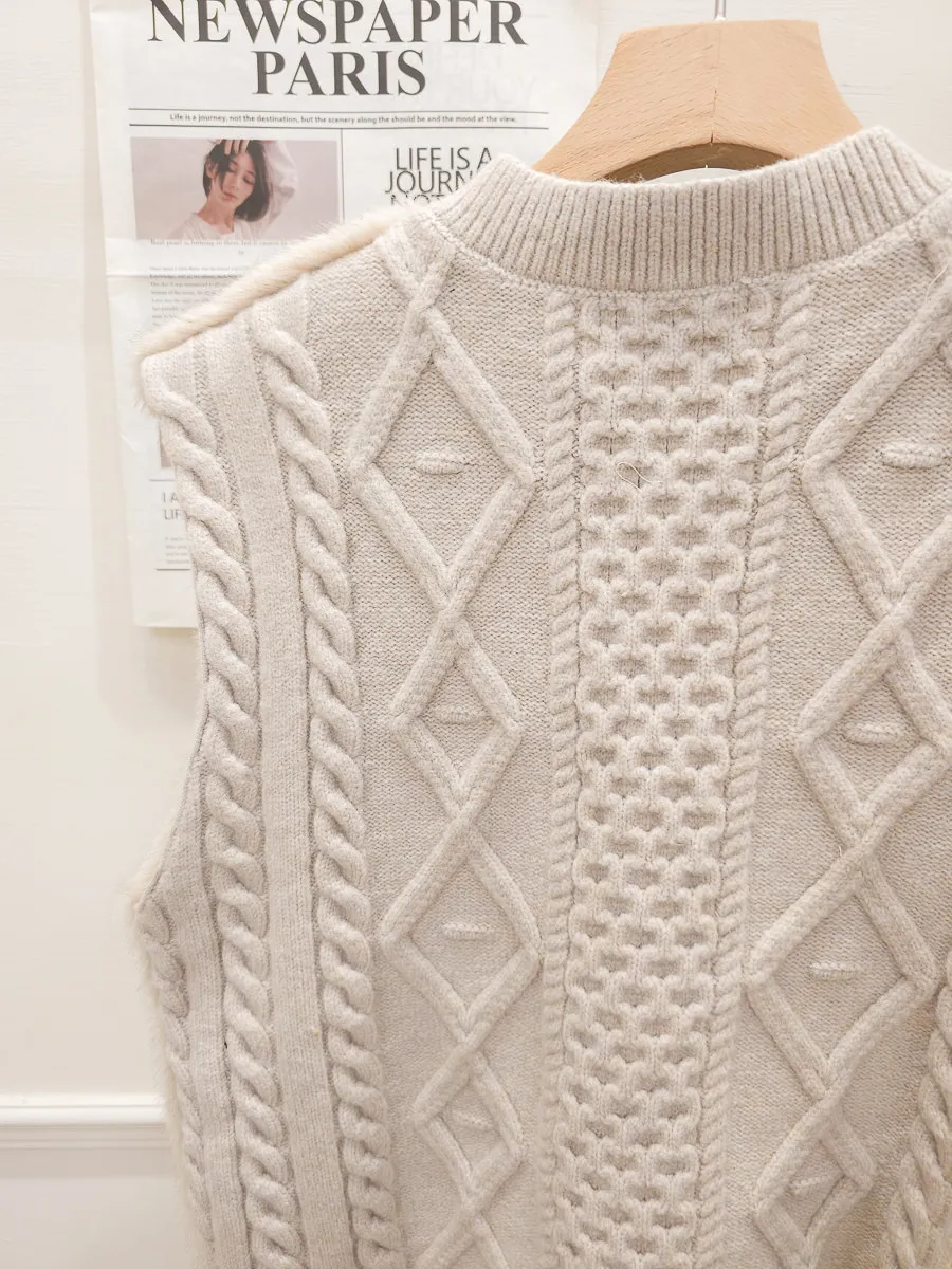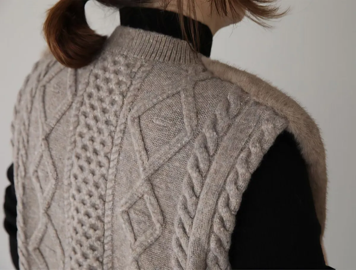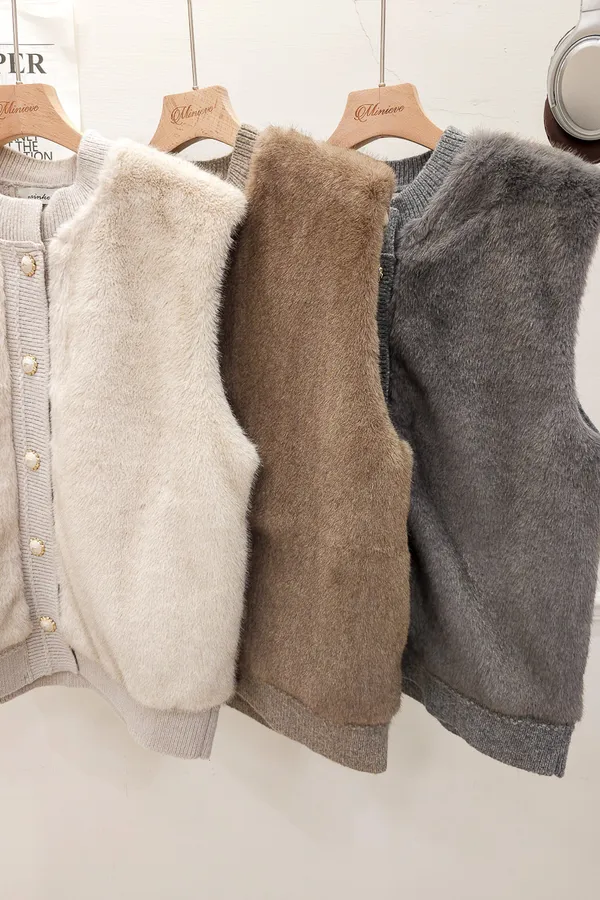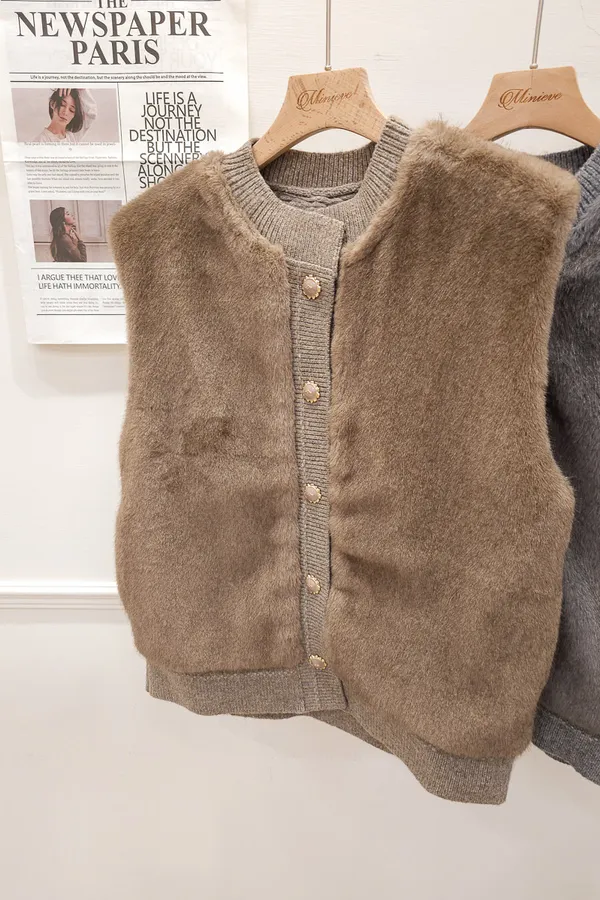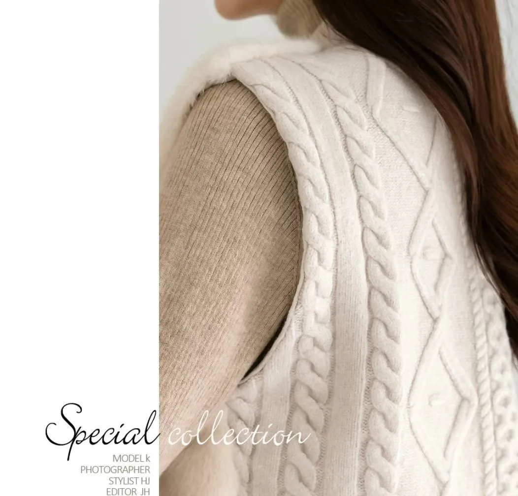 74.正韓 仿皮草立體編織針織背心 4色
