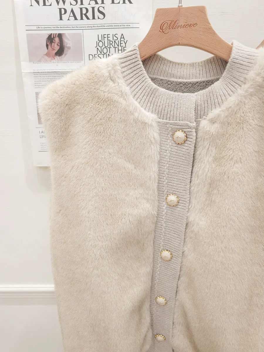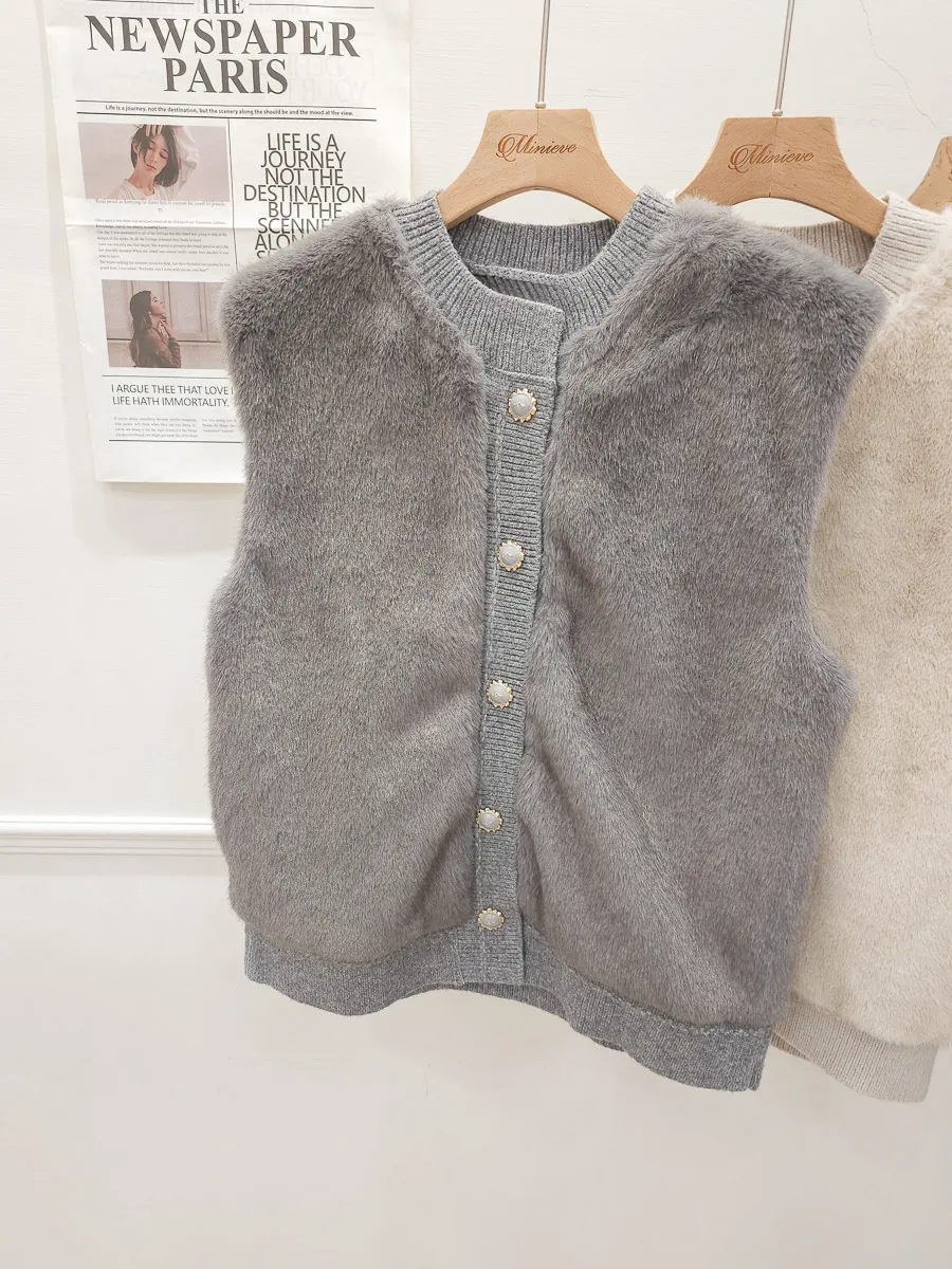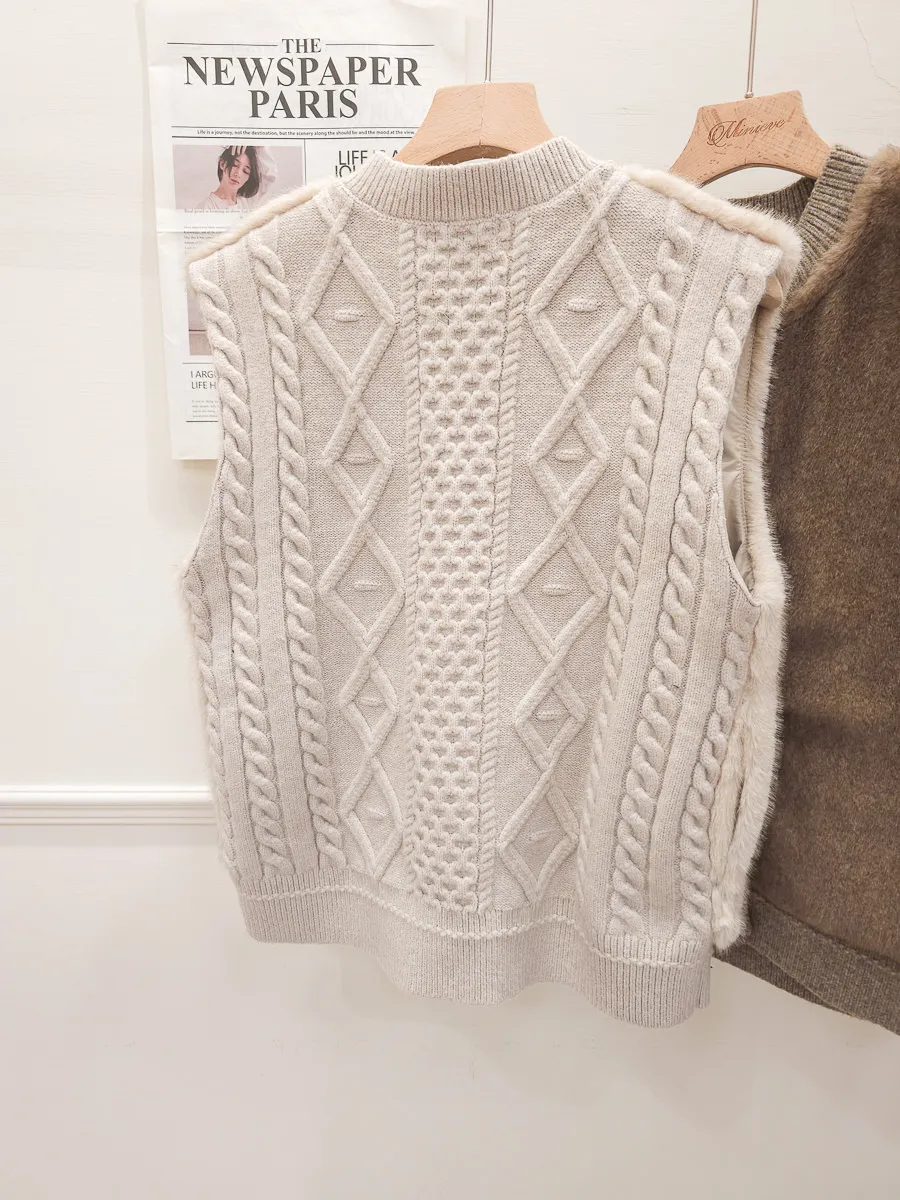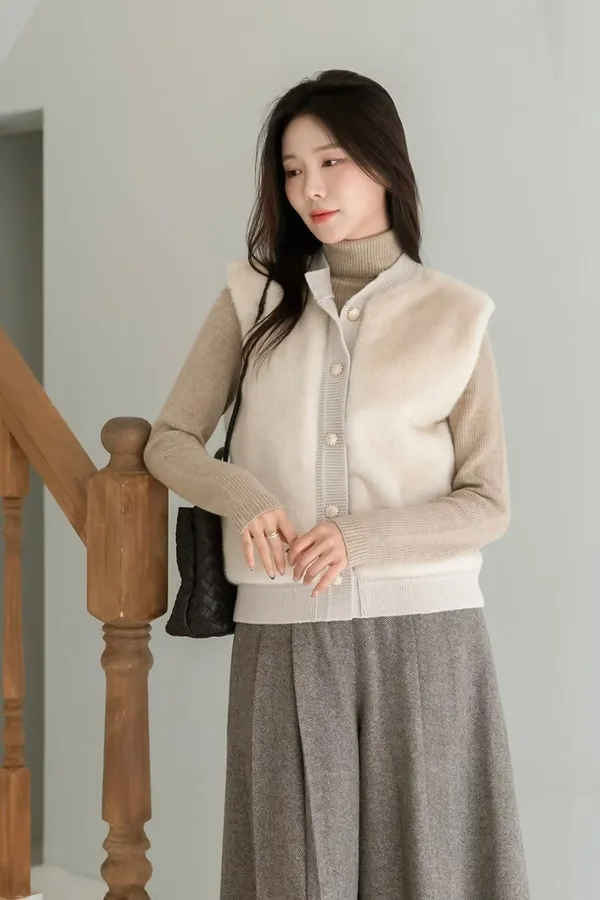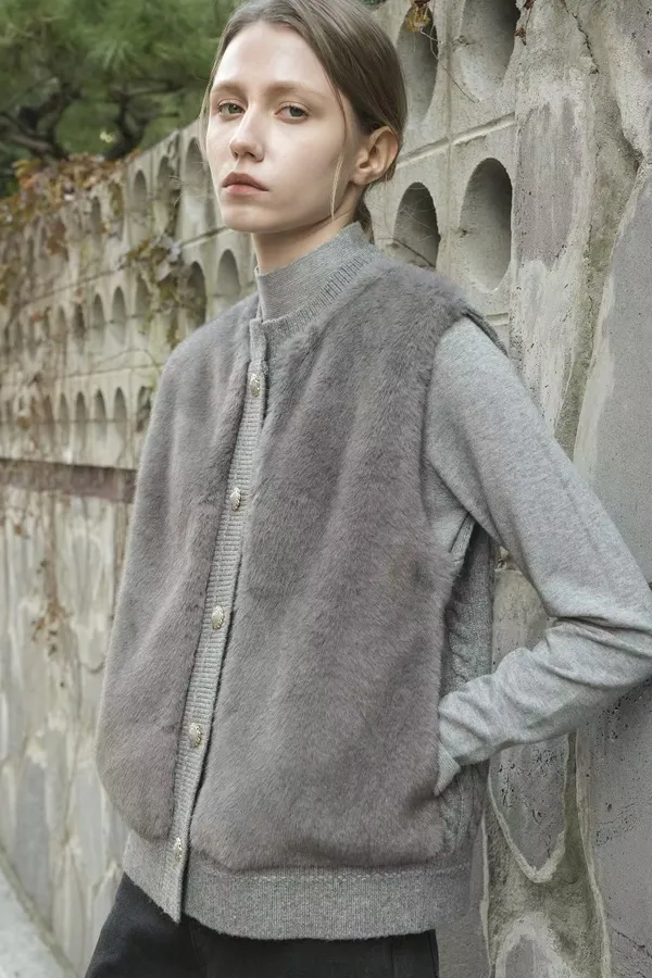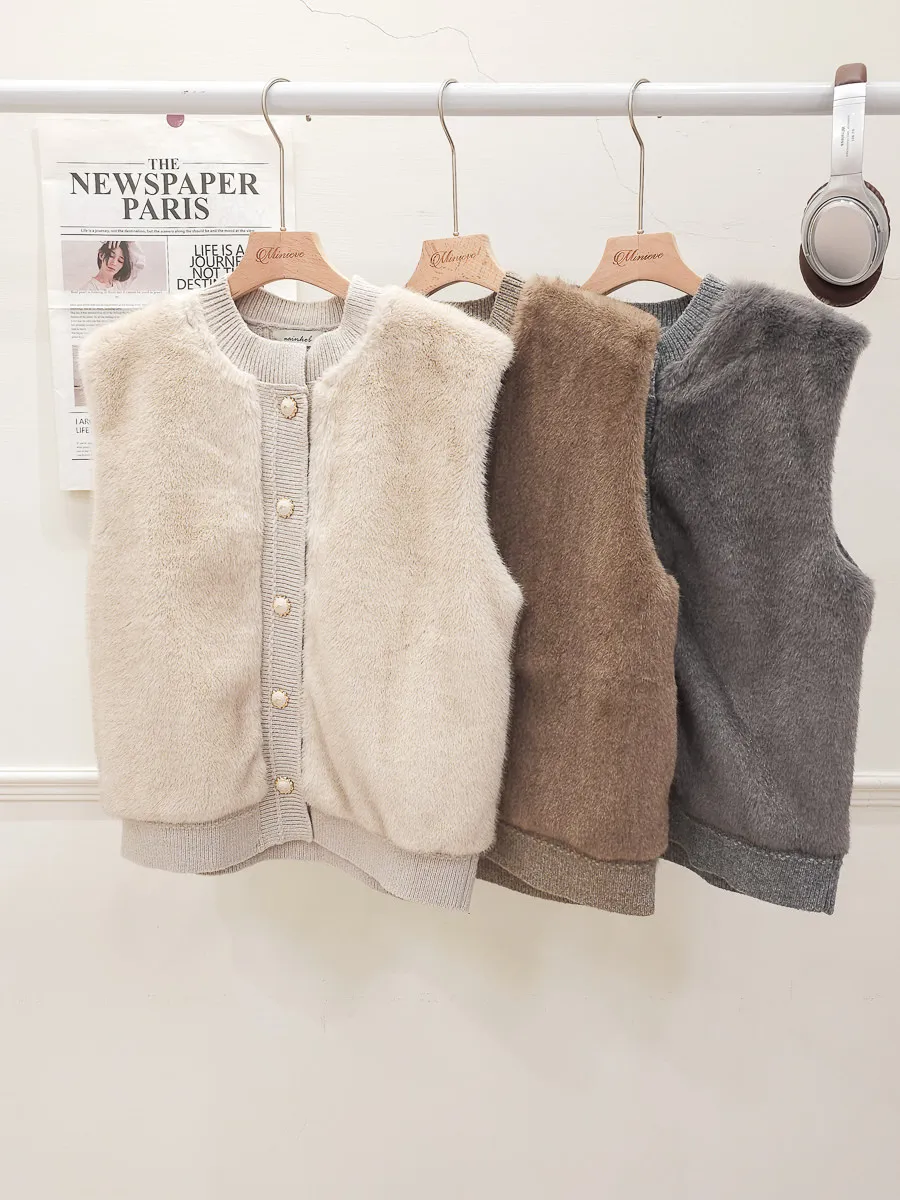 74.正韓 仿皮草立體編織針織背心 4色