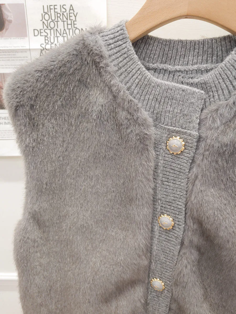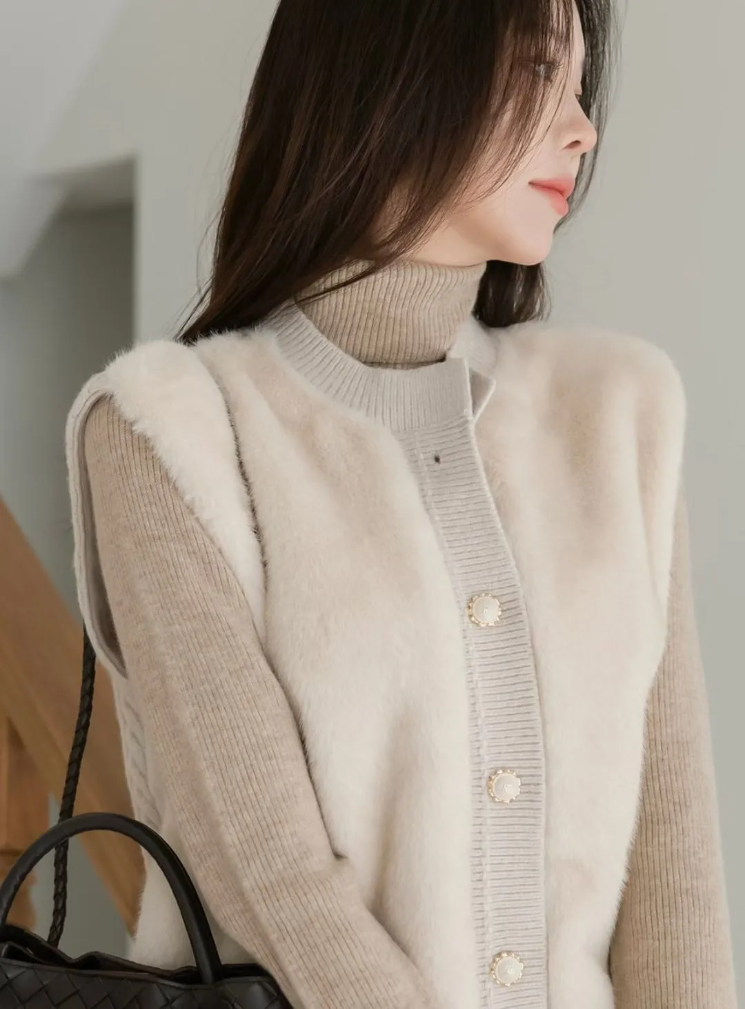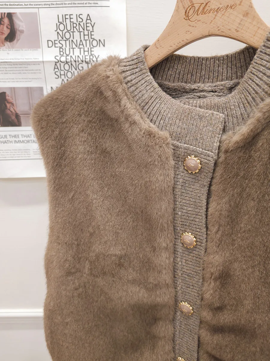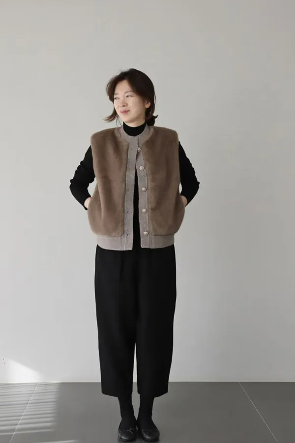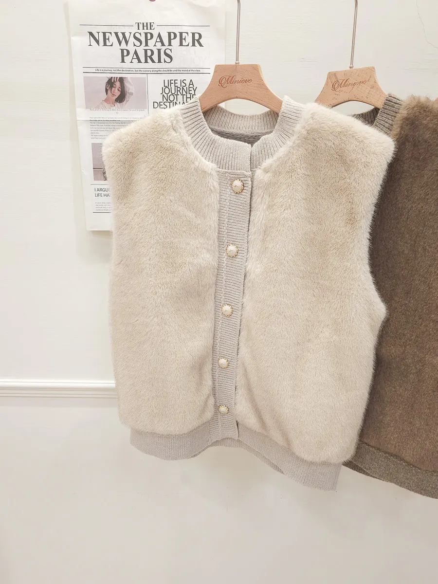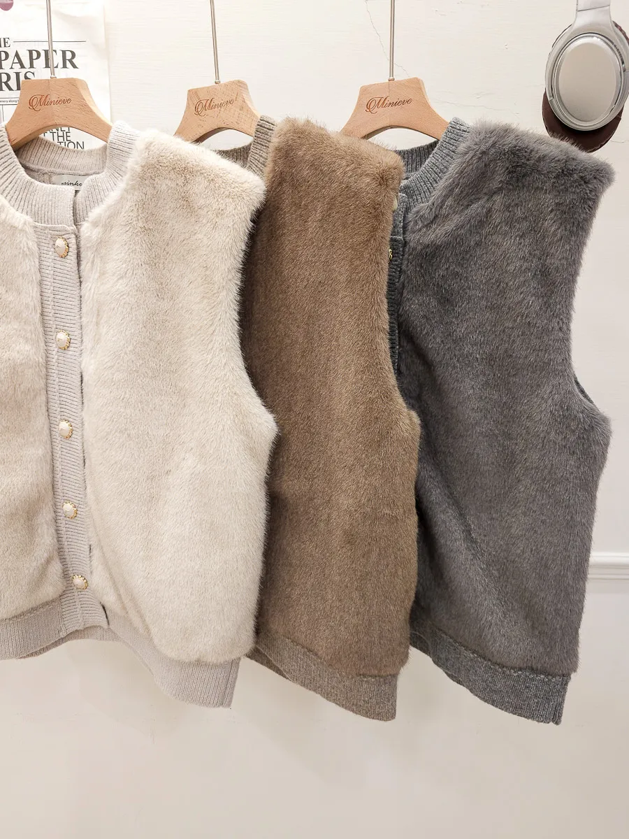 74.正韓 仿皮草立體編織針織背心 4色