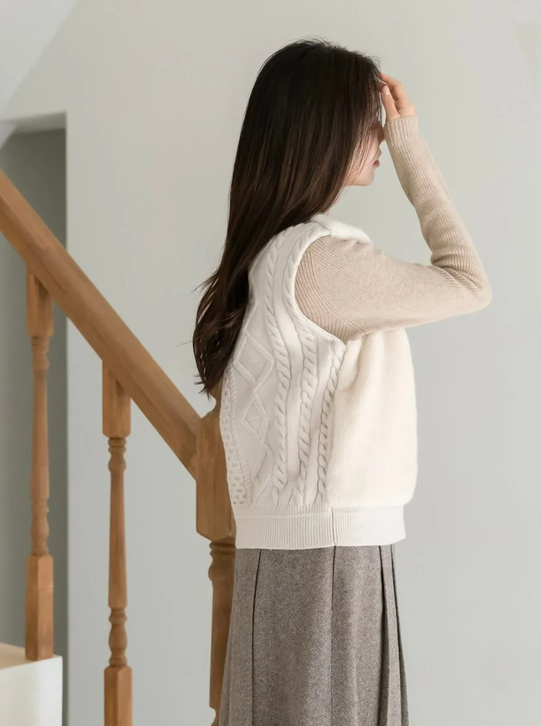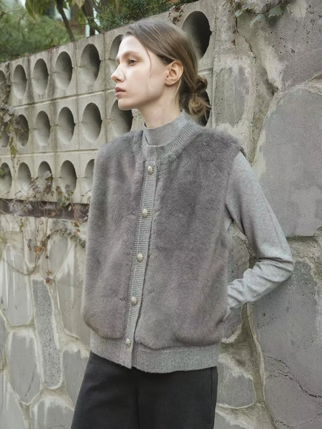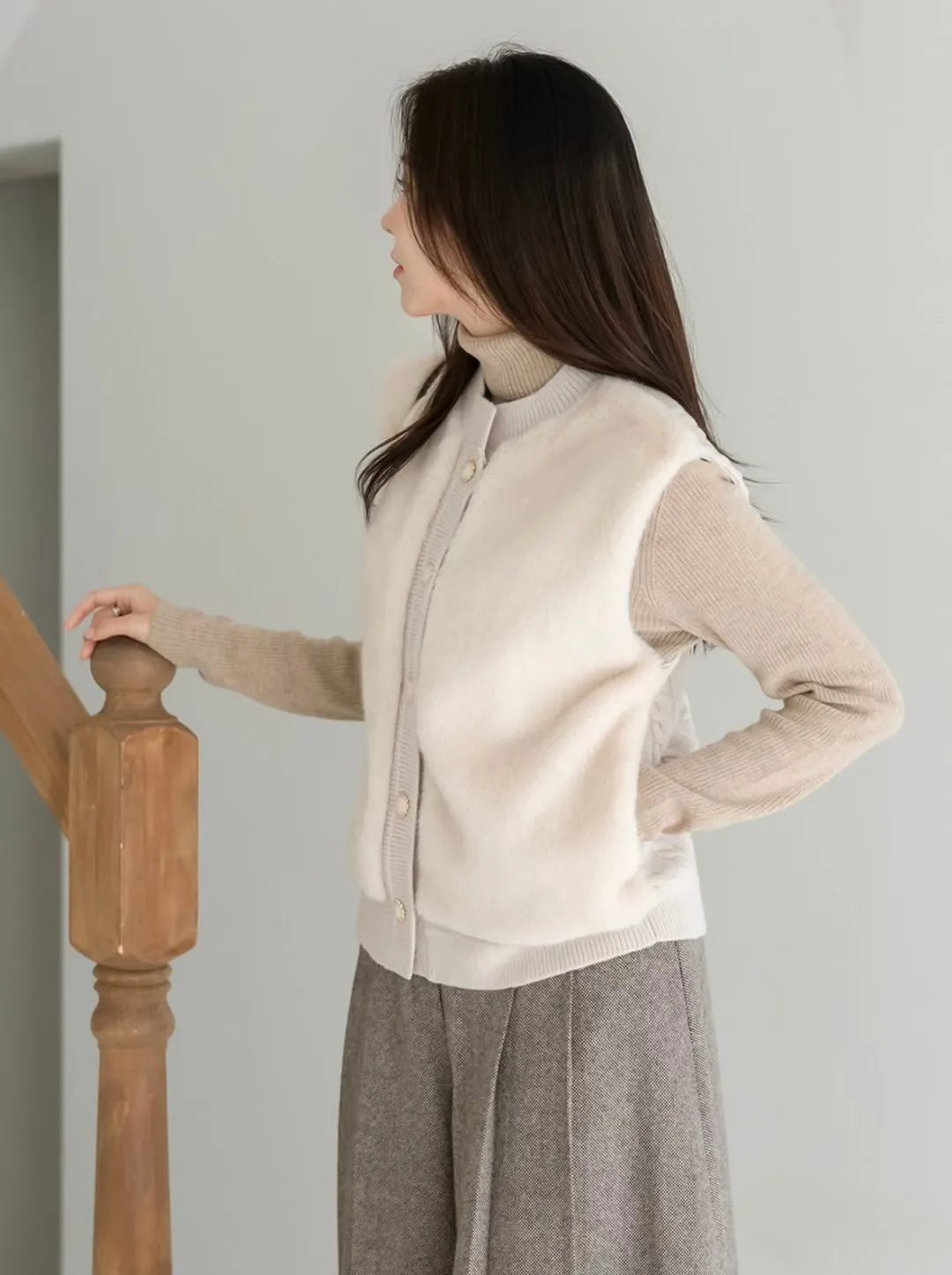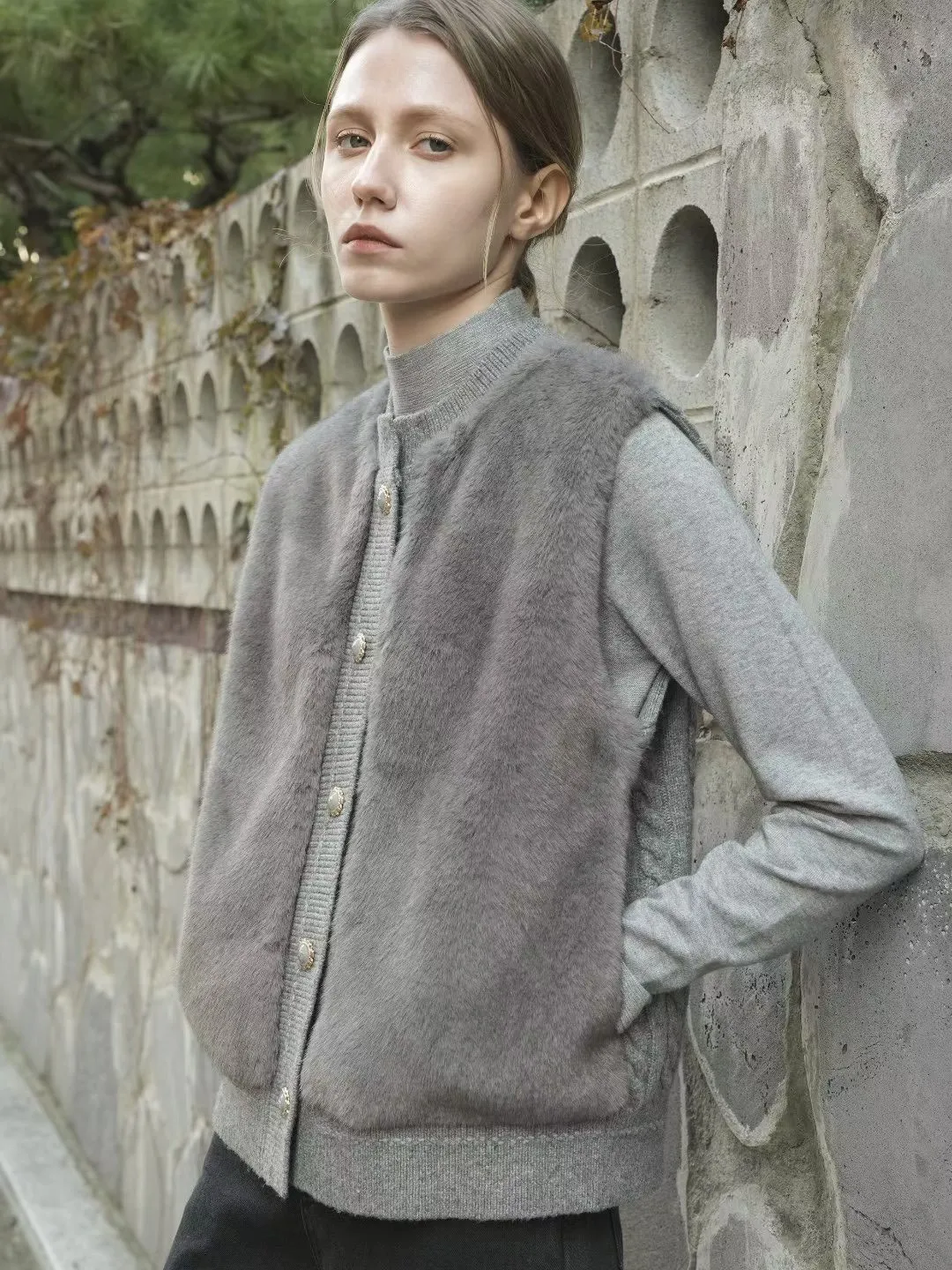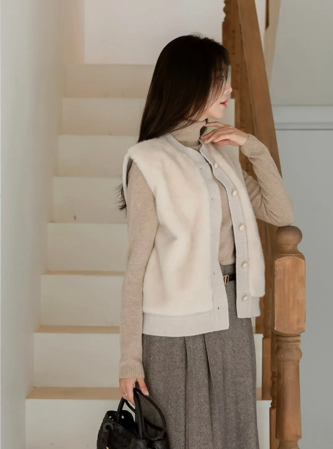74.正韓 仿皮草立體編織針織背心 4色