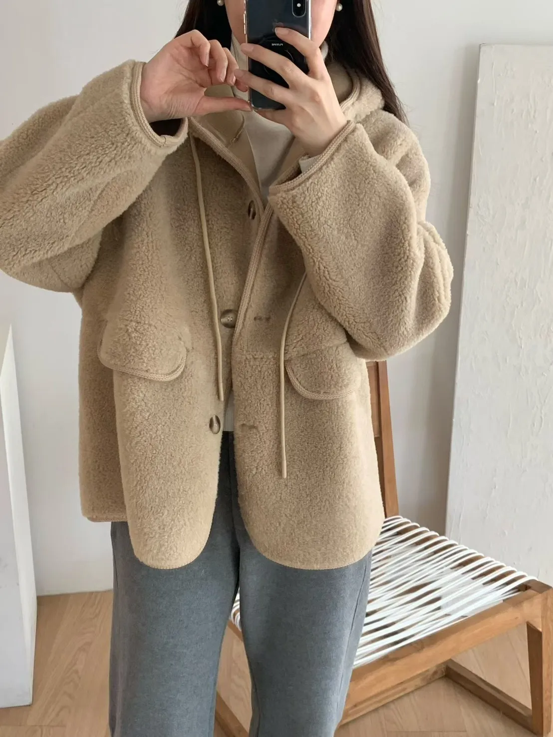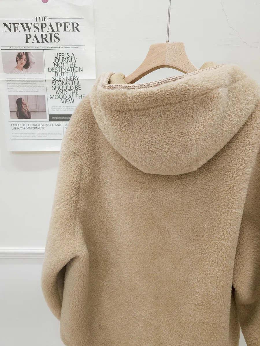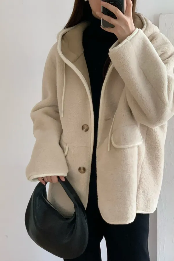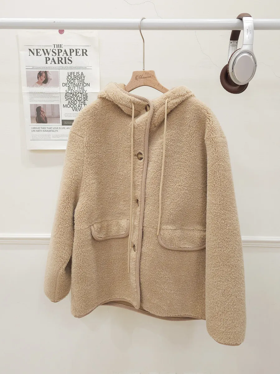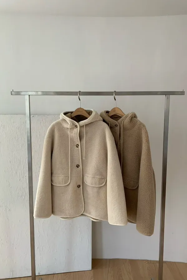 77.正韓 連帽開釦羊羔毛外套 2色