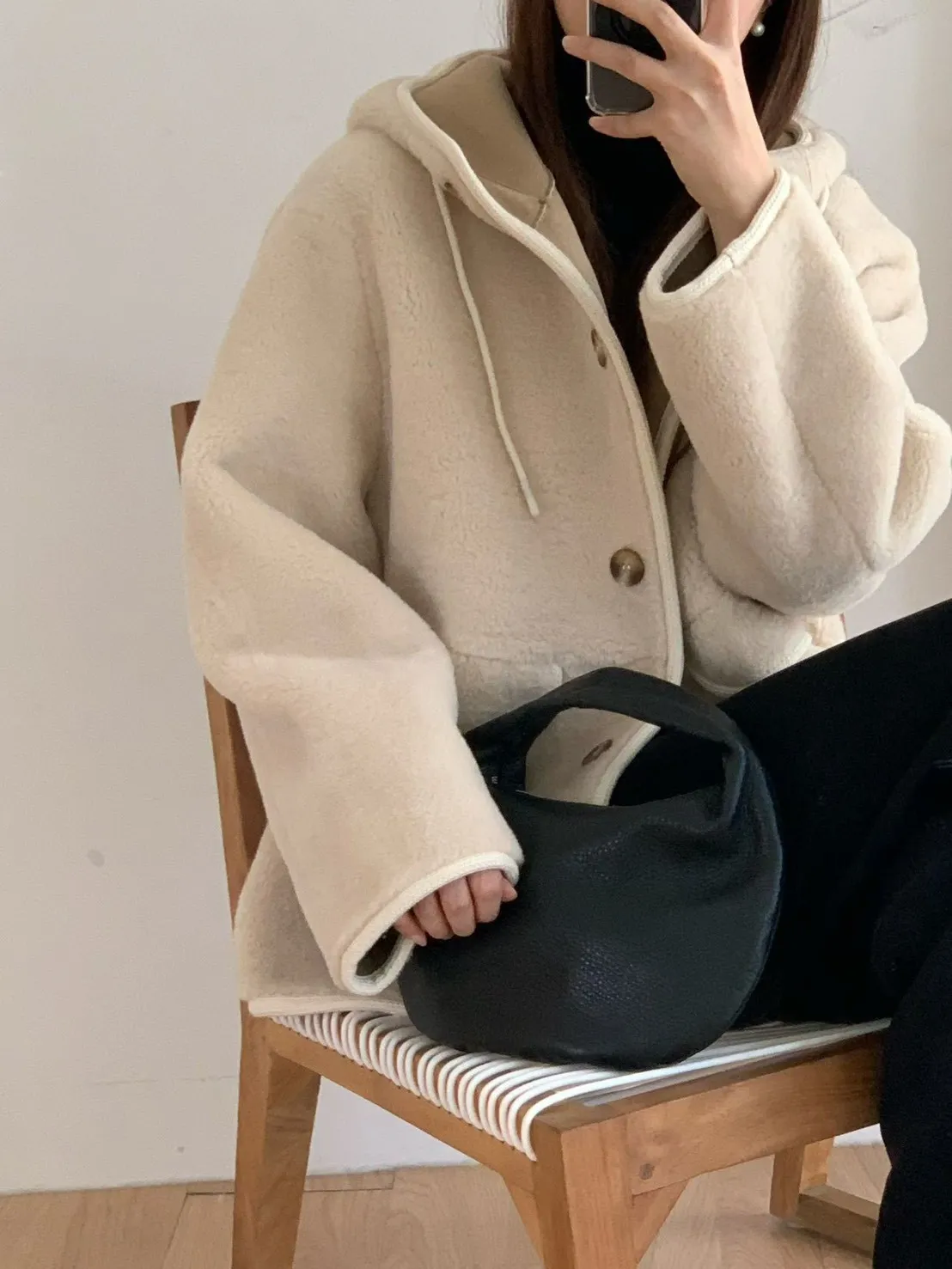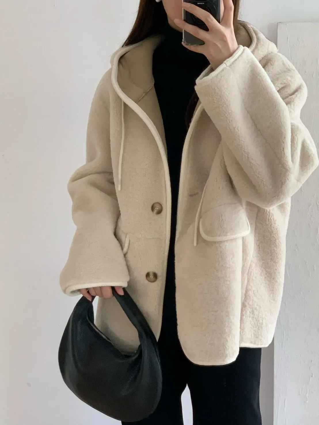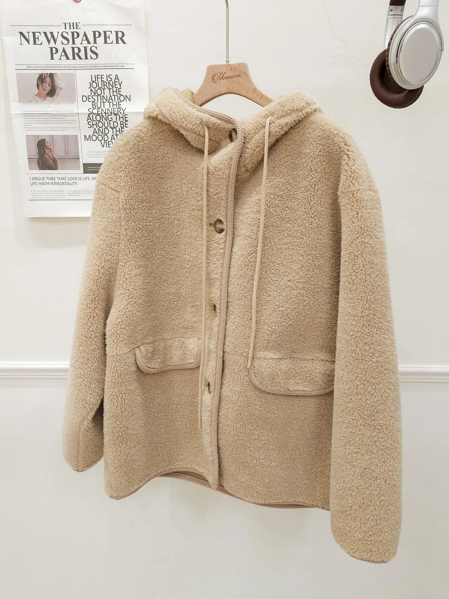 77.正韓 連帽開釦羊羔毛外套 2色