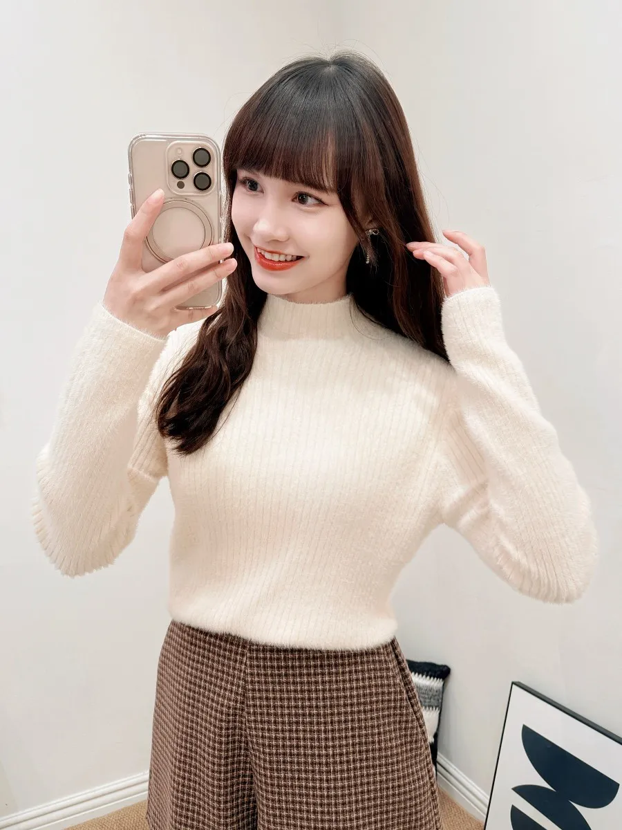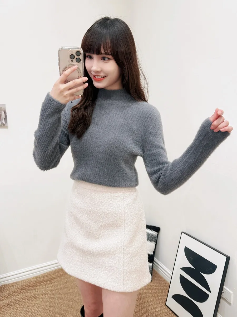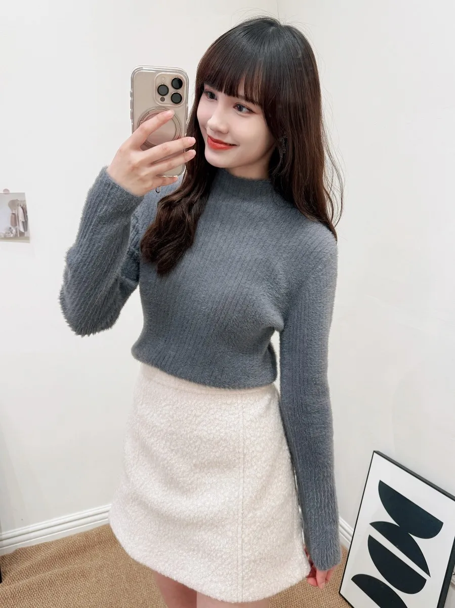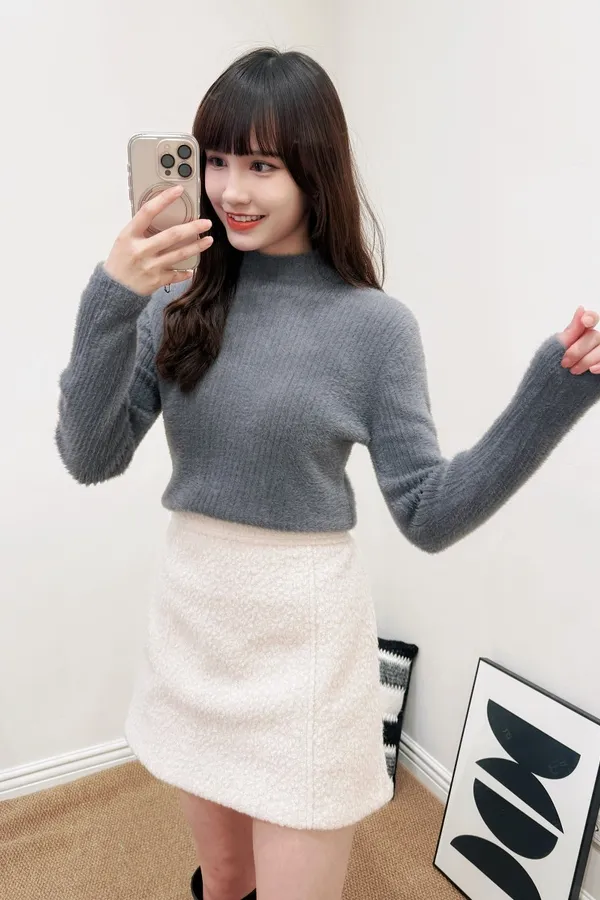 正韓 保暖毛茸小立領上衣 4色