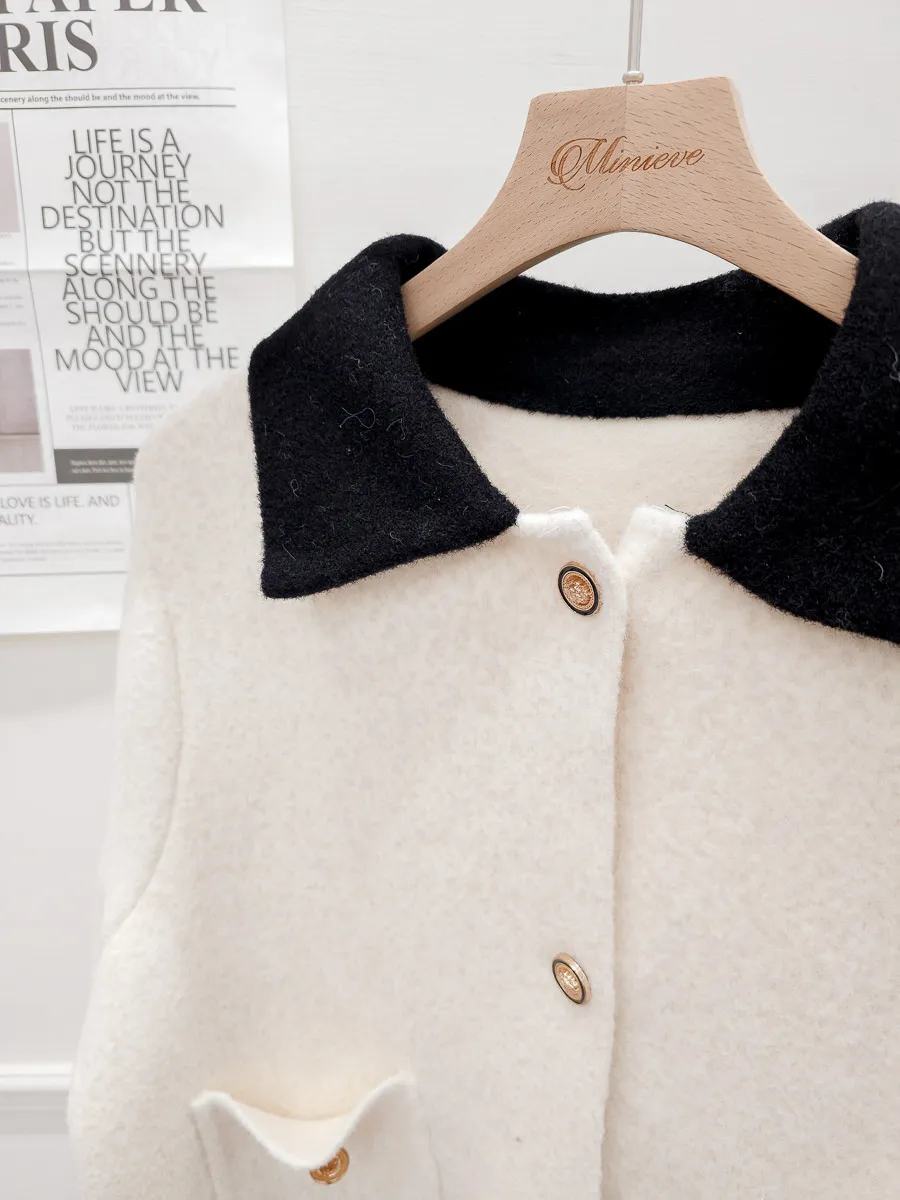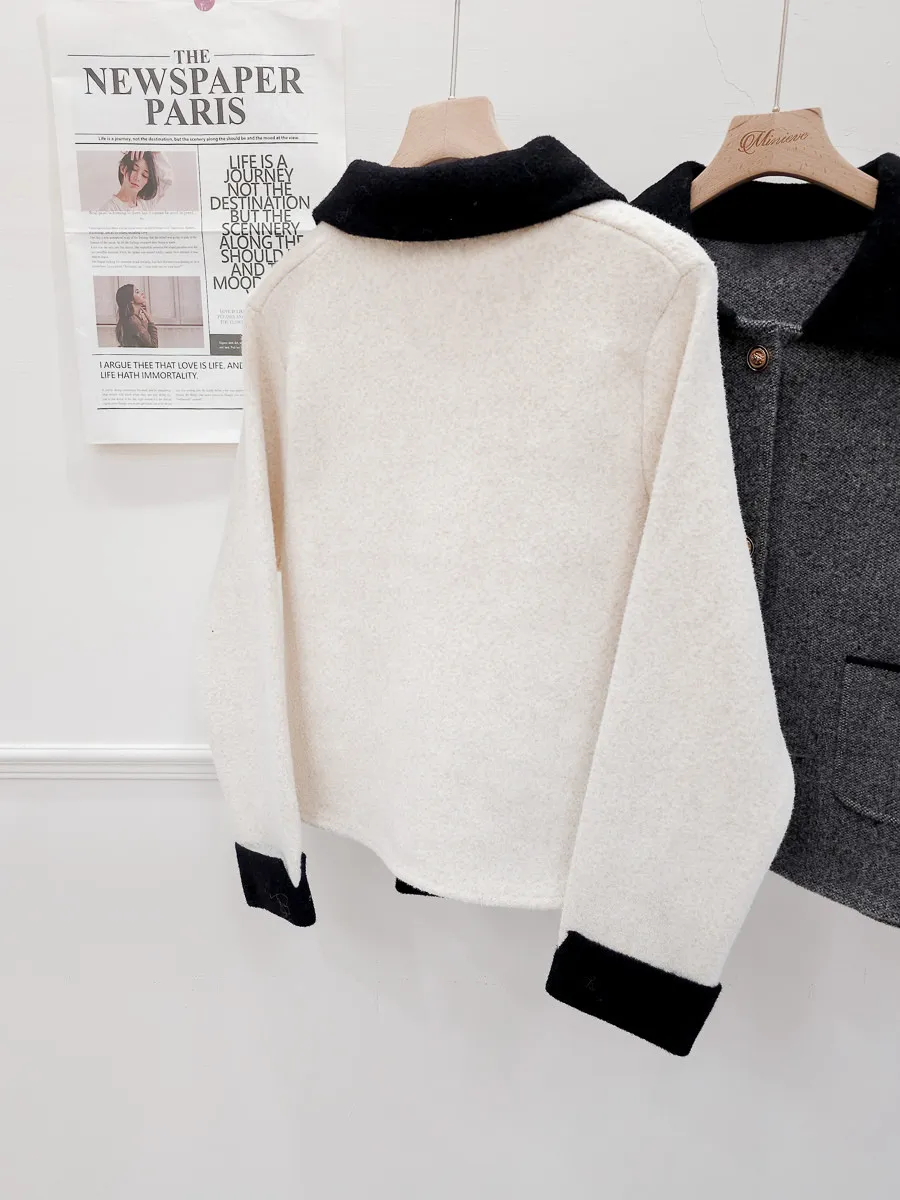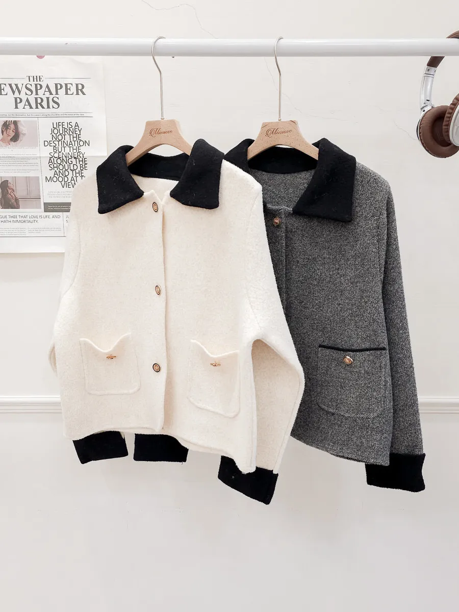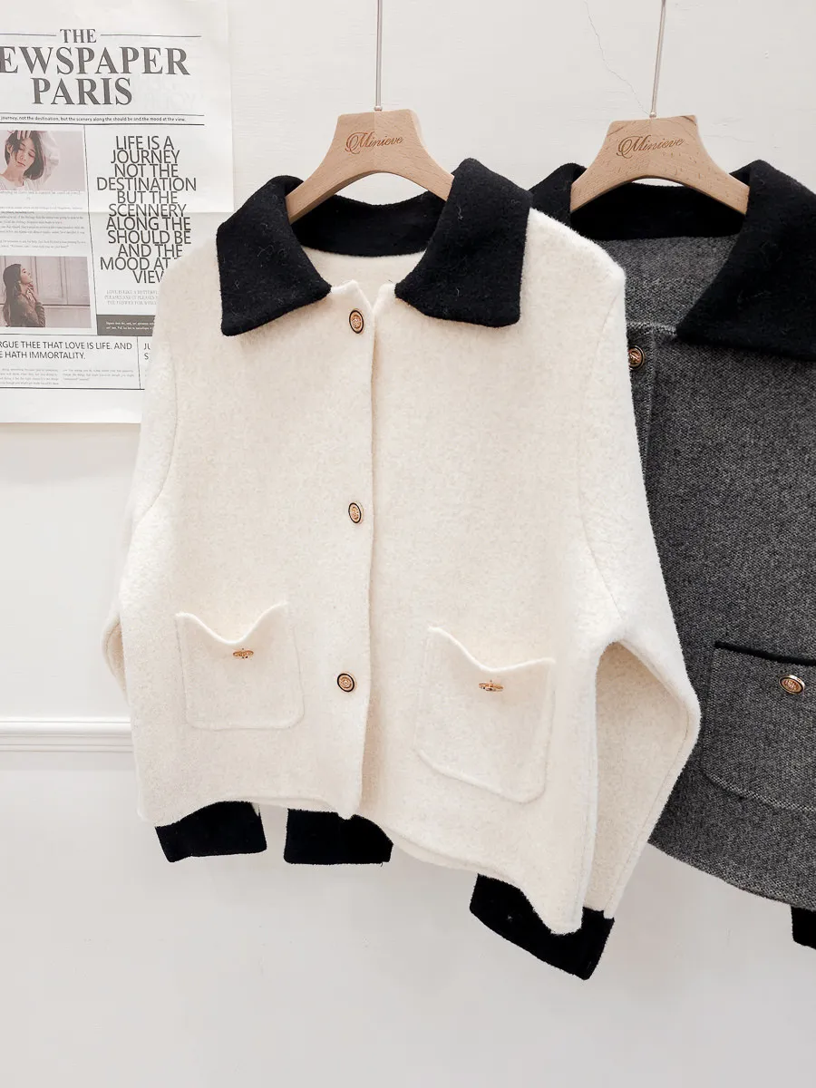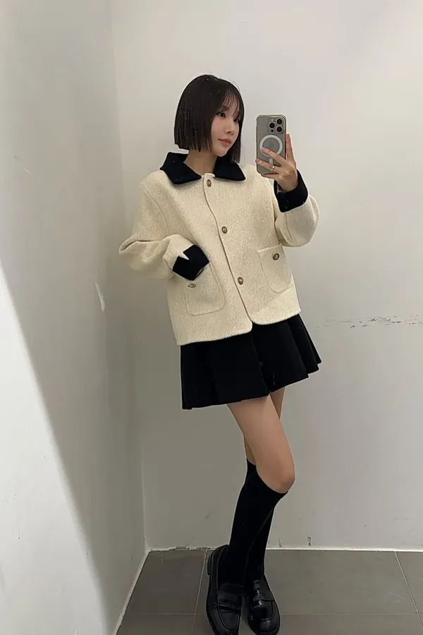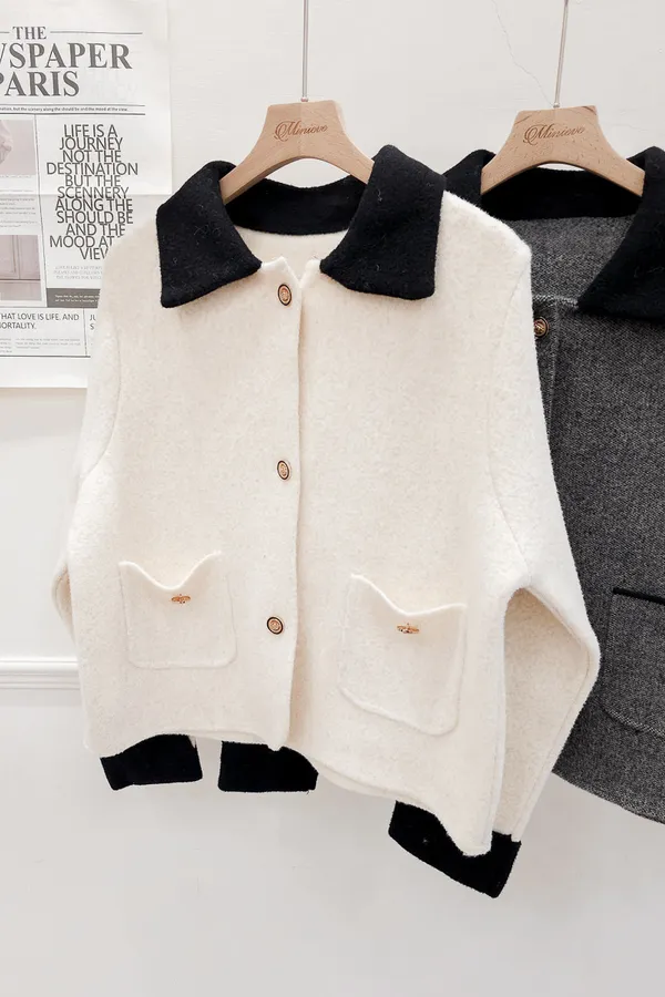 87.正韓 撞色領口袋毛呢外套上衣 2色