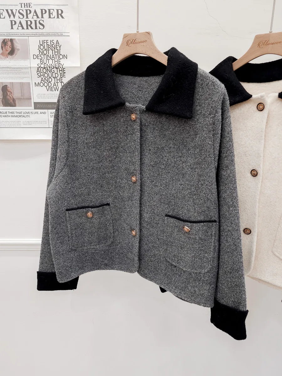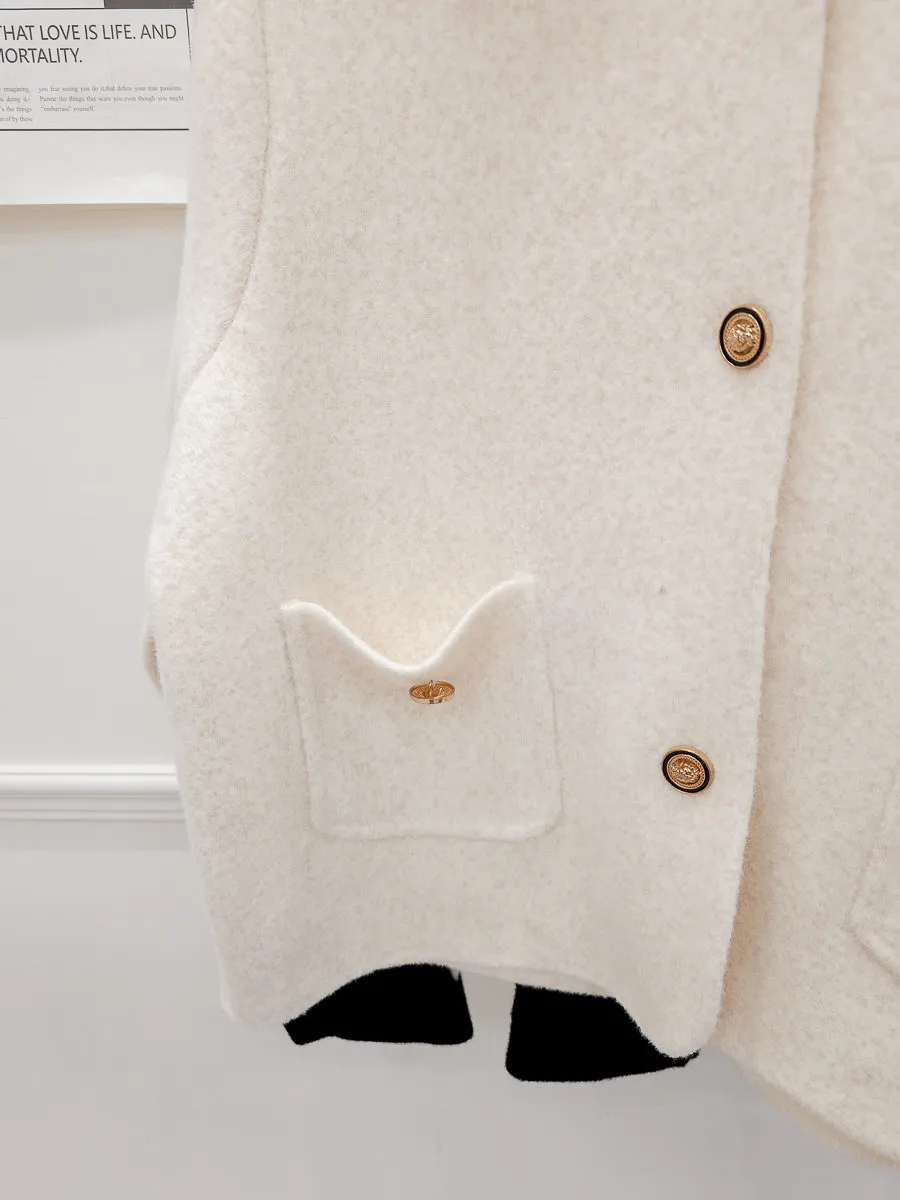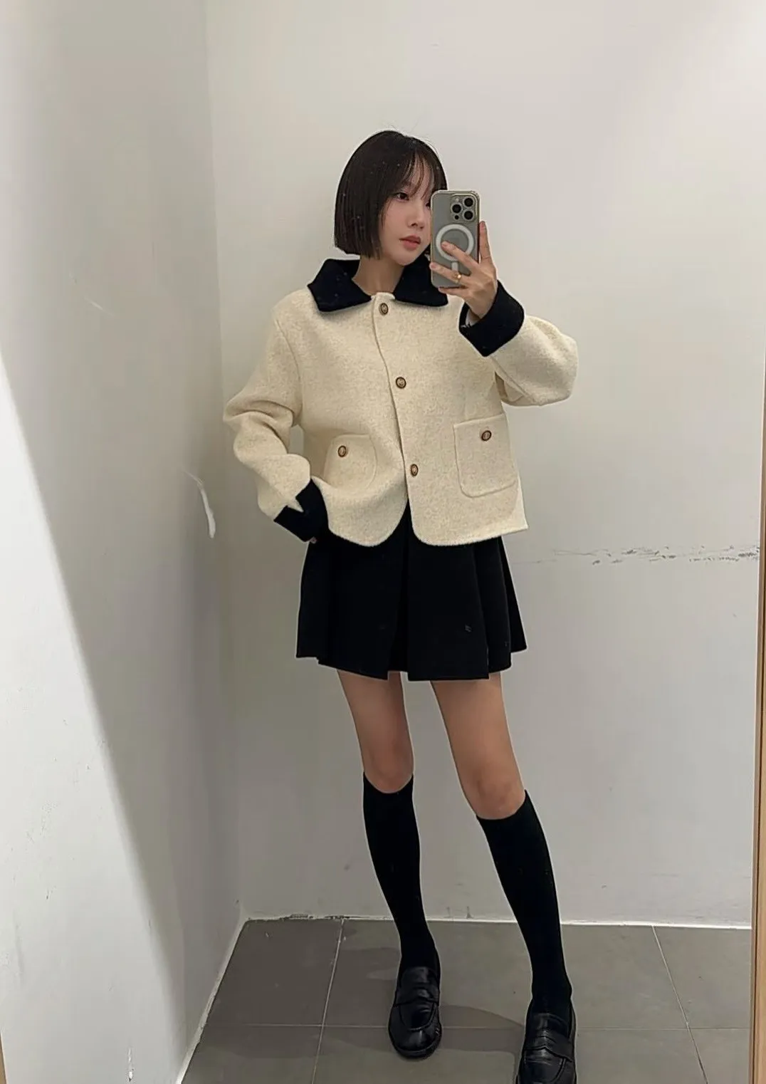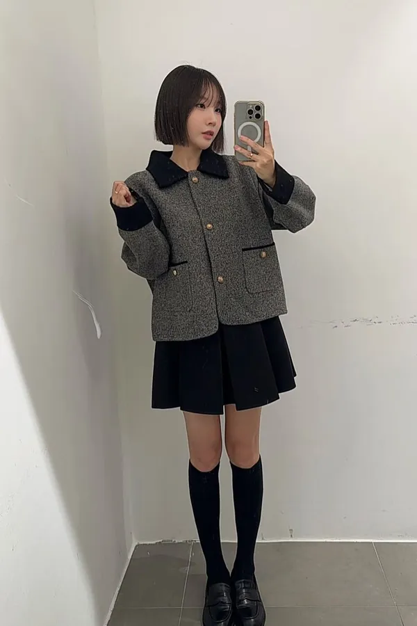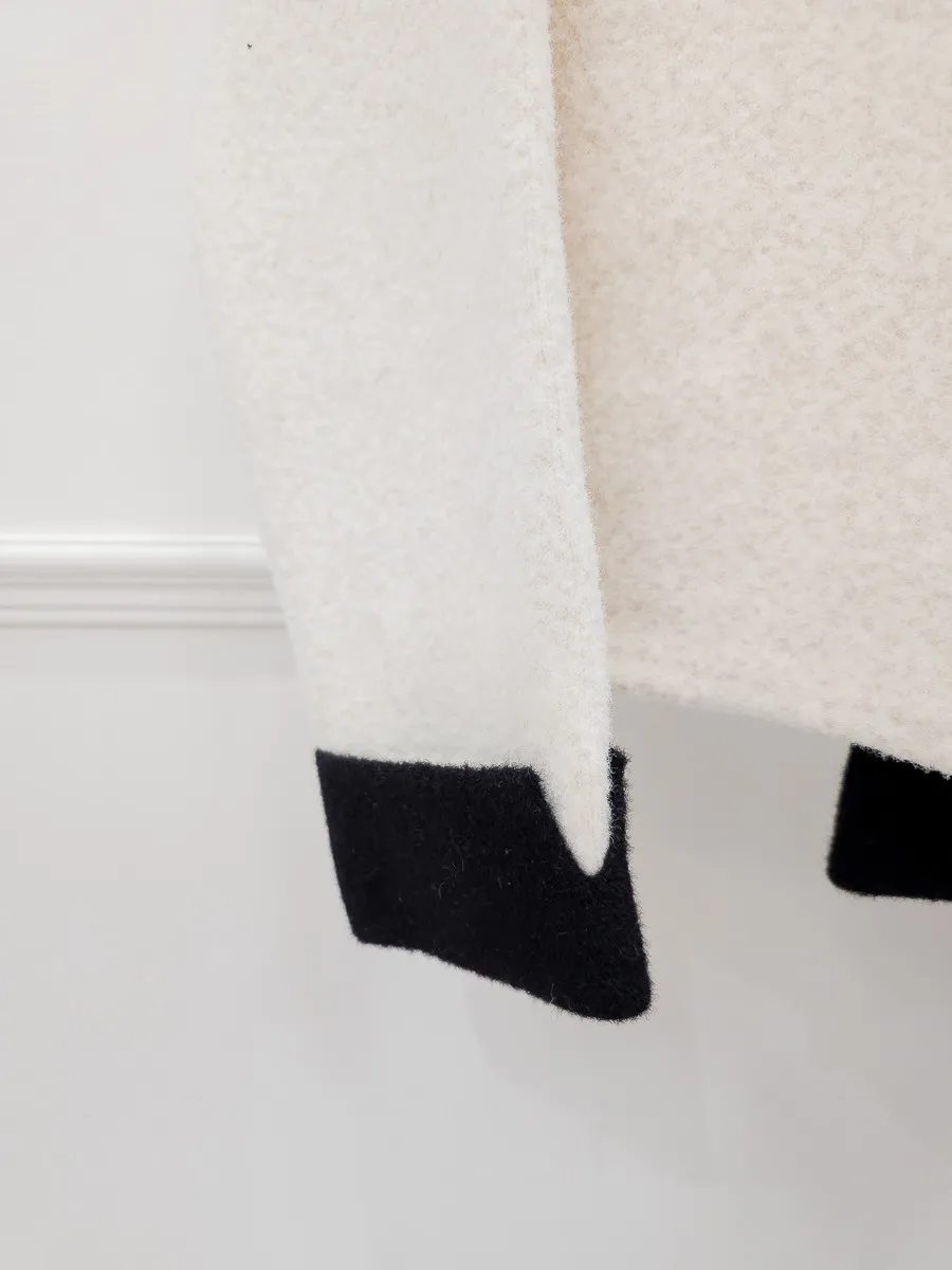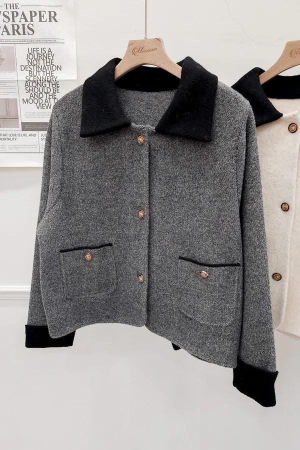 87.正韓 撞色領口袋毛呢外套上衣 2色