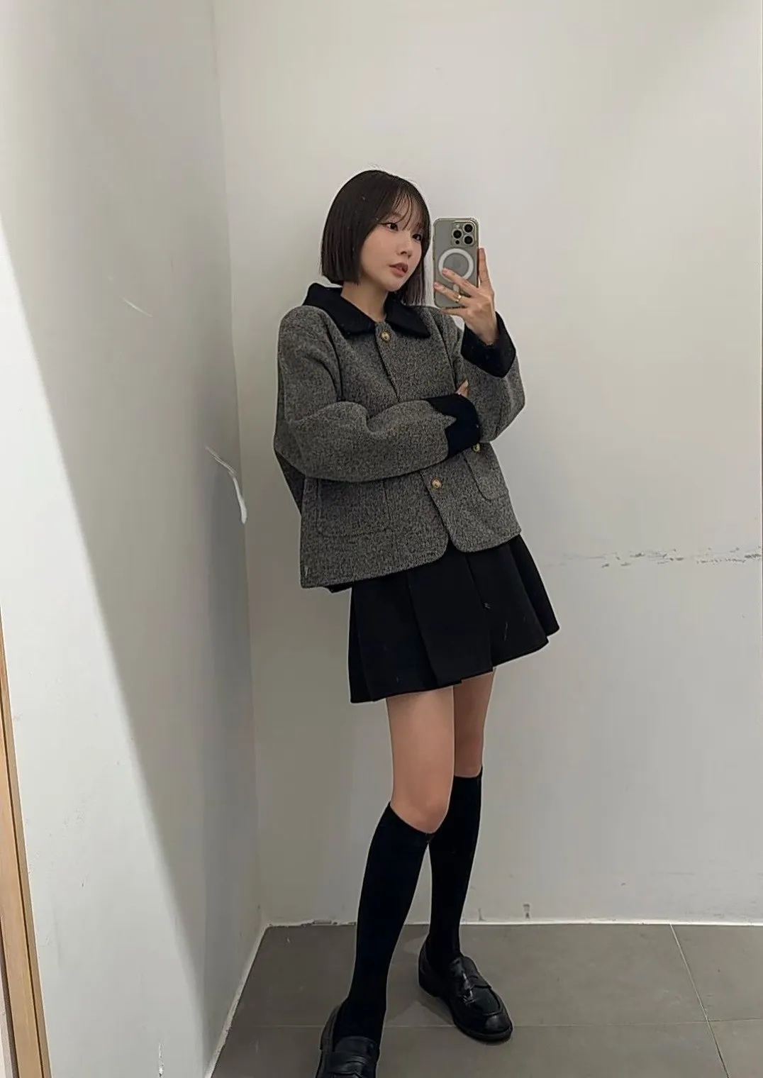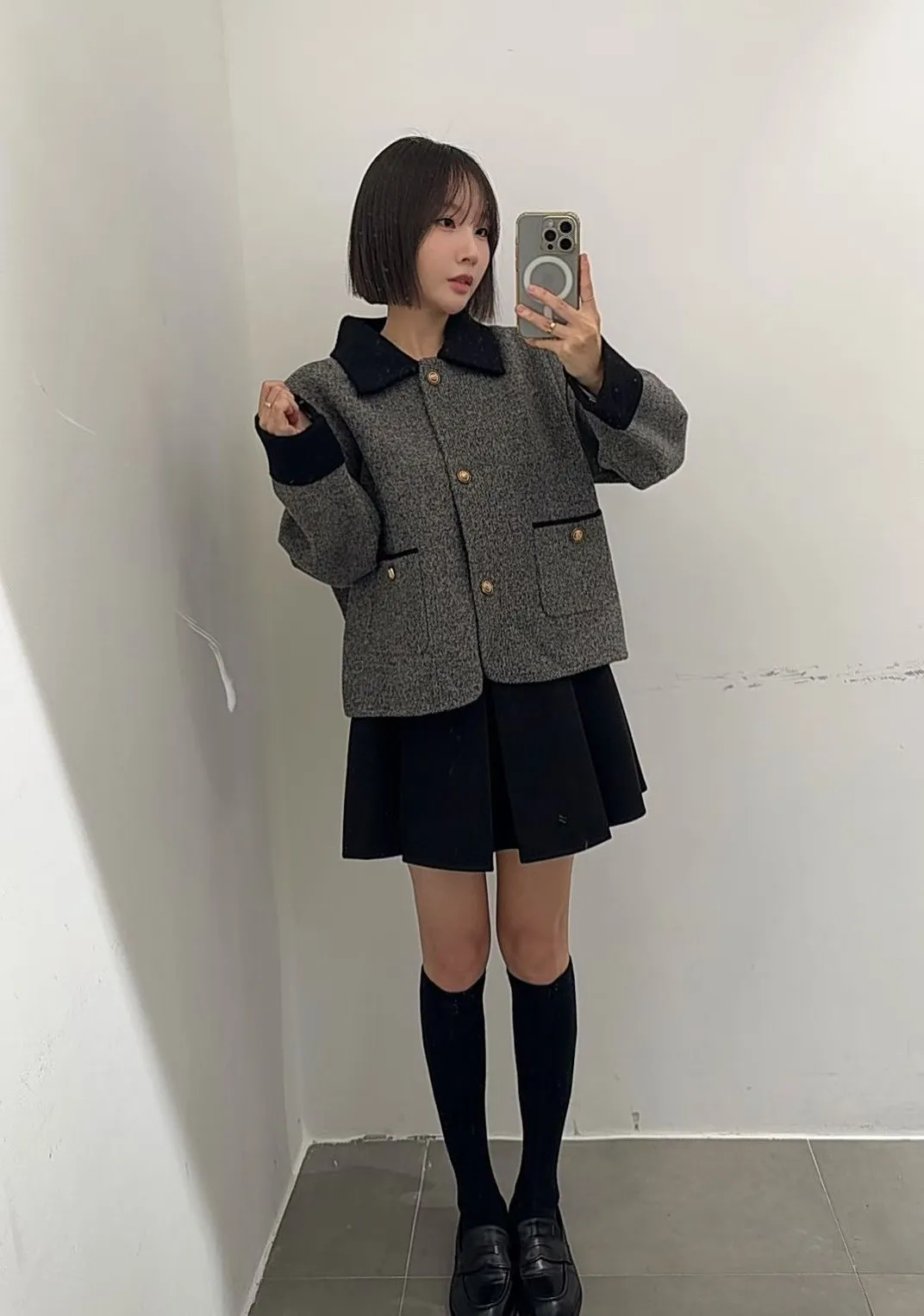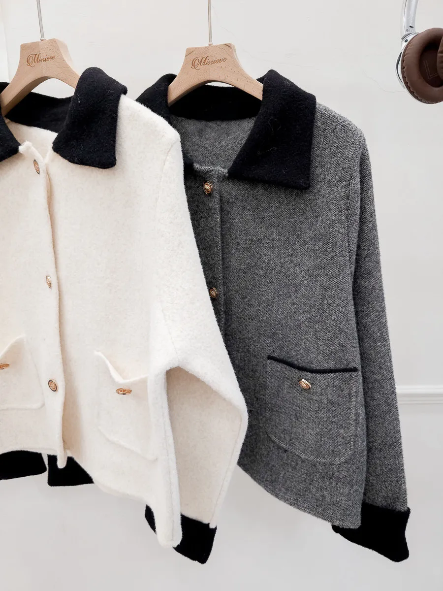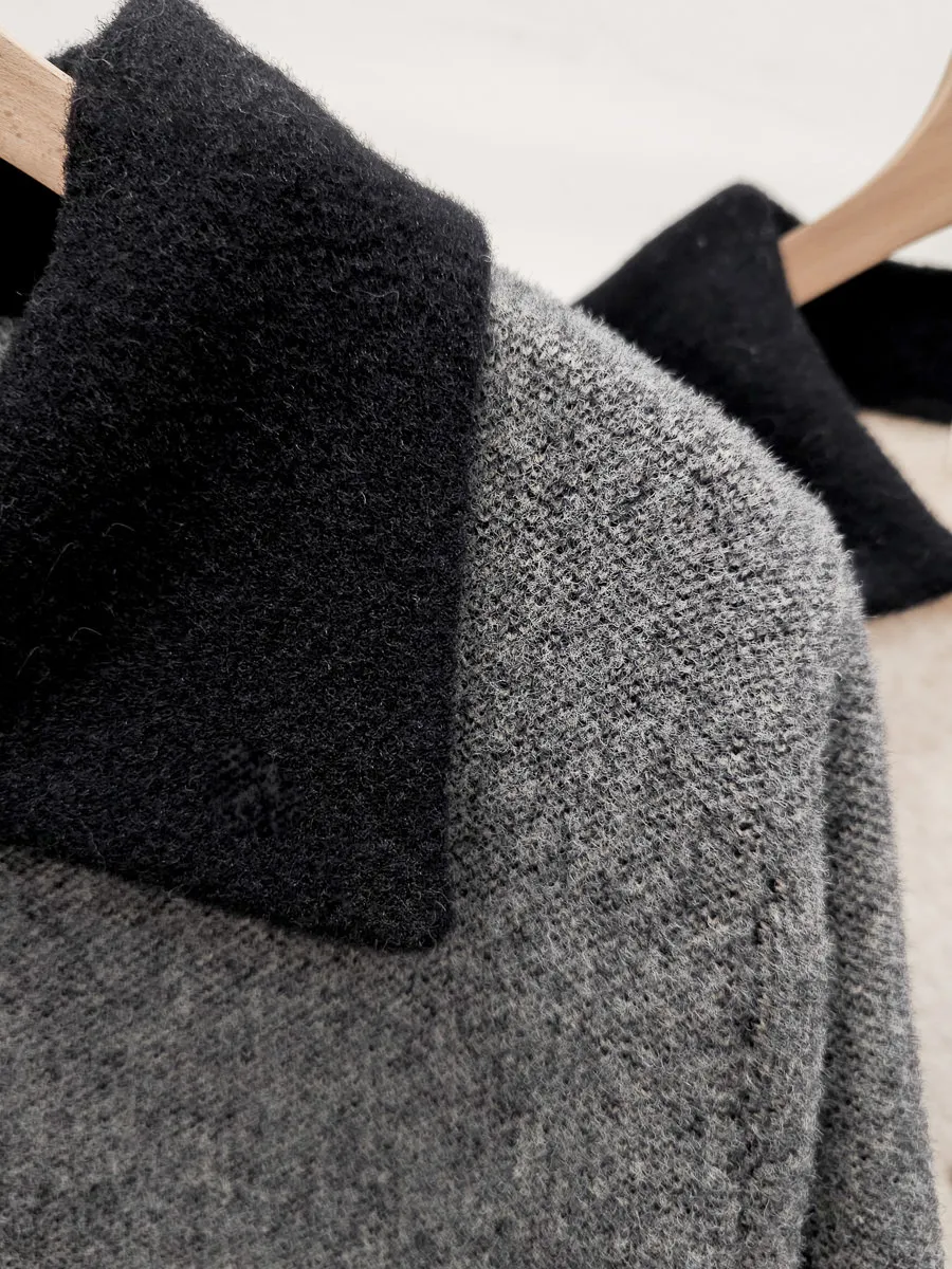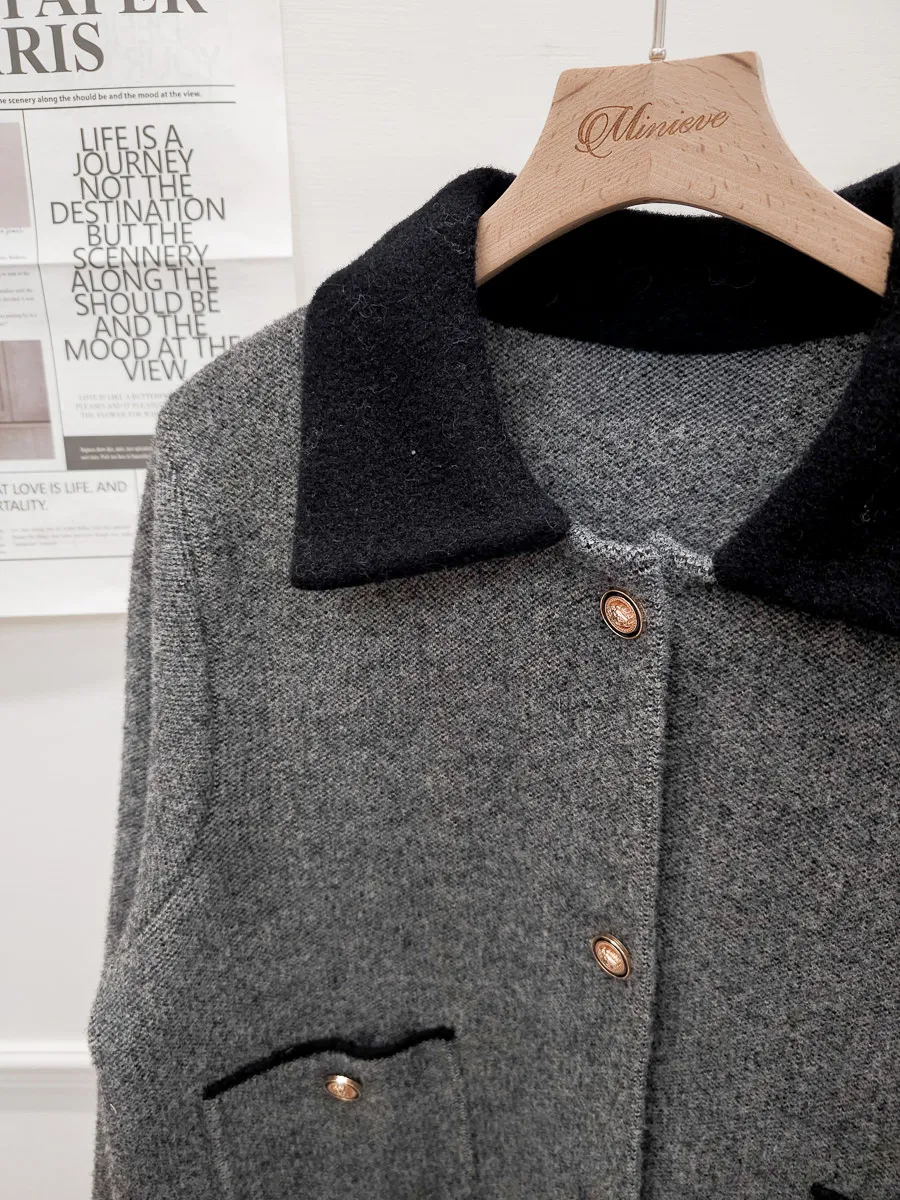 87.正韓 撞色領口袋毛呢外套上衣 2色