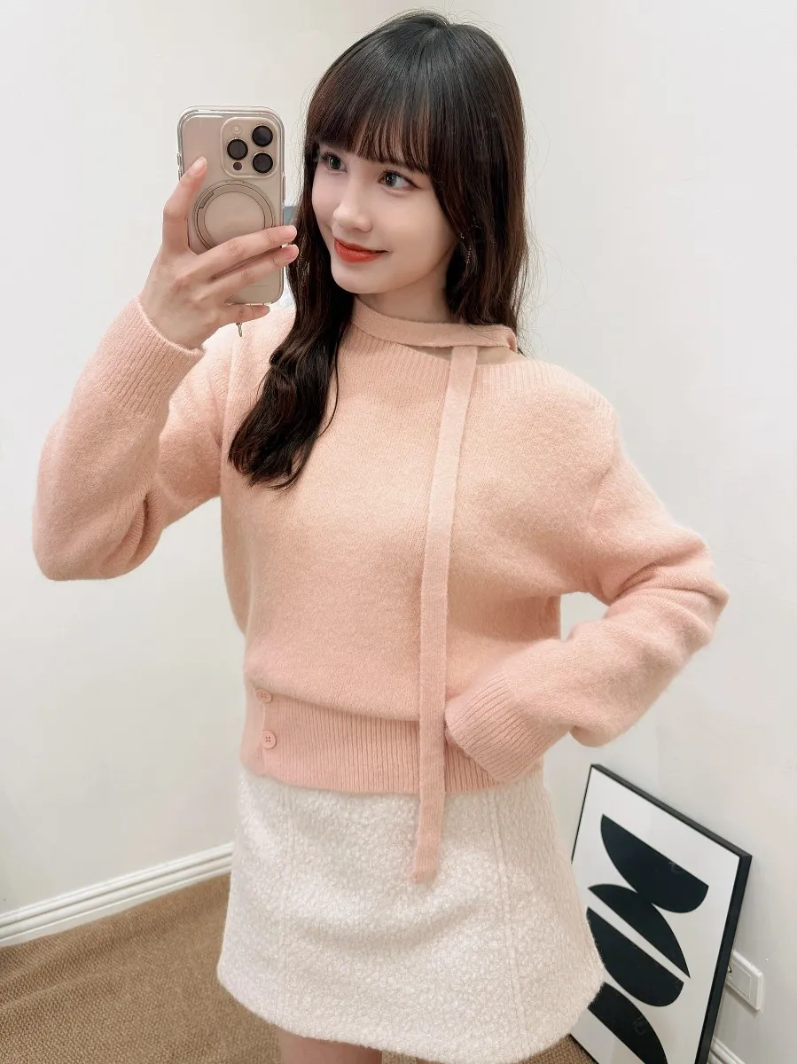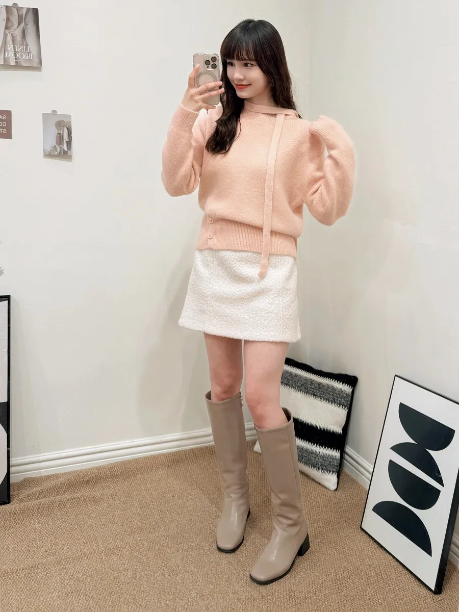 正韓 側釦縮擺安格拉羊毛上衣 2色