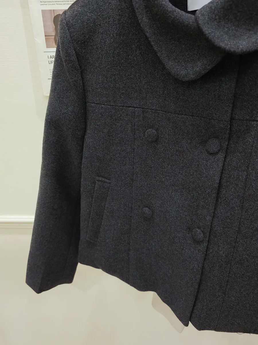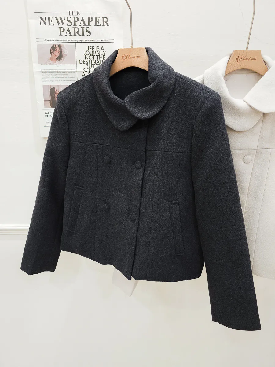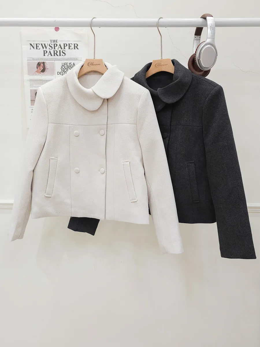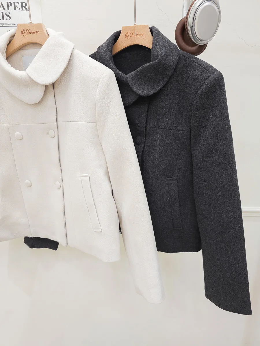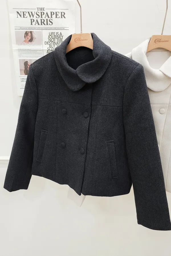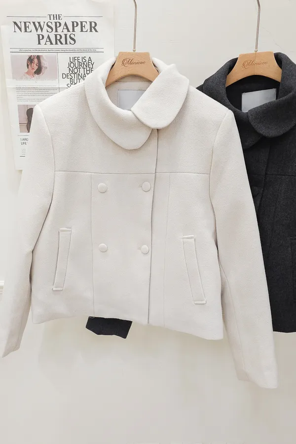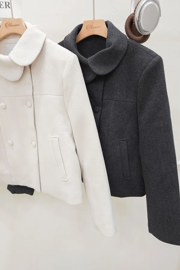 93.正韓 斜側圓翻領4釦25%羊毛外套 2色