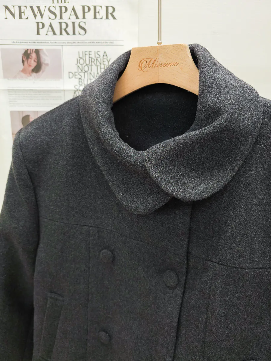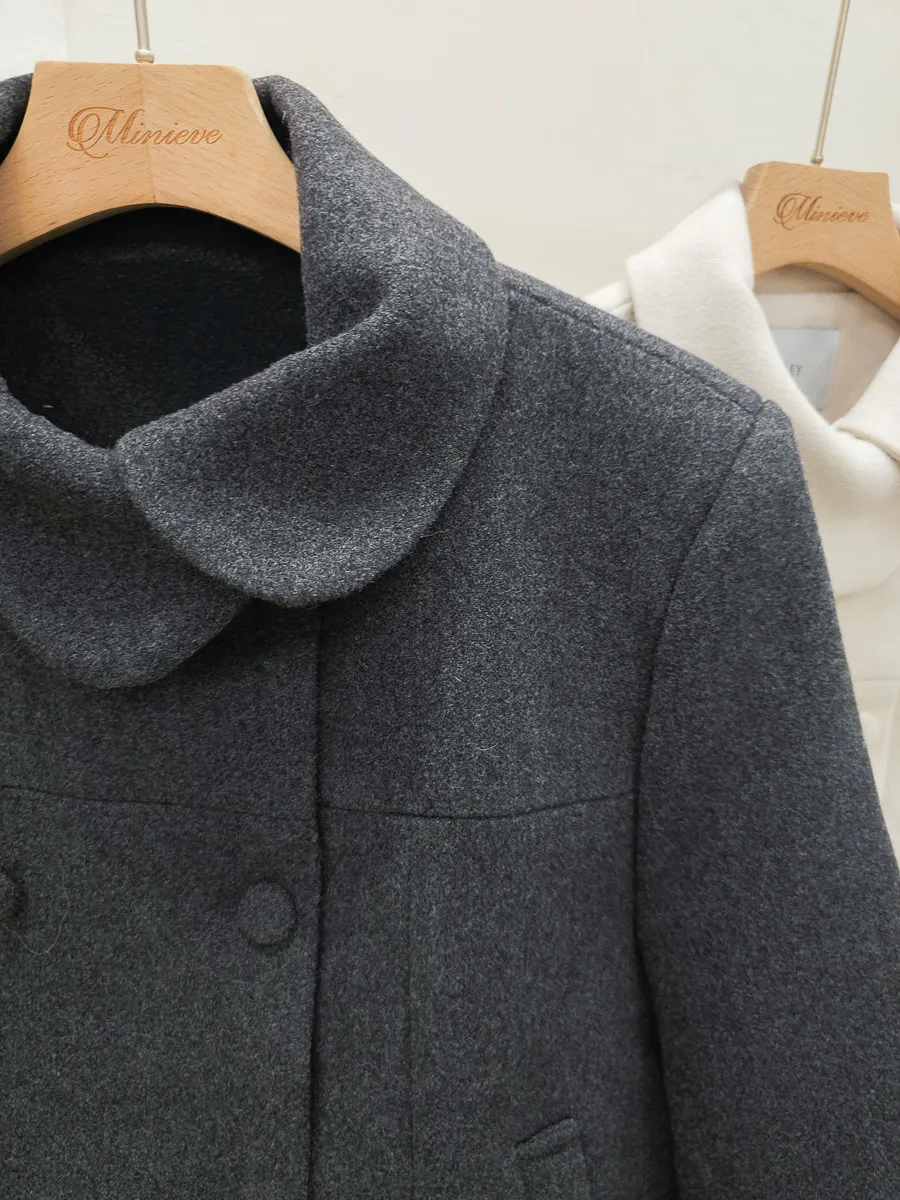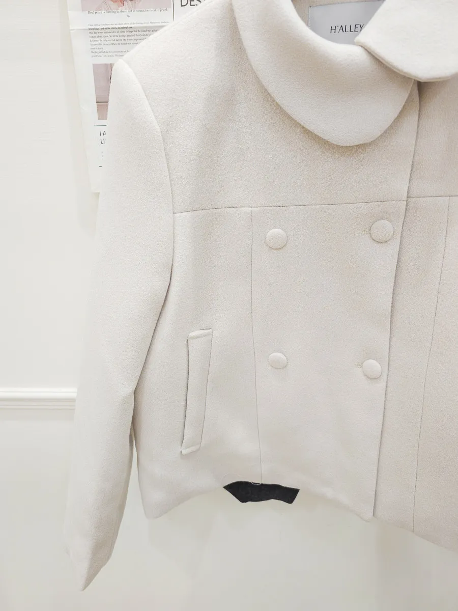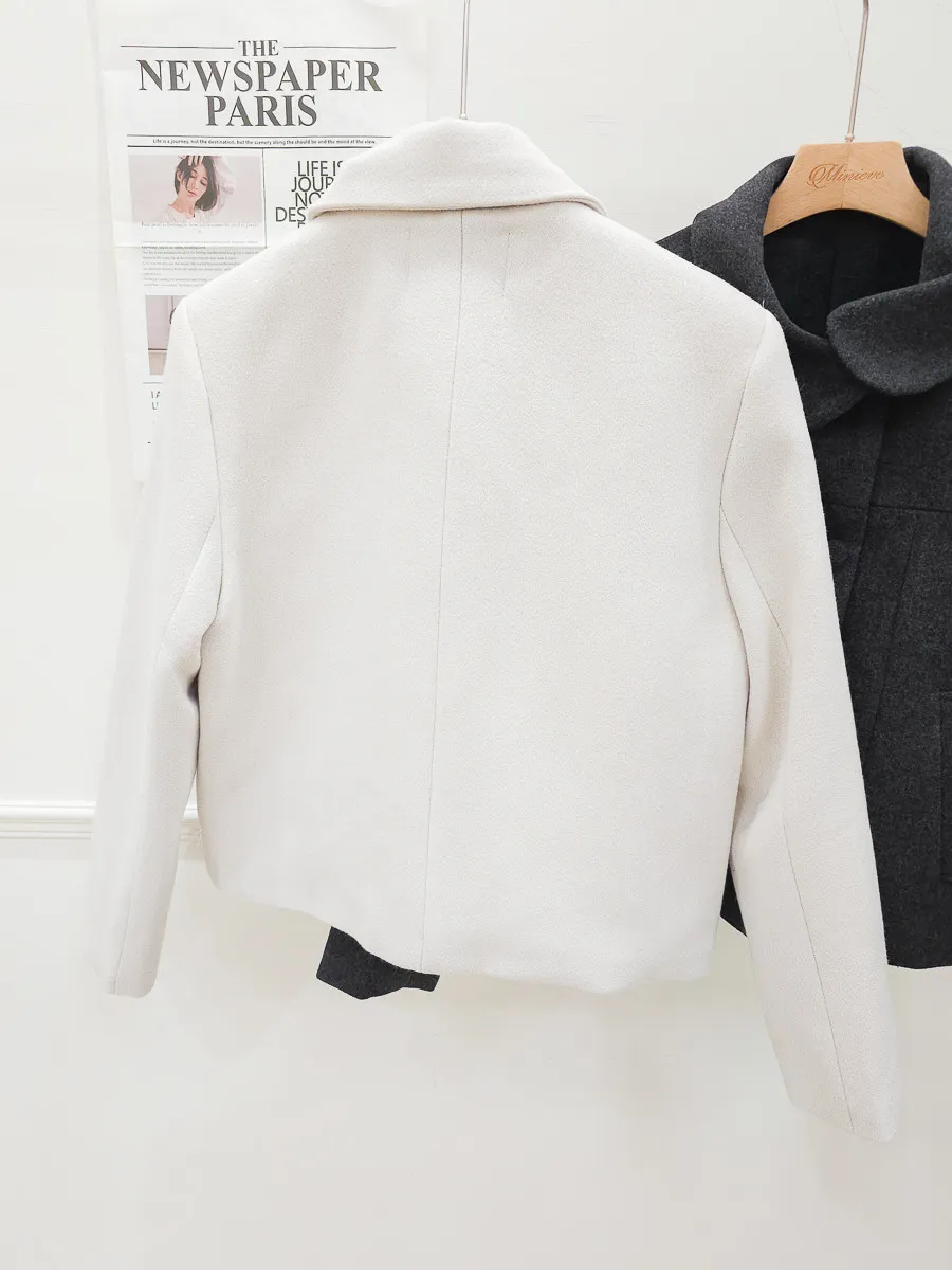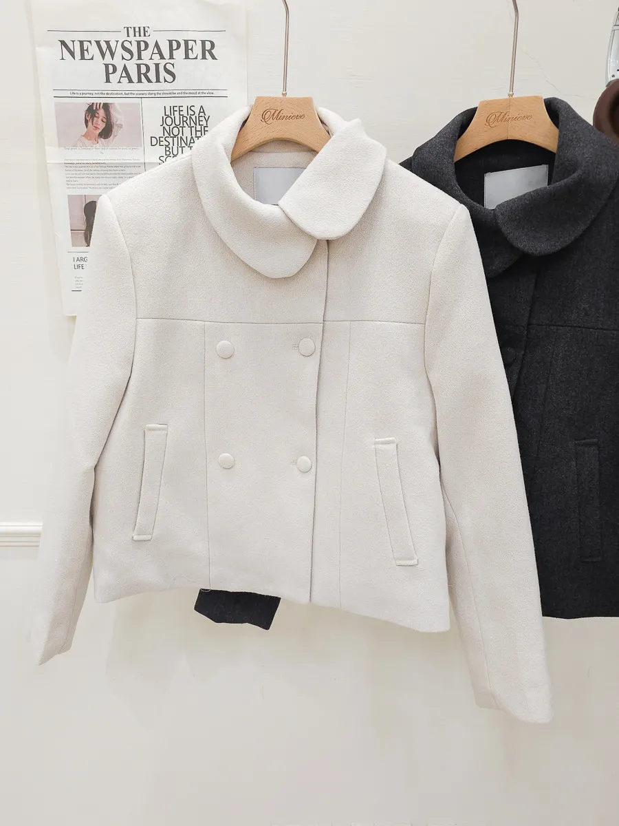 93.正韓 斜側圓翻領4釦25%羊毛外套 2色