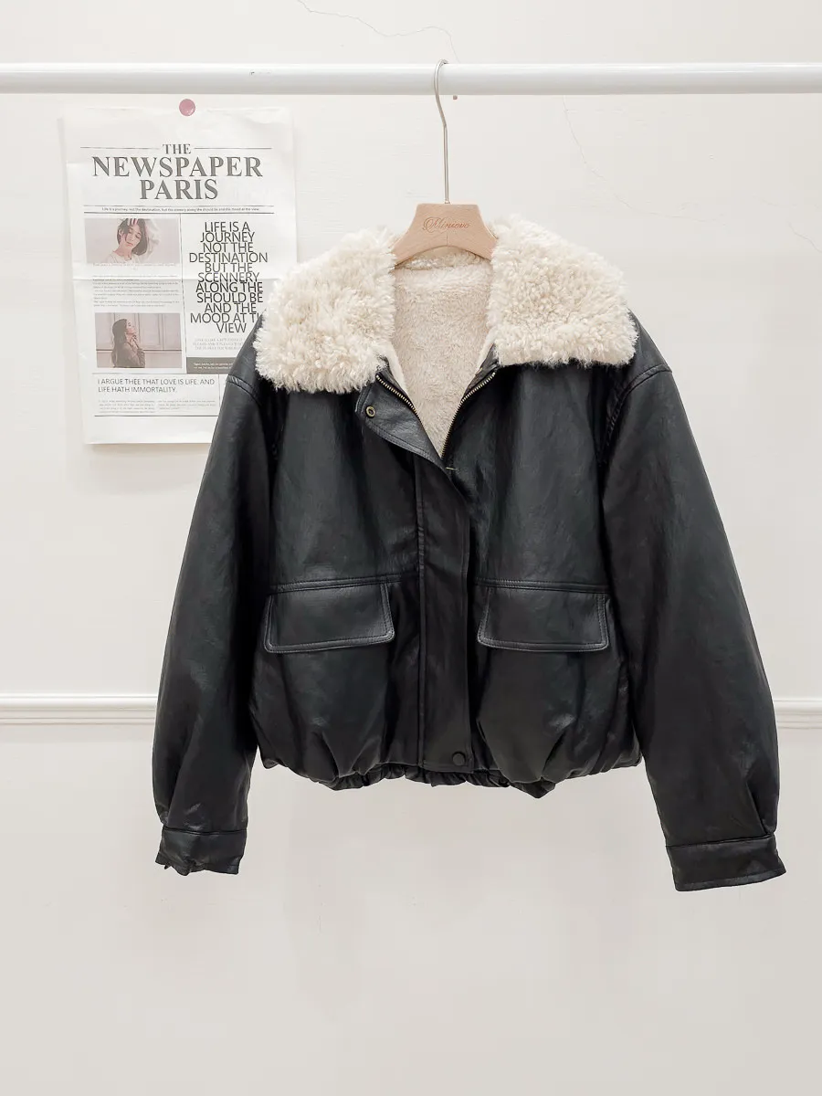 94.正韓 內刷毛霧面荔枝皮外套