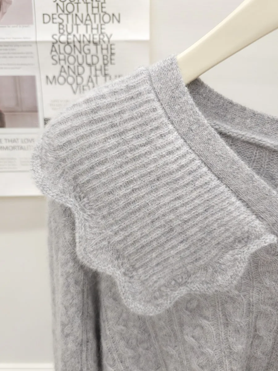 98.【限量現貨】正韓 荷葉領100%羊毛上衣