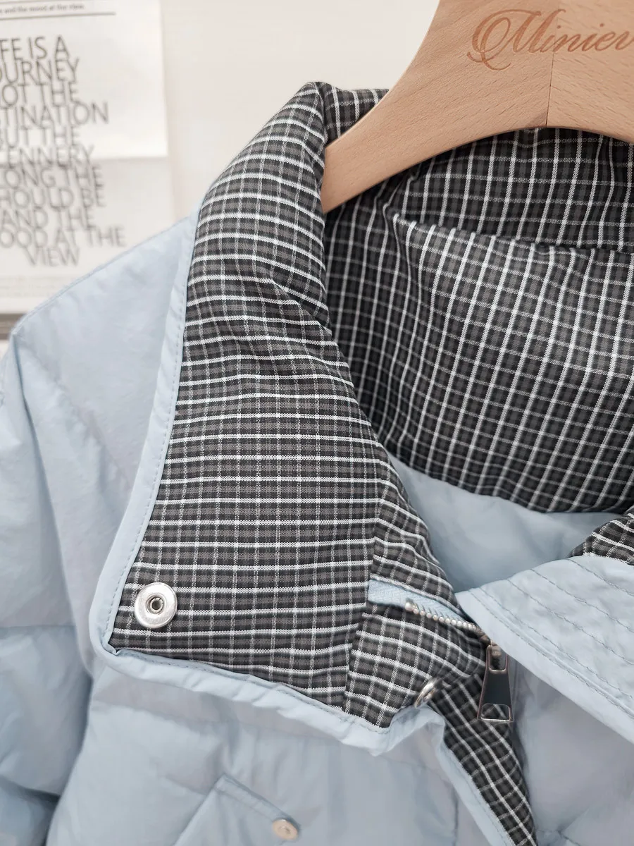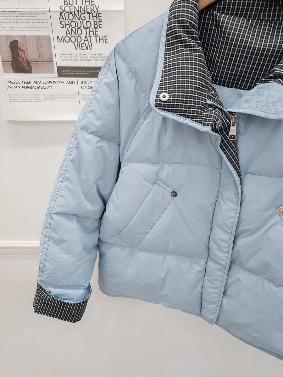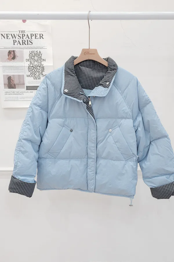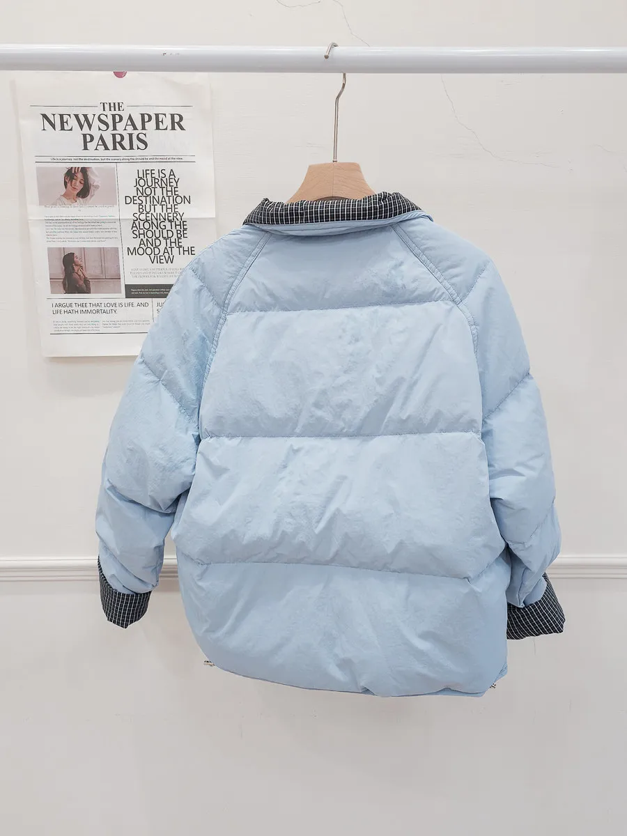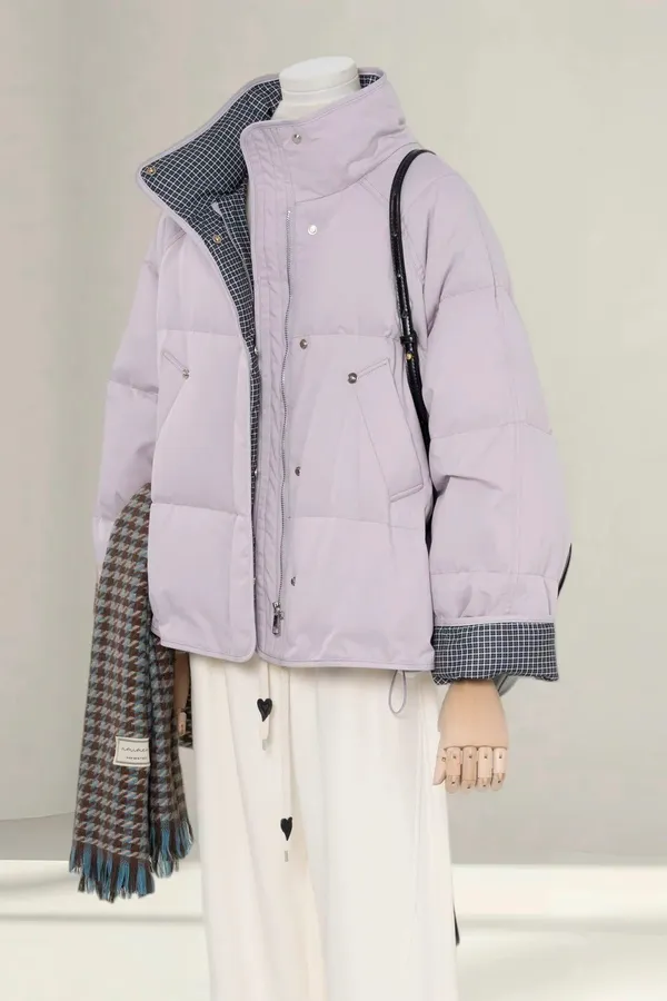 99.拼接格紋90%羽絨外套 2色