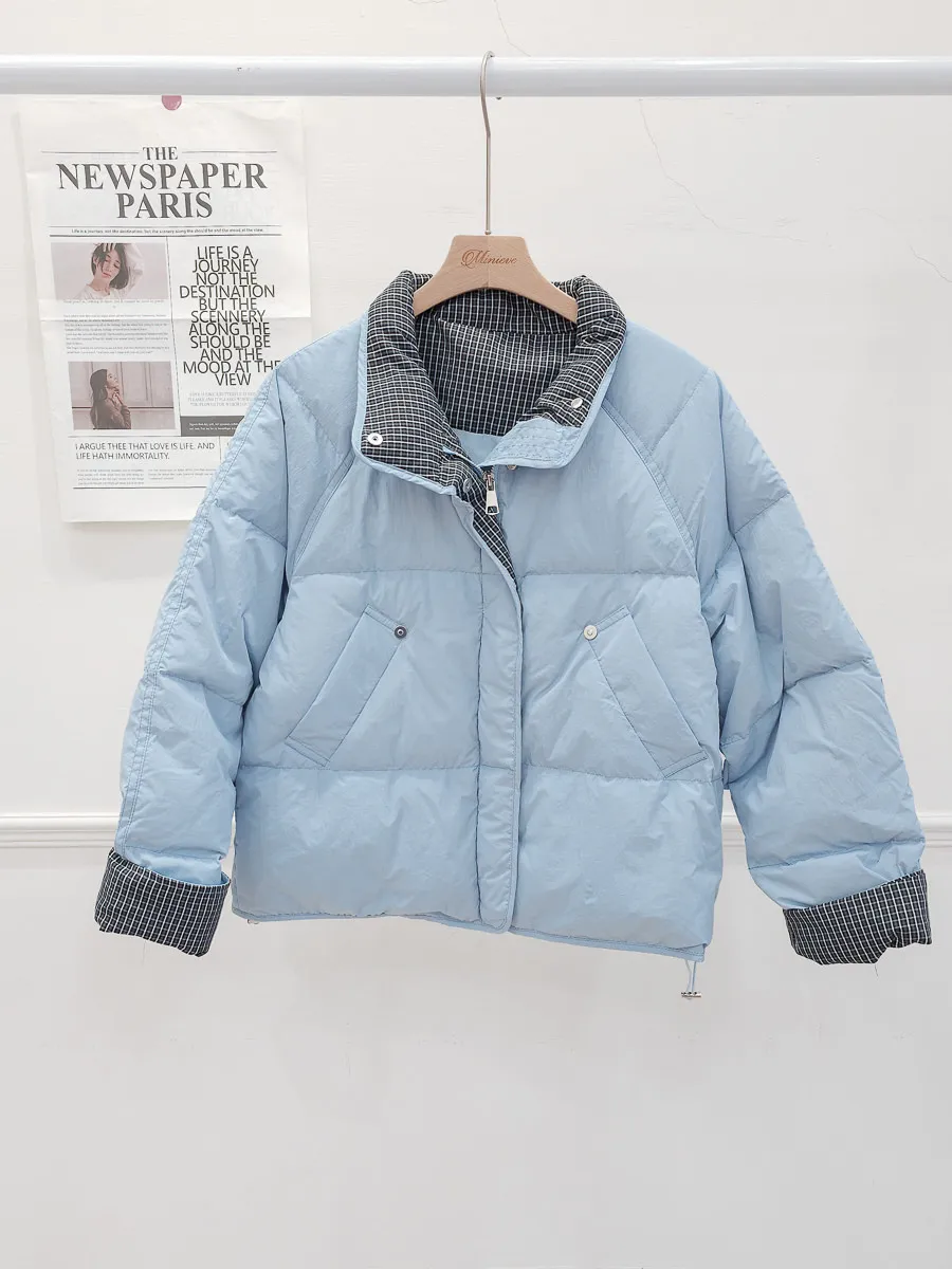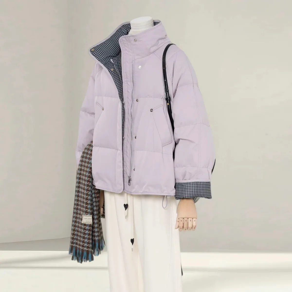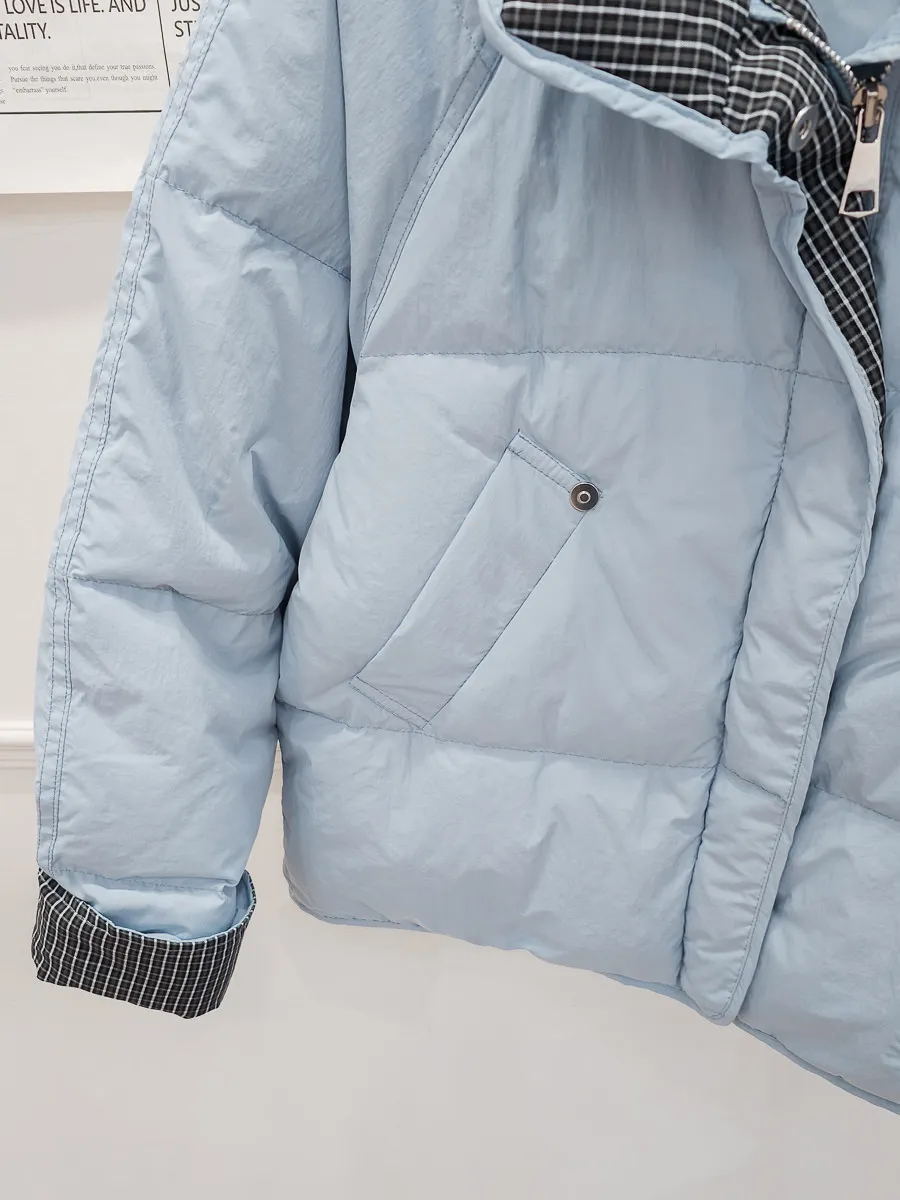 99.拼接格紋90%羽絨外套 2色