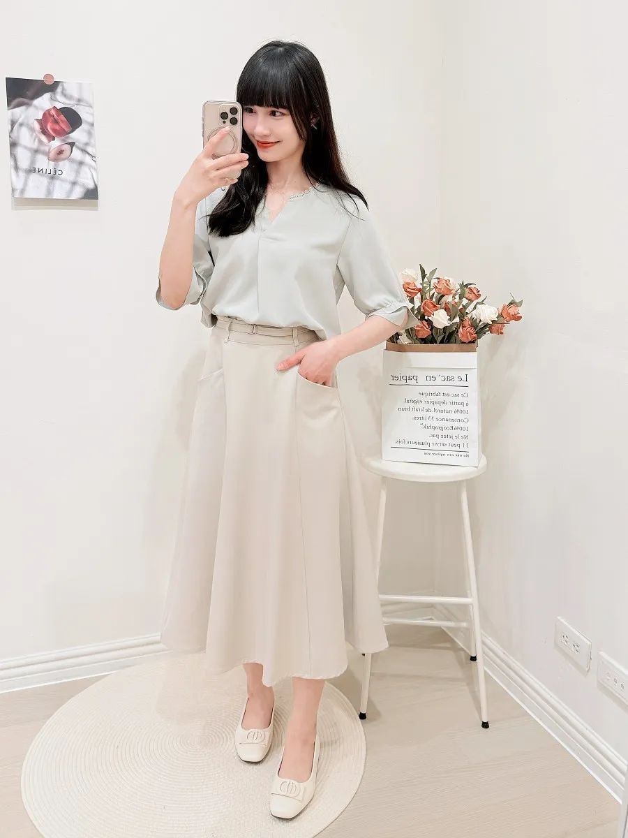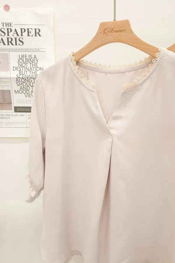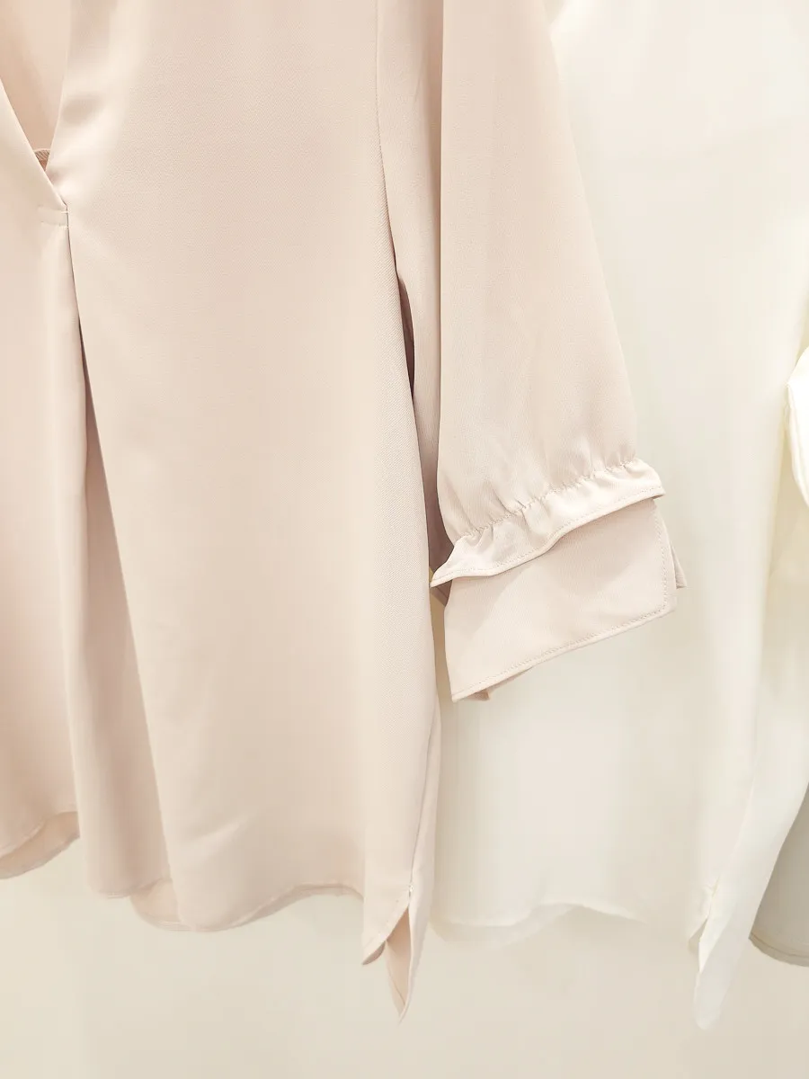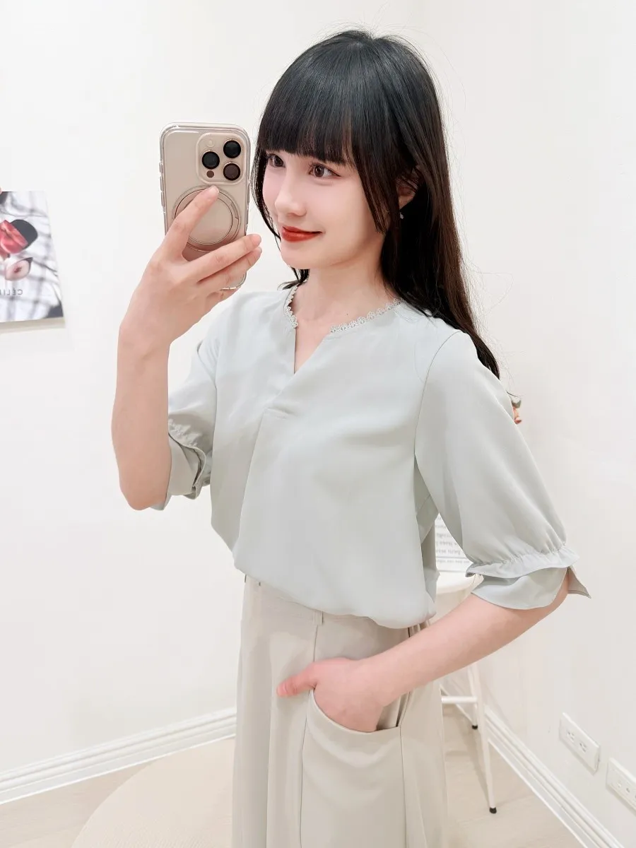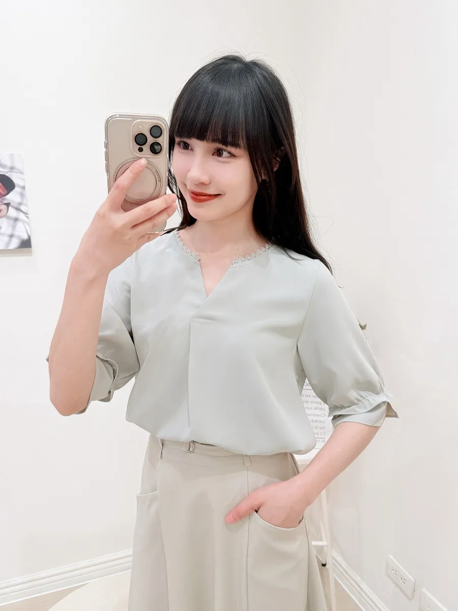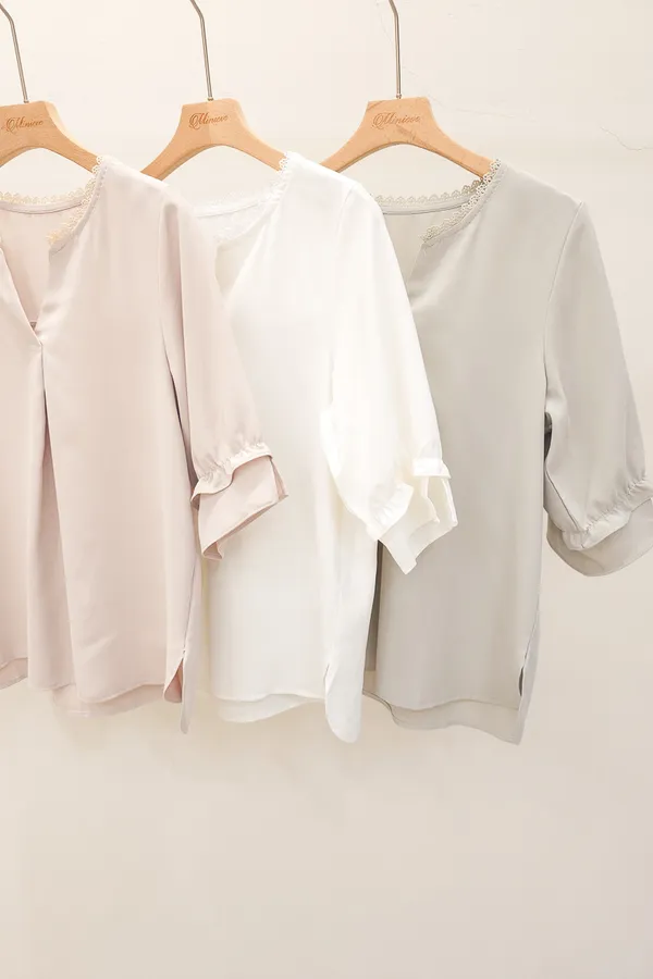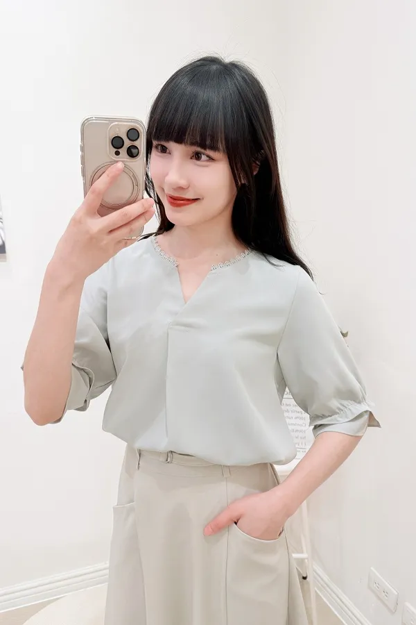 滾邊小V領寬摺上衣 3色
