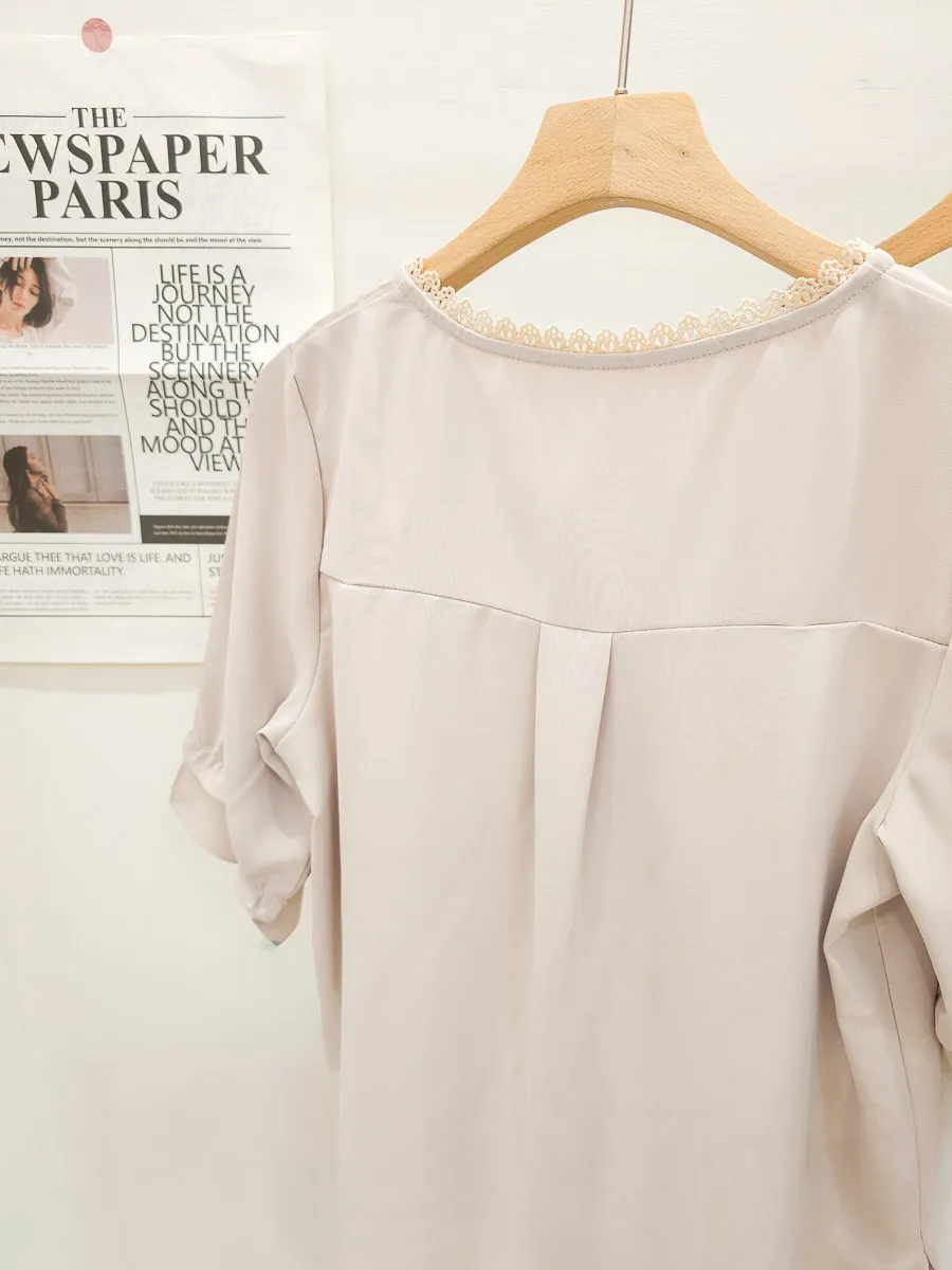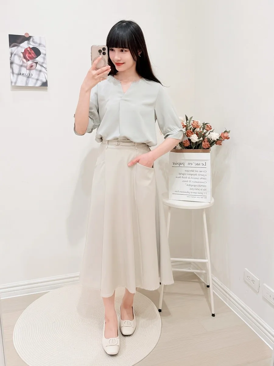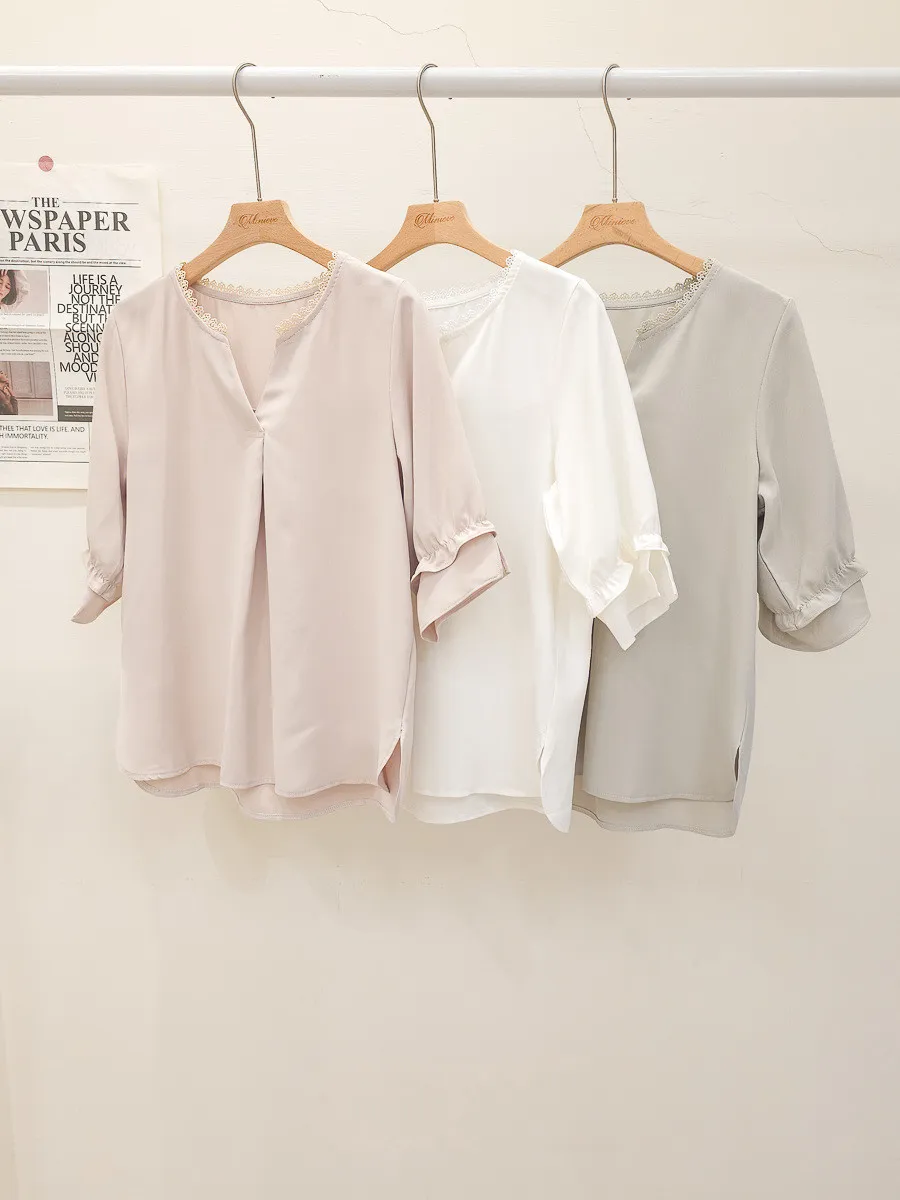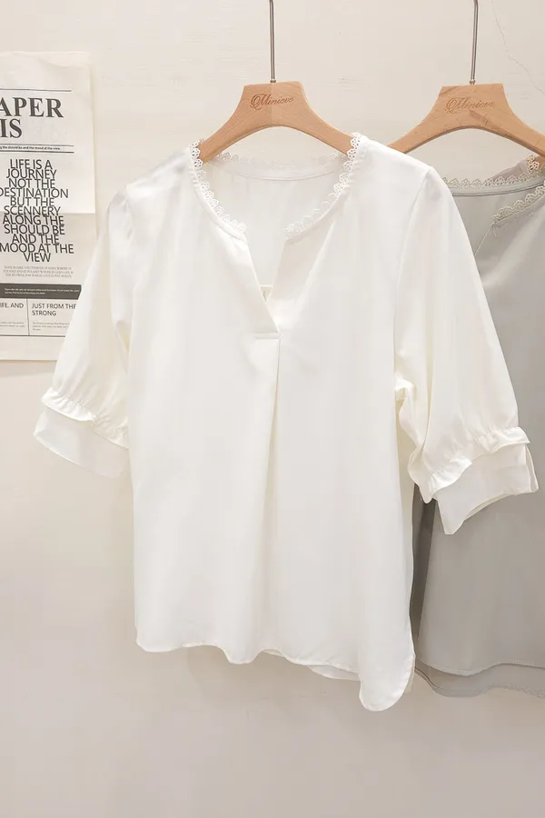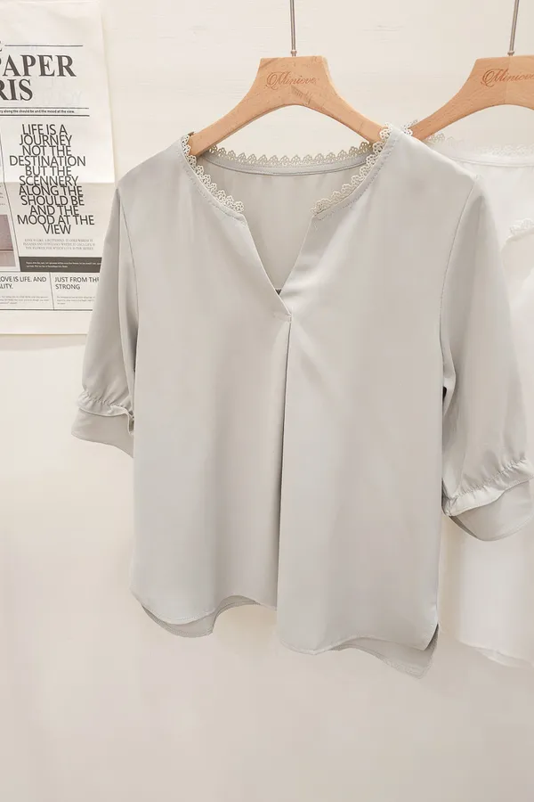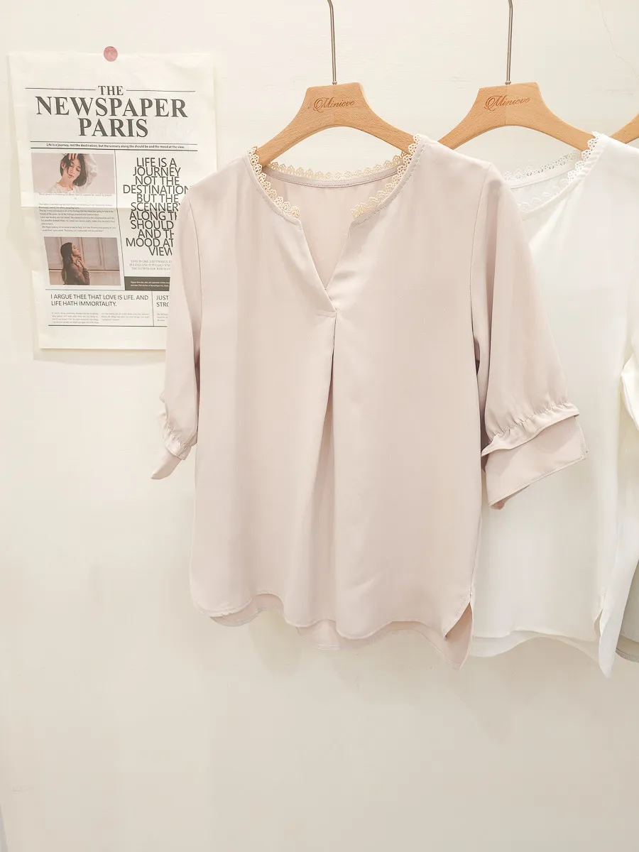 滾邊小V領寬摺上衣 3色